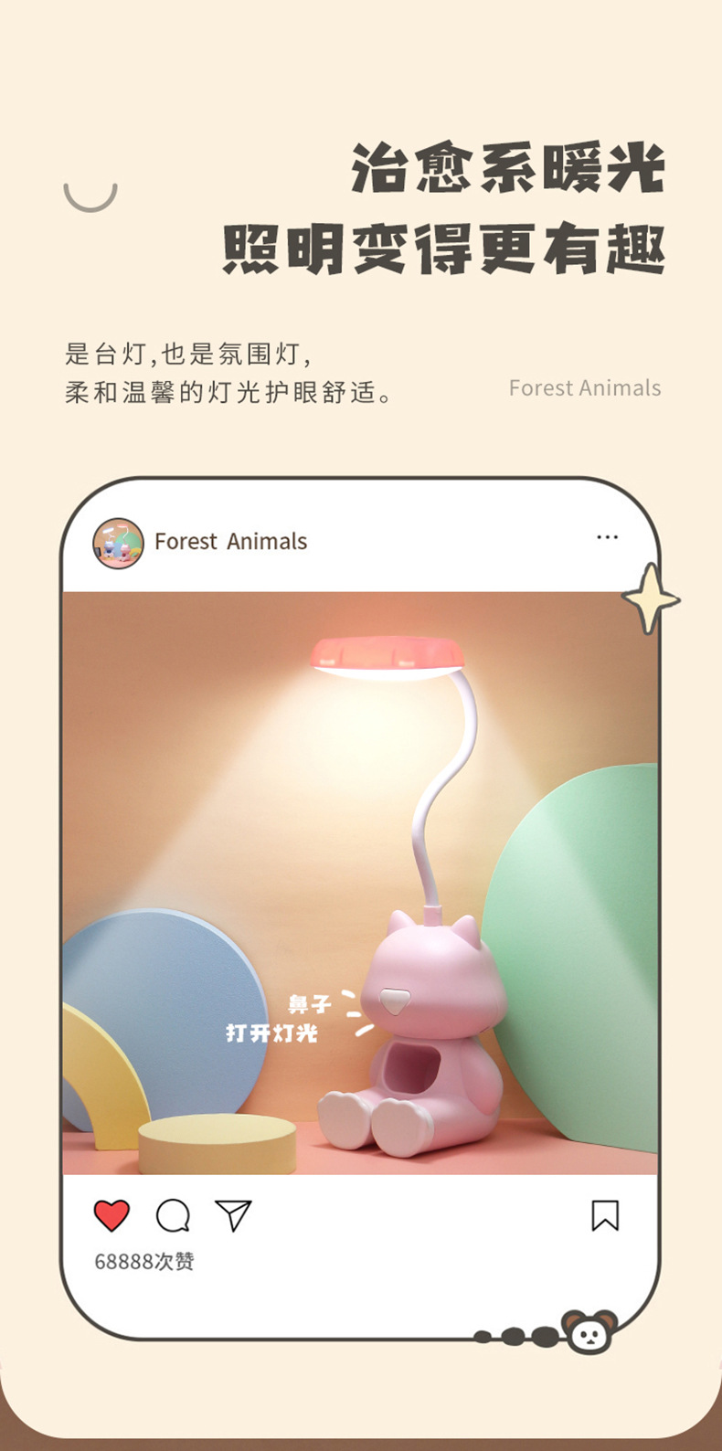 • 006 상서로운 인형 테이블 램프 + 야간 조명 (4 개 조절 가능)