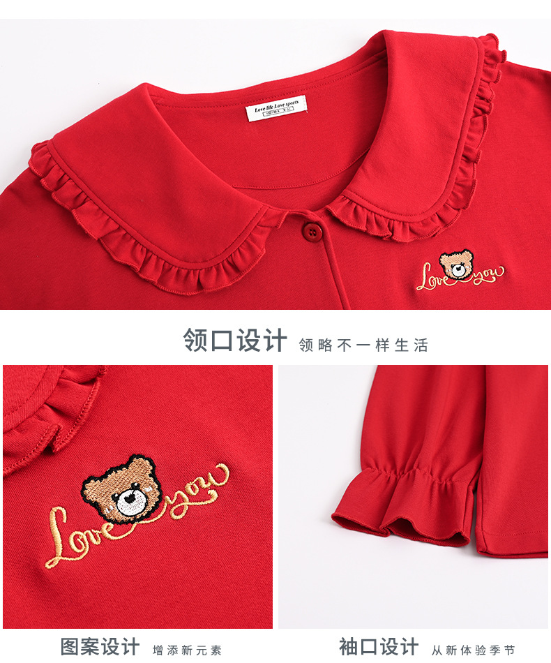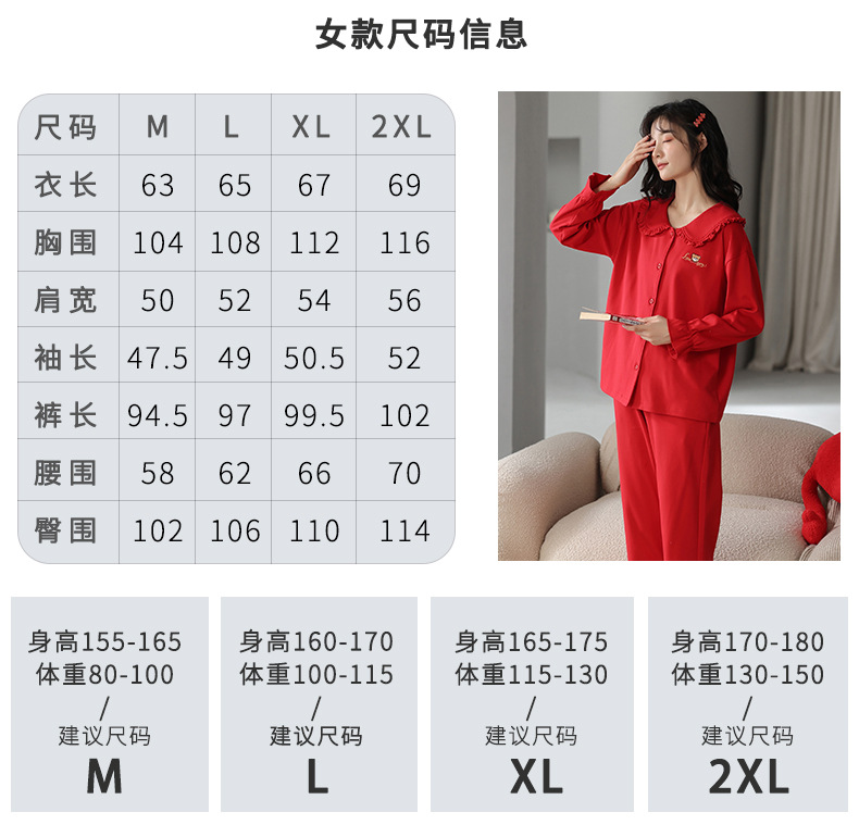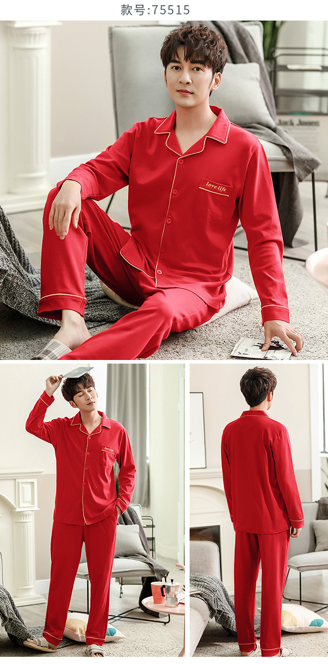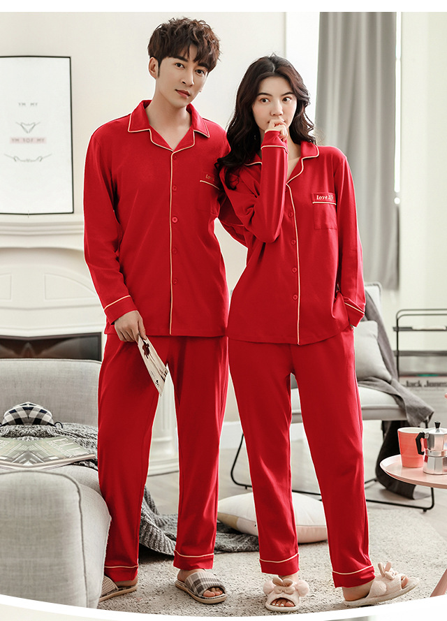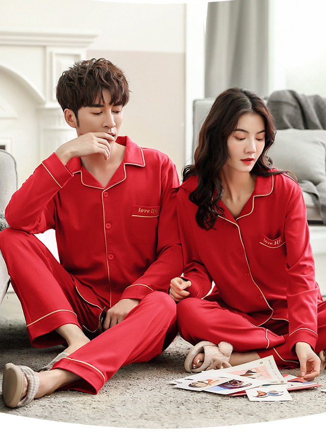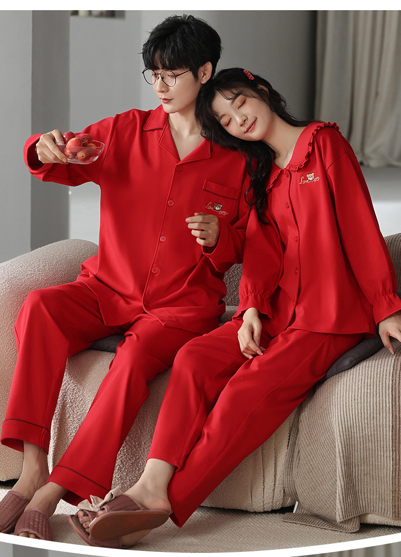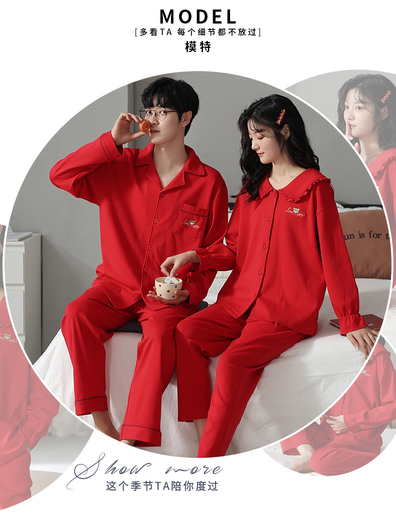 커플 웨딩 잠옷 여자의 봄과 가을 순면 긴팔 홍윤 잠옷 여자의 빨간 신혼 가족 년 남자의 가정복스토어 가기