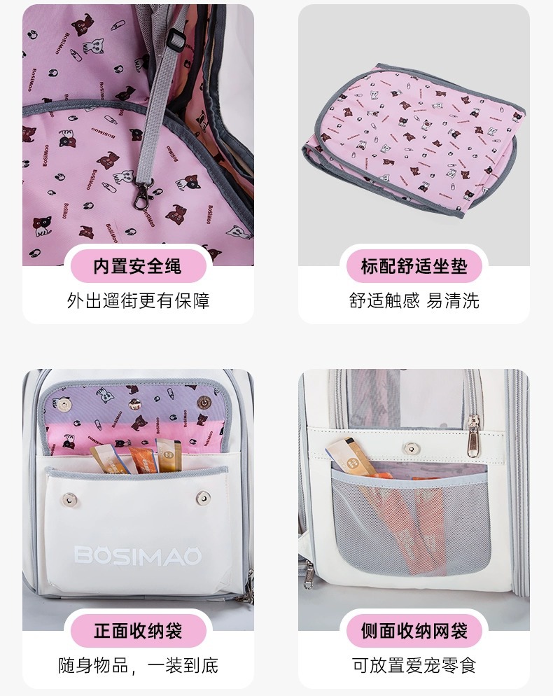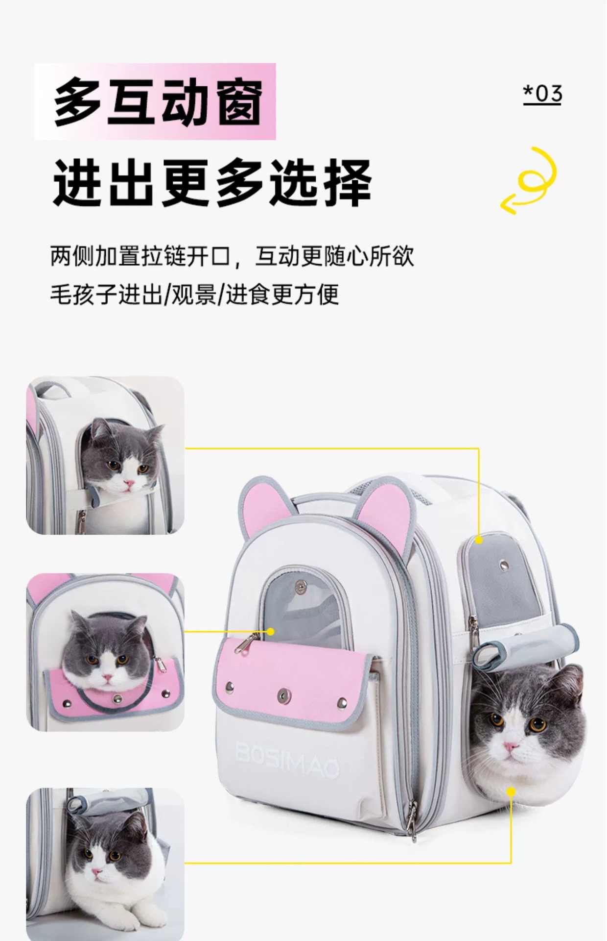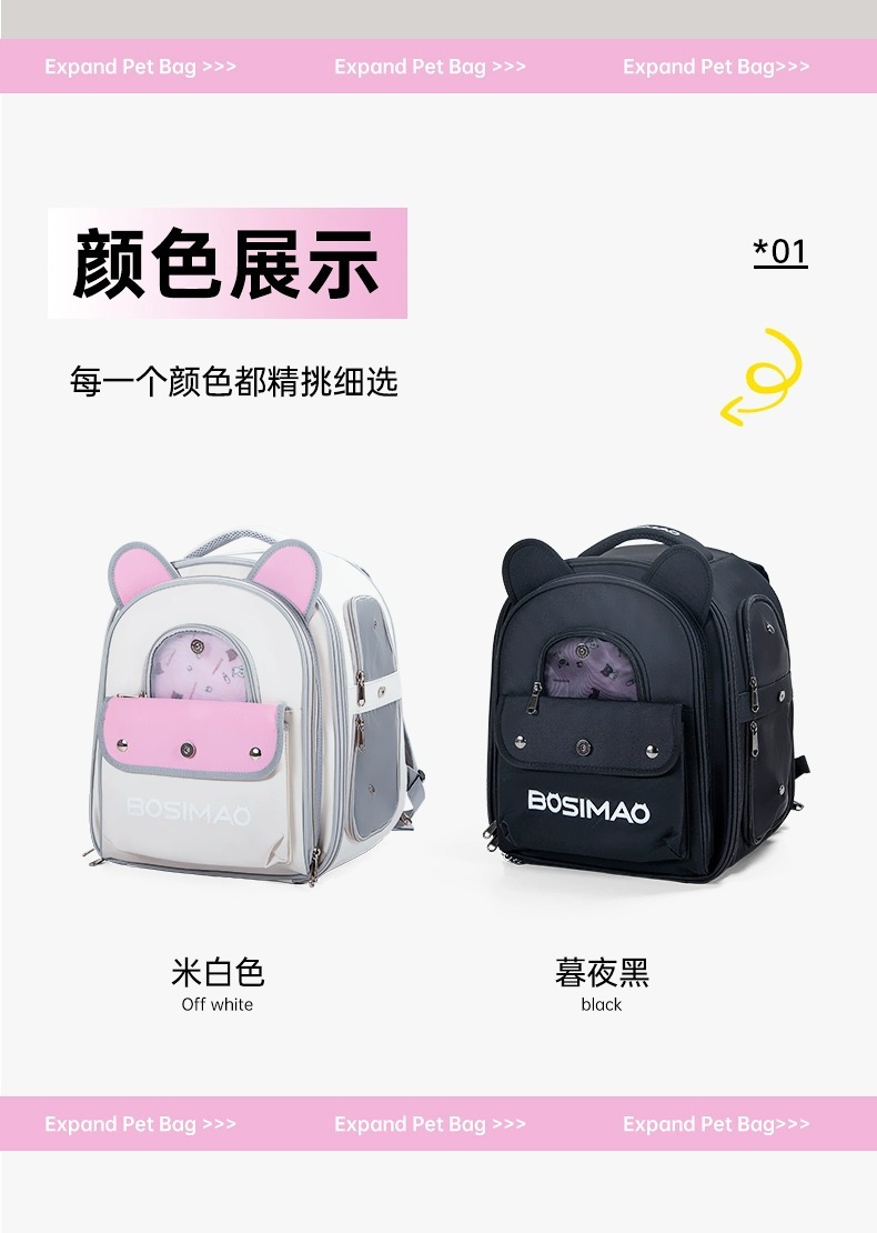 BOSIMAO 애완동물 가방, 고양이와 강아지 외출용 휴대용 배낭, 통기성과 접이식 기능을 갖춘 고양이와 강아지 외출용 배낭