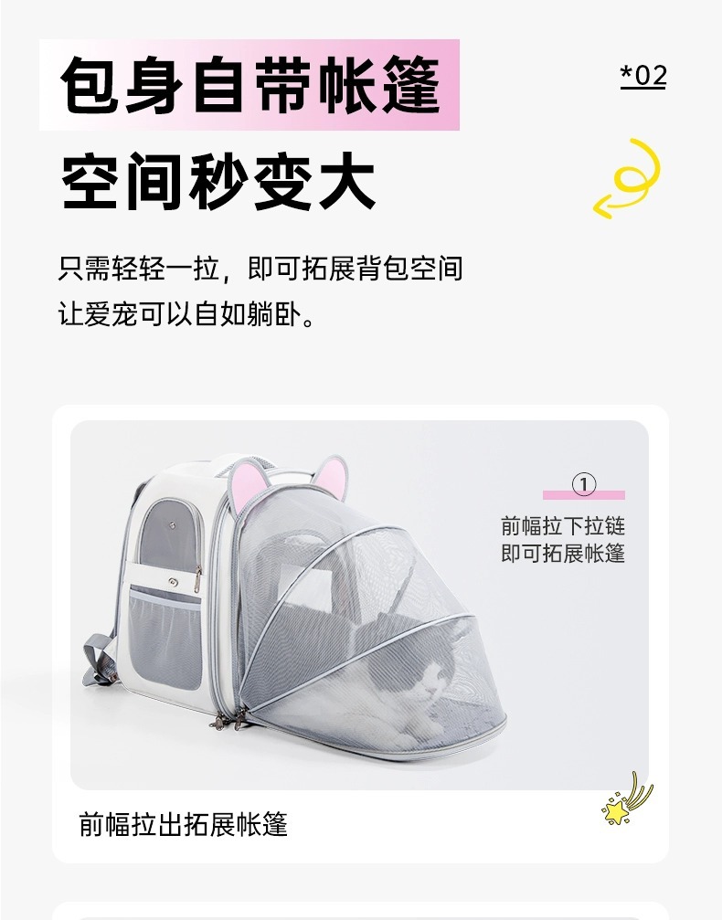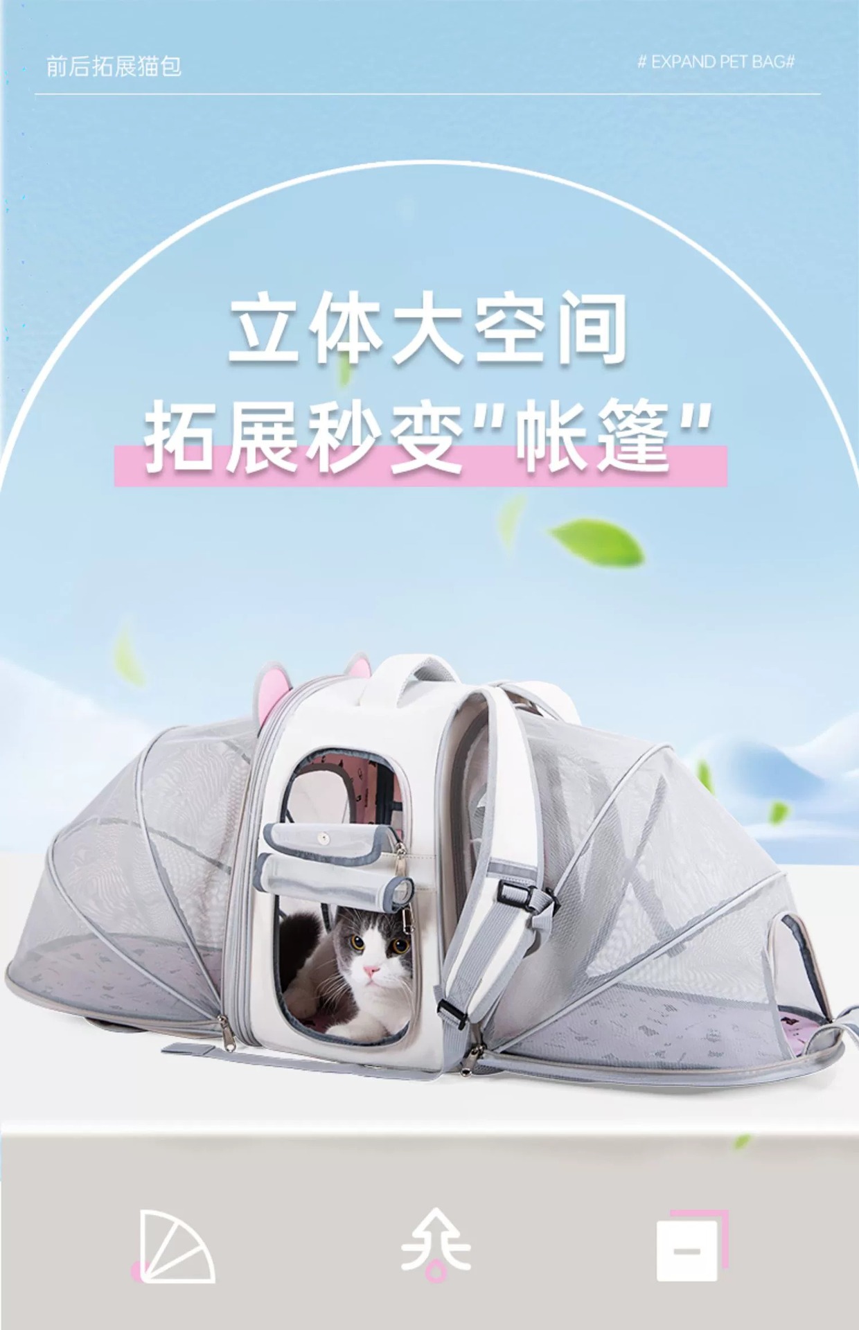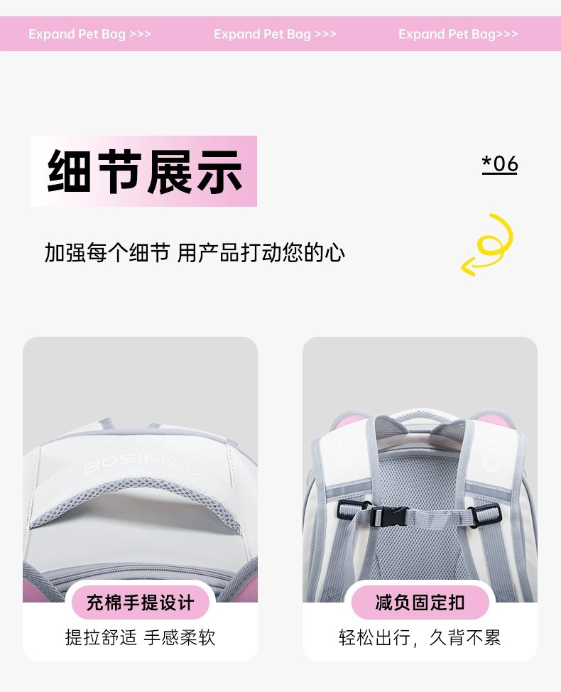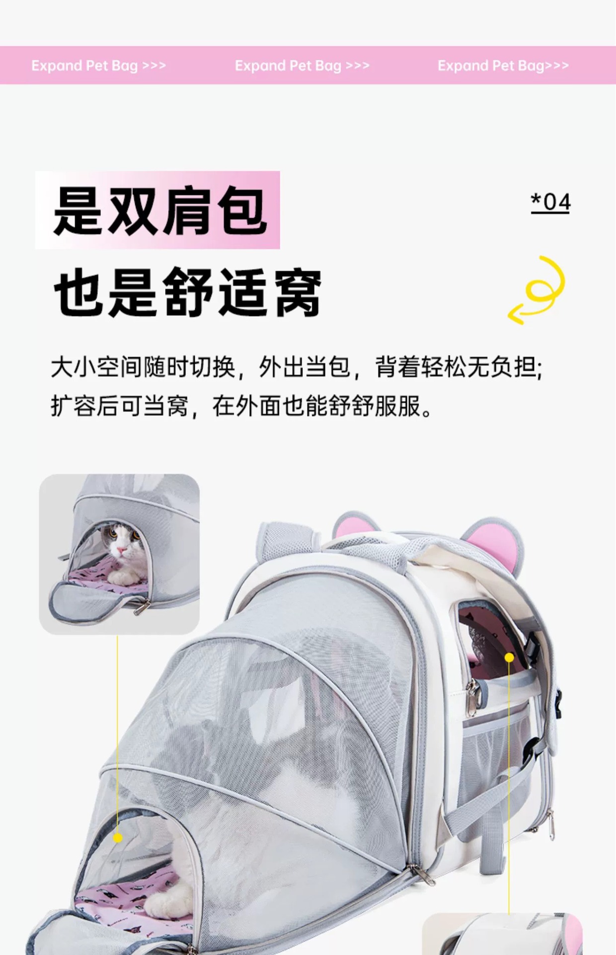 BOSIMAO 애완동물 가방, 고양이와 강아지 외출용 휴대용 배낭, 통기성과 접이식 기능을 갖춘 고양이와 강아지 외출용 배낭
