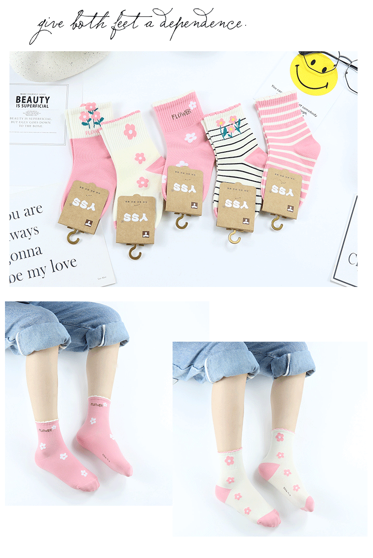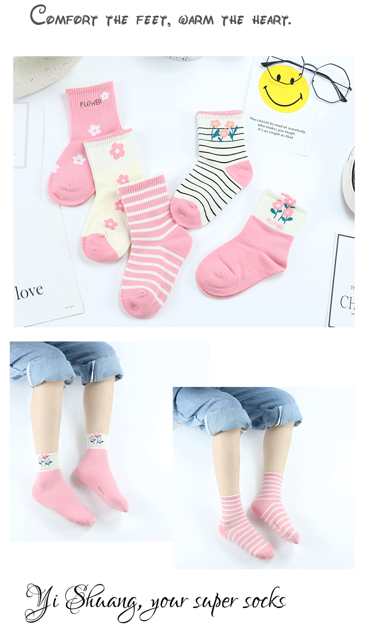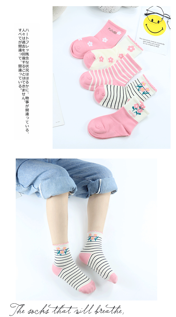 이순신 쌍 어린이 양말 가을과 겨울 새로운 한국 스타일 작은 꽃 중간 길이 양말 빗질 면 소녀 스트라이프 학생 면 양말스토어 가기