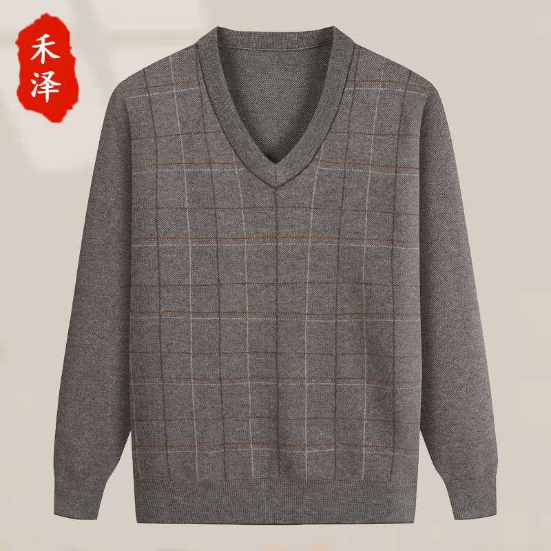 중년 및 노인 아버지는 V 넥 봄 가을 겨울 하의 셔츠 노인 할아버지를위한 긴팔 두꺼운 스웨터를 착용 겨울 옷스토어 가기
