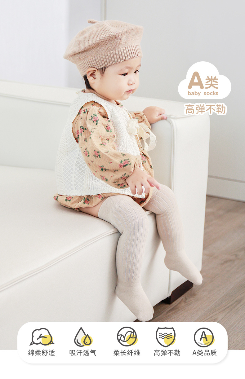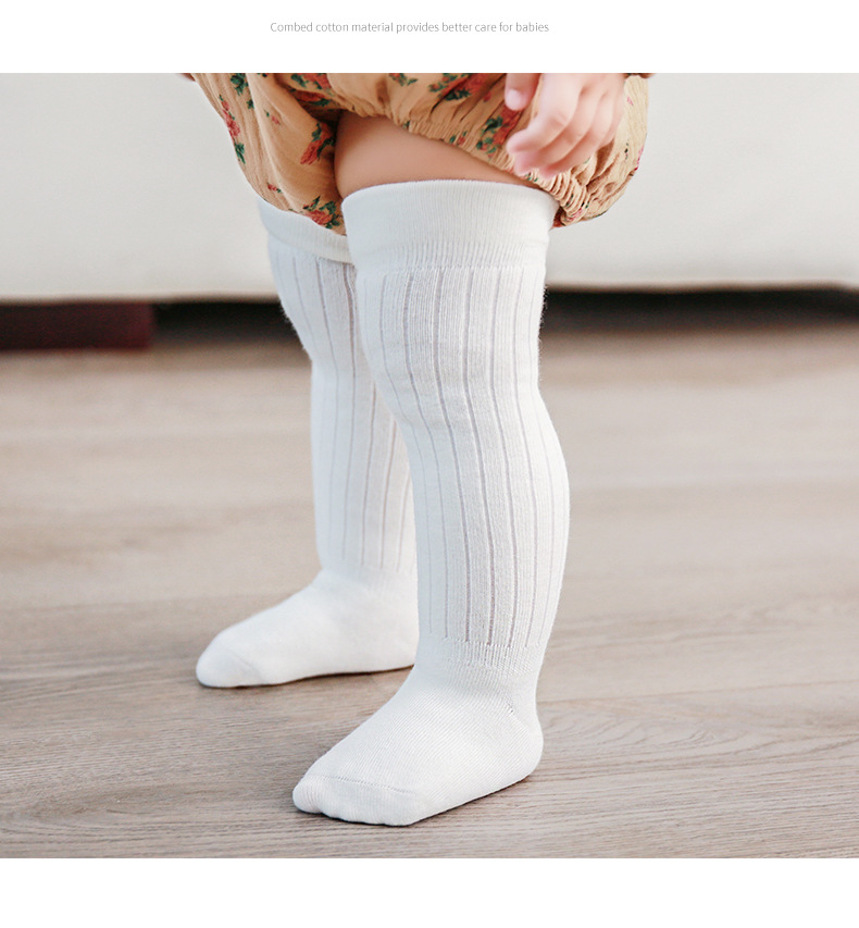 가을과 겨울 신생아와 어린 아이들의 단색 느슨한 비 다리 뼈없는 양말을 위한 빗질 된 면 아기의 높은 긴 튜브 무릎 위 양말스토어 가기