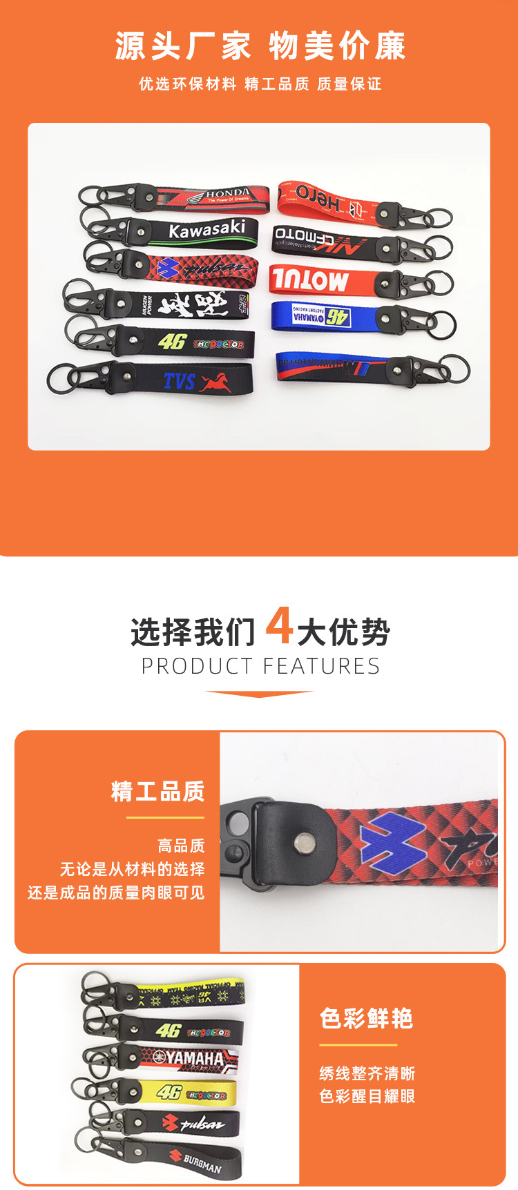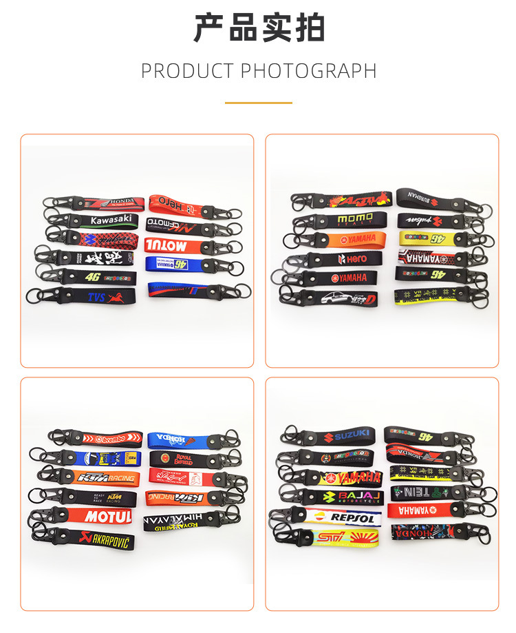 자수 펜던트 열 전달 손목 스트랩 편지 양면 자수 키 체인 로고 열쇠 고리 재고 도매