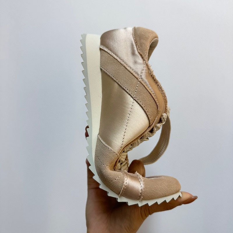 새로운 스페인 틈새 포레스트 검프 슈즈 실크 새틴 화이트 슈즈 여성용 레이스 업 높이 증가 스포츠 캐주얼 더러운 신발스토어 가기