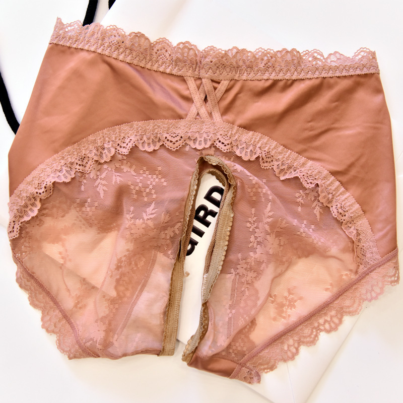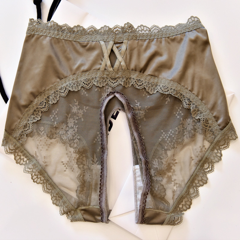리틀 매치 메이커 새틴 실키 오일 밝은 섹시한 여성 오픈 속옷 통기성 대형 브리프 레이스 실크 반바지