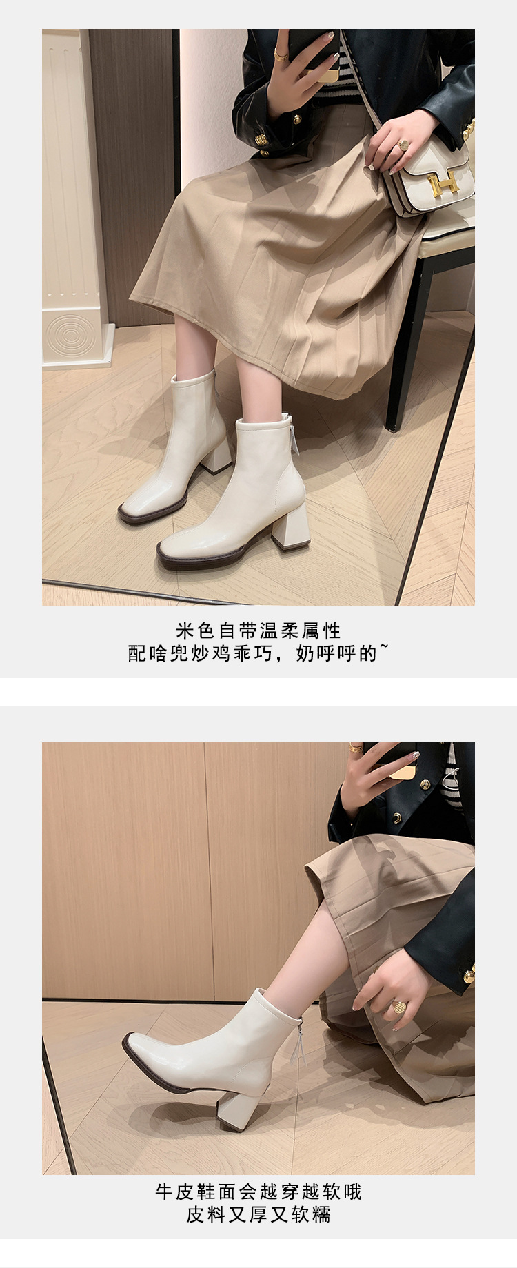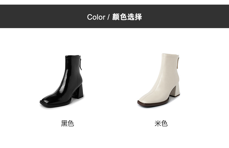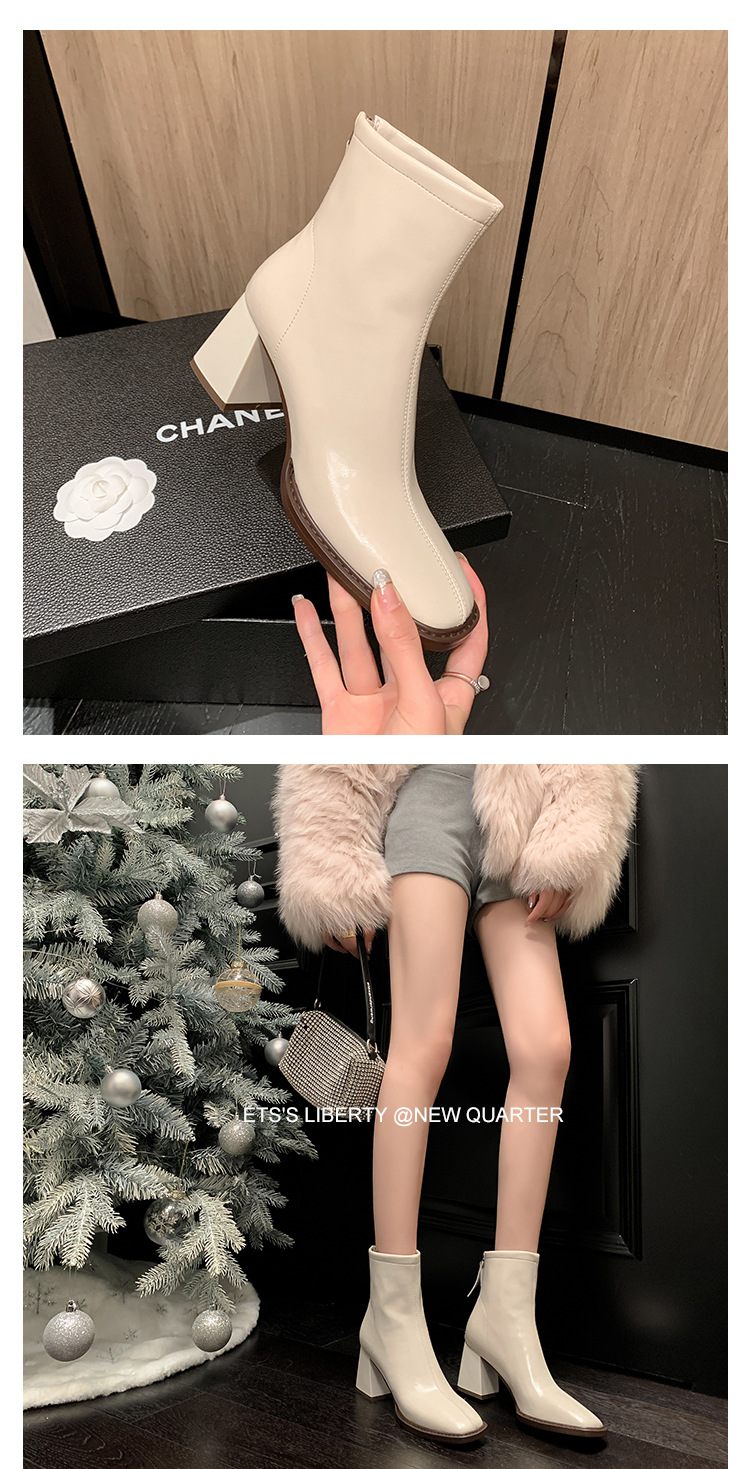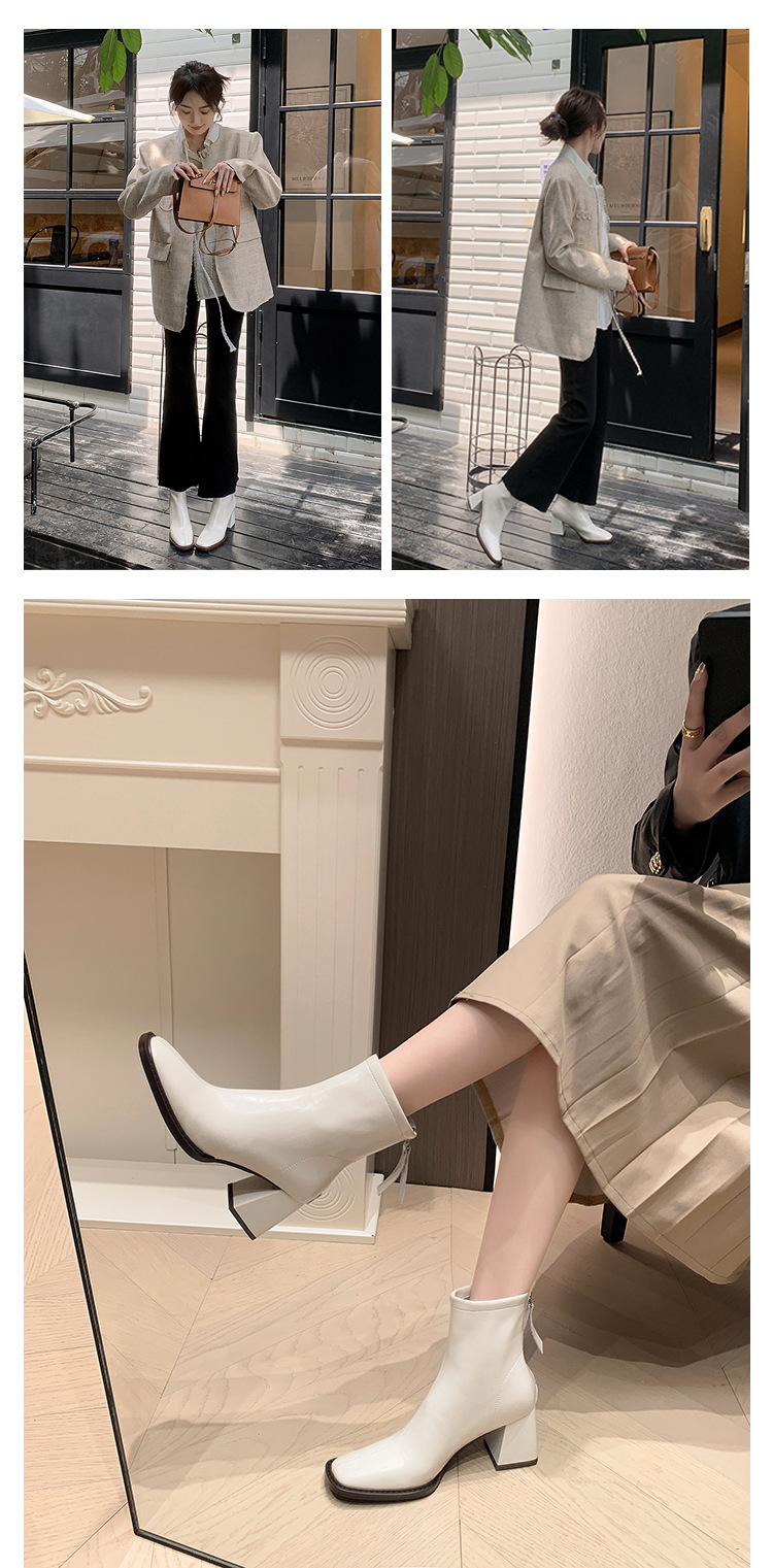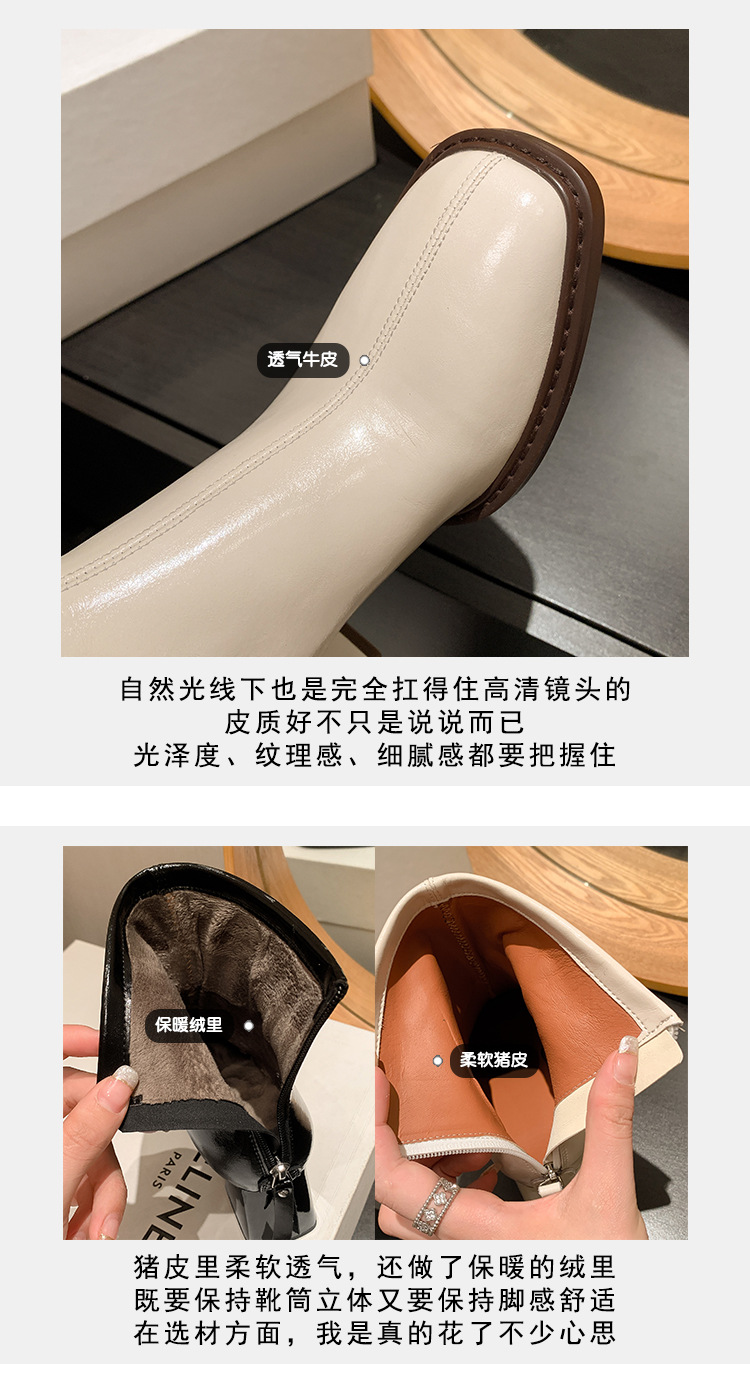 우아한 모든 매치 소가죽 첼시 부츠 2023 겨울 새로운 스타일 두꺼운 하이힐 스퀘어 토 전체 가죽 후면 지퍼 여성용 간단한 짧은 부츠스토어 가기