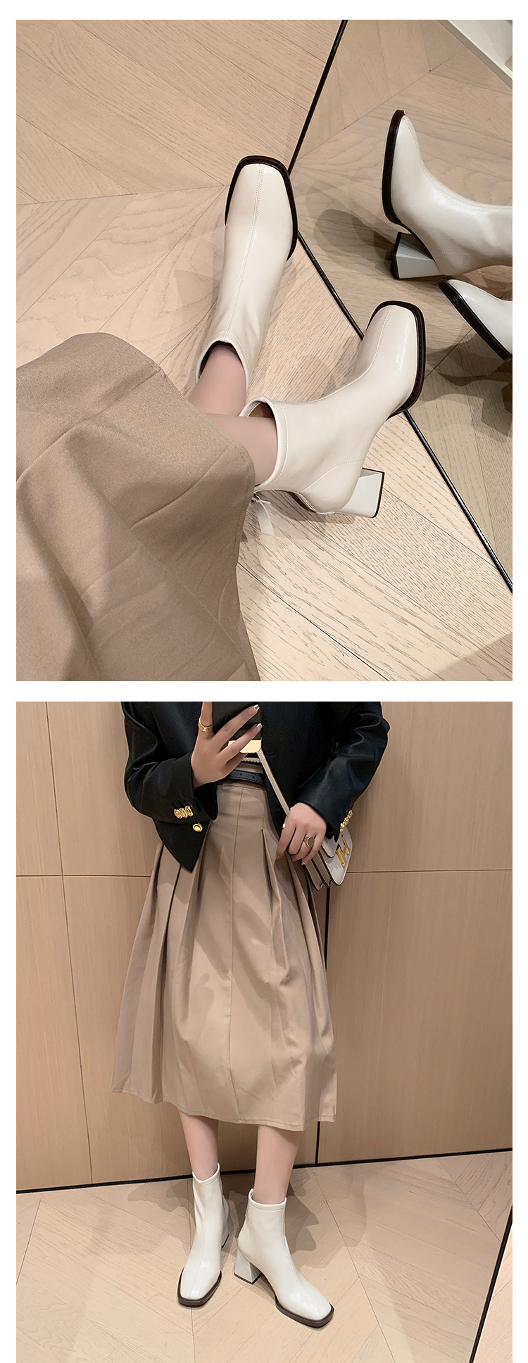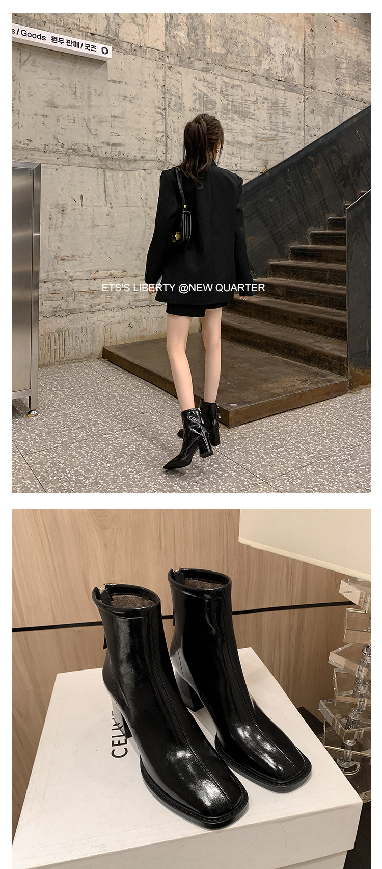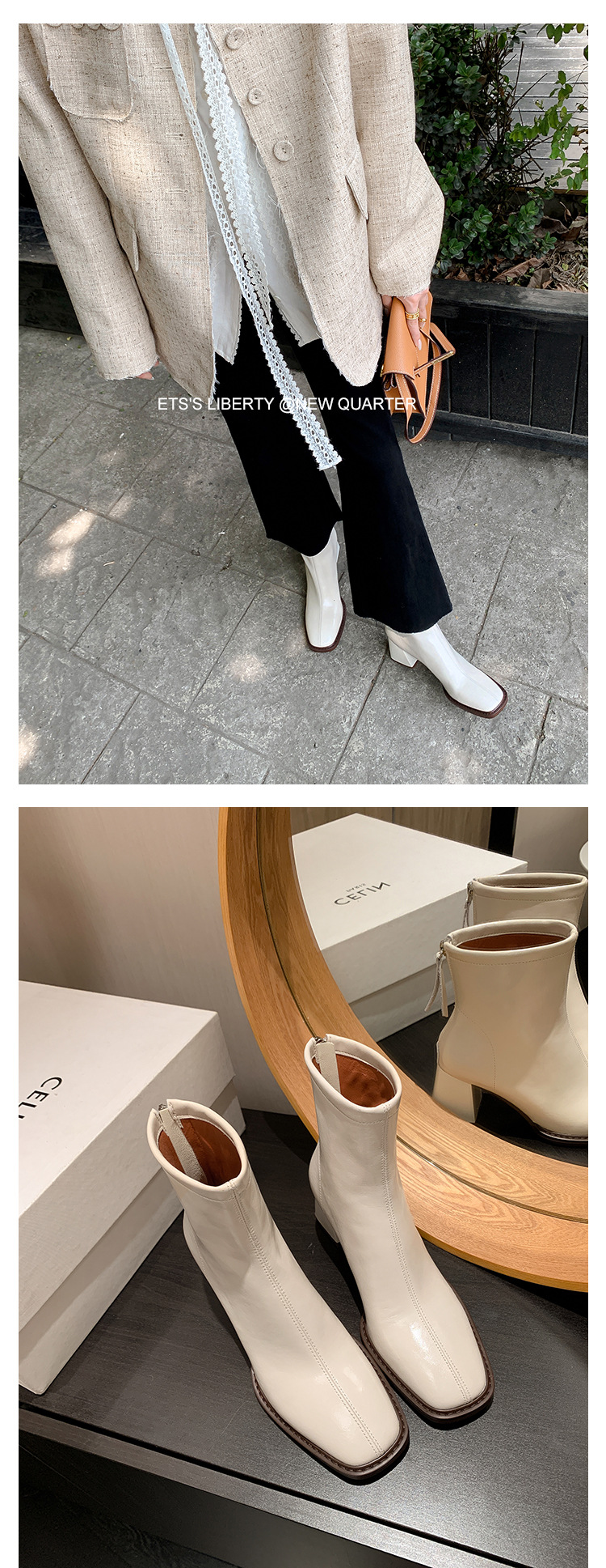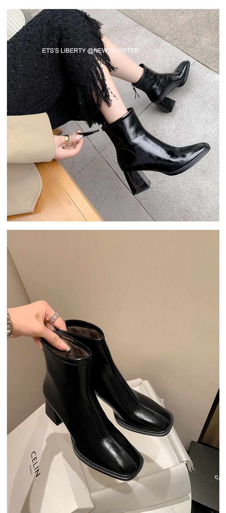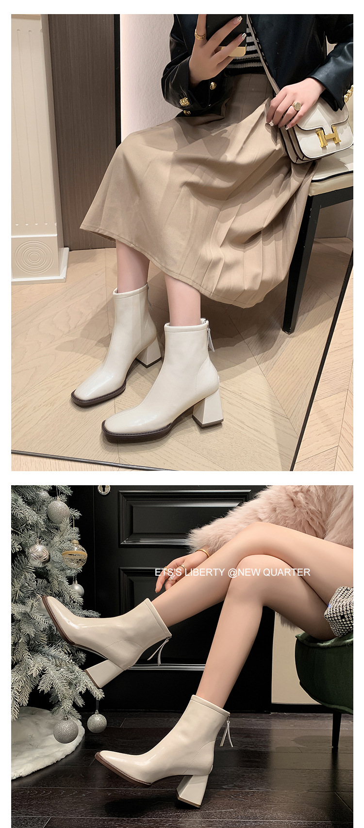 우아한 모든 매치 소가죽 첼시 부츠 2023 겨울 새로운 스타일 두꺼운 하이힐 스퀘어 토 전체 가죽 후면 지퍼 여성용 간단한 짧은 부츠스토어 가기