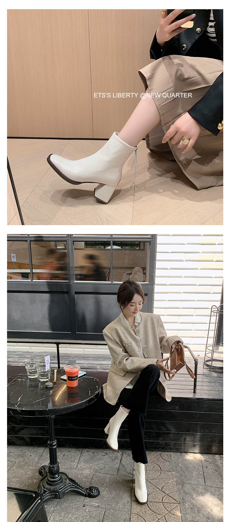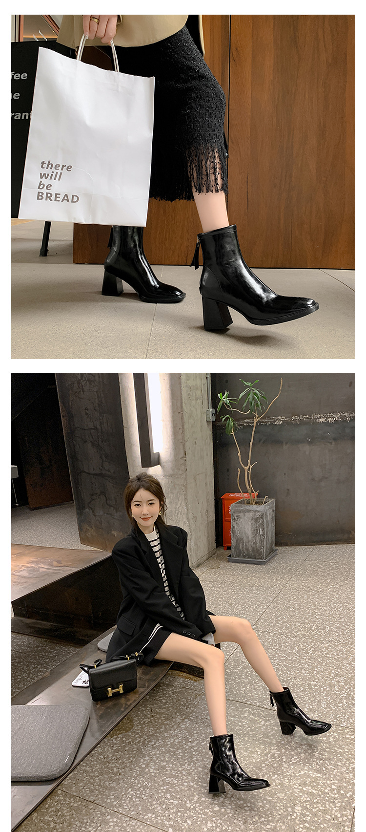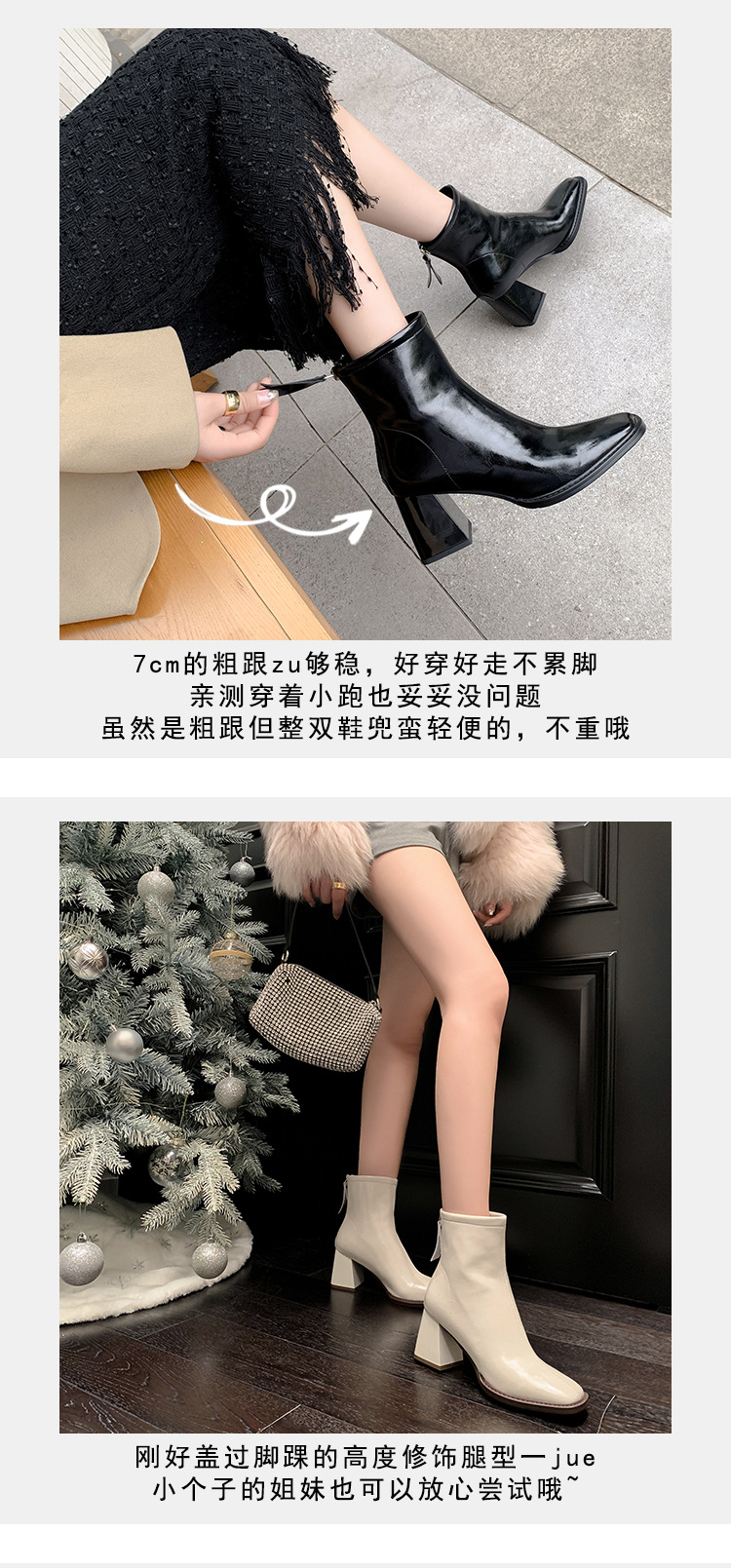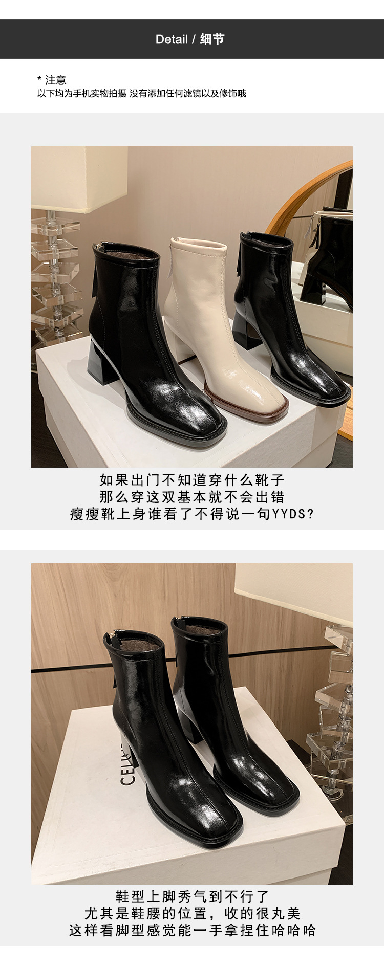 우아한 모든 매치 소가죽 첼시 부츠 2023 겨울 새로운 스타일 두꺼운 하이힐 스퀘어 토 전체 가죽 후면 지퍼 여성용 간단한 짧은 부츠스토어 가기