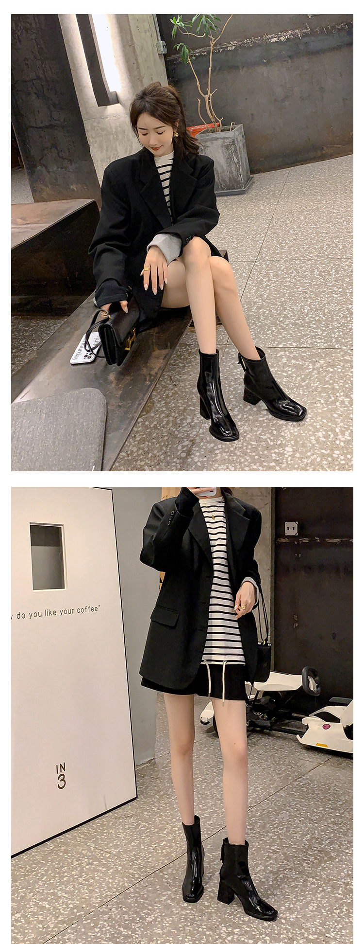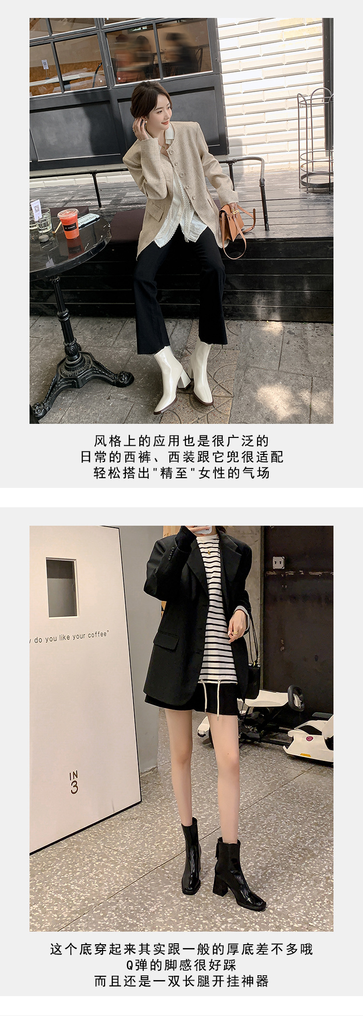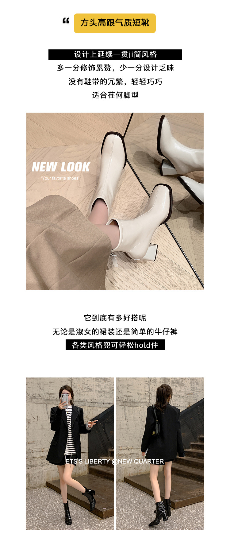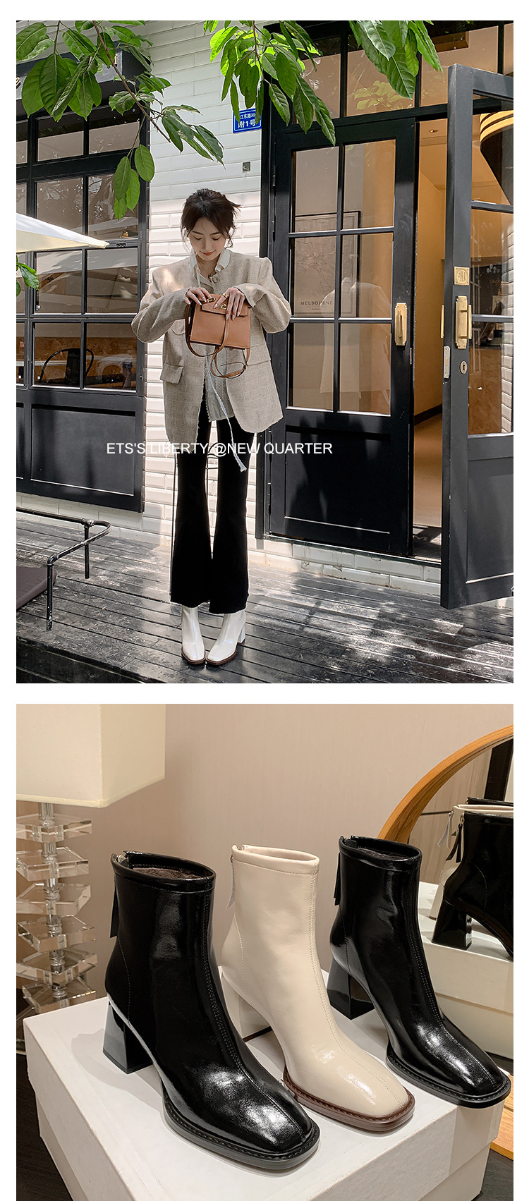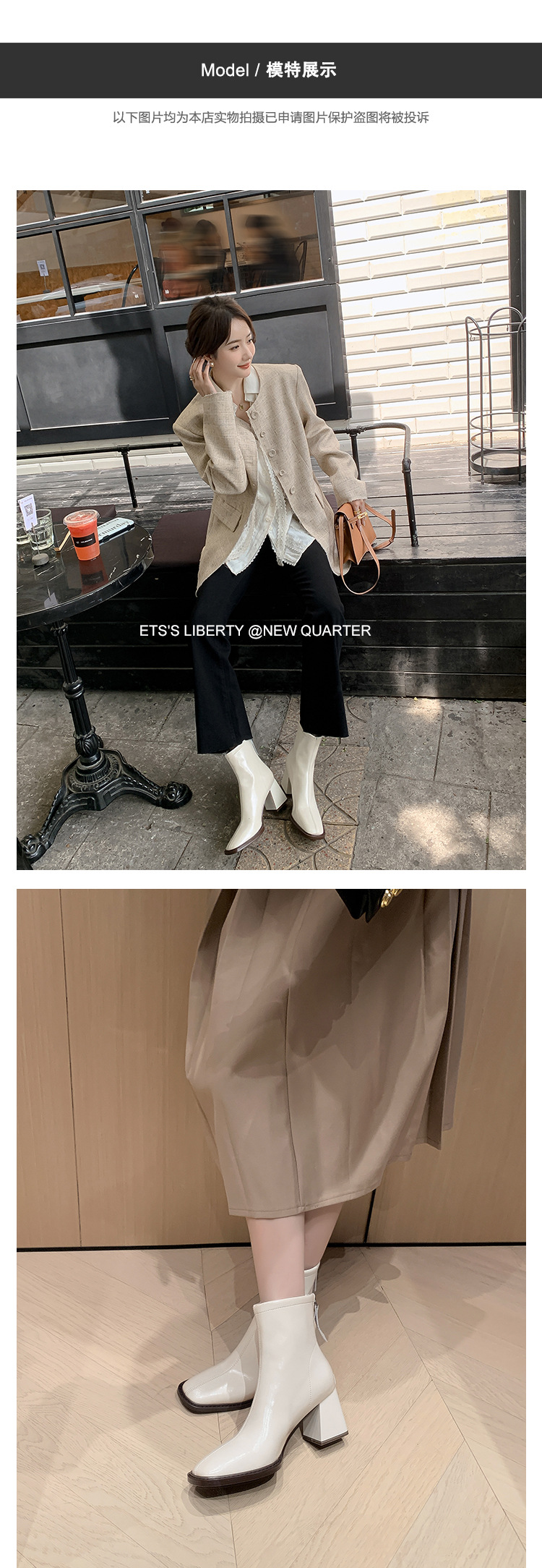 우아한 모든 매치 소가죽 첼시 부츠 2023 겨울 새로운 스타일 두꺼운 하이힐 스퀘어 토 전체 가죽 후면 지퍼 여성용 간단한 짧은 부츠스토어 가기