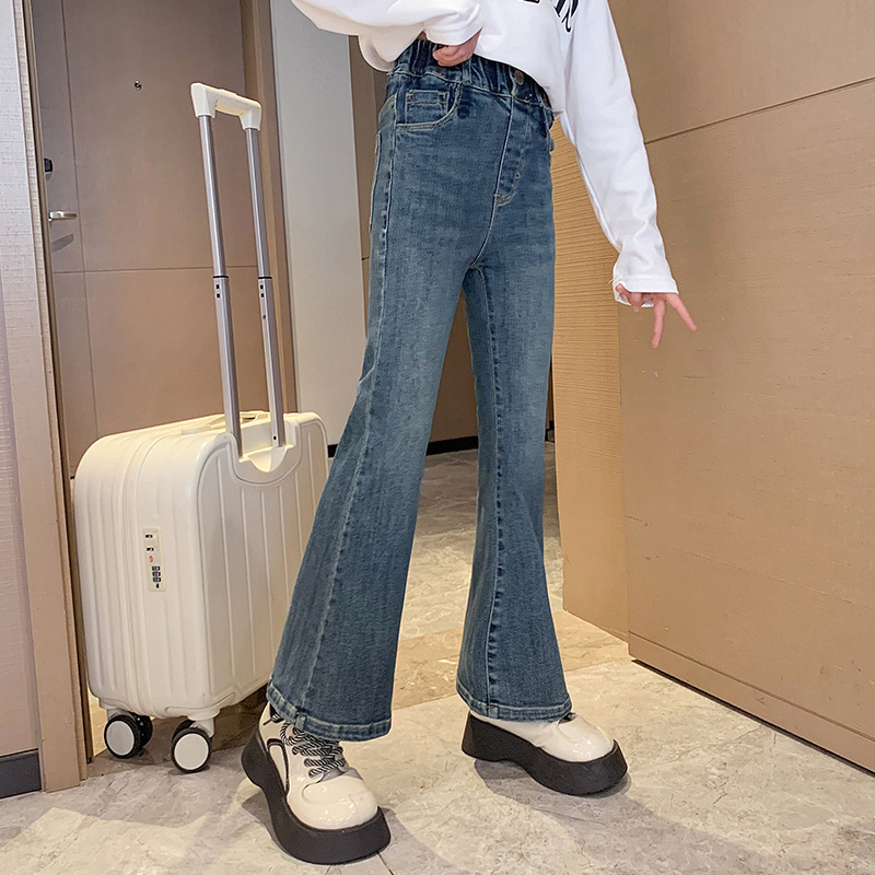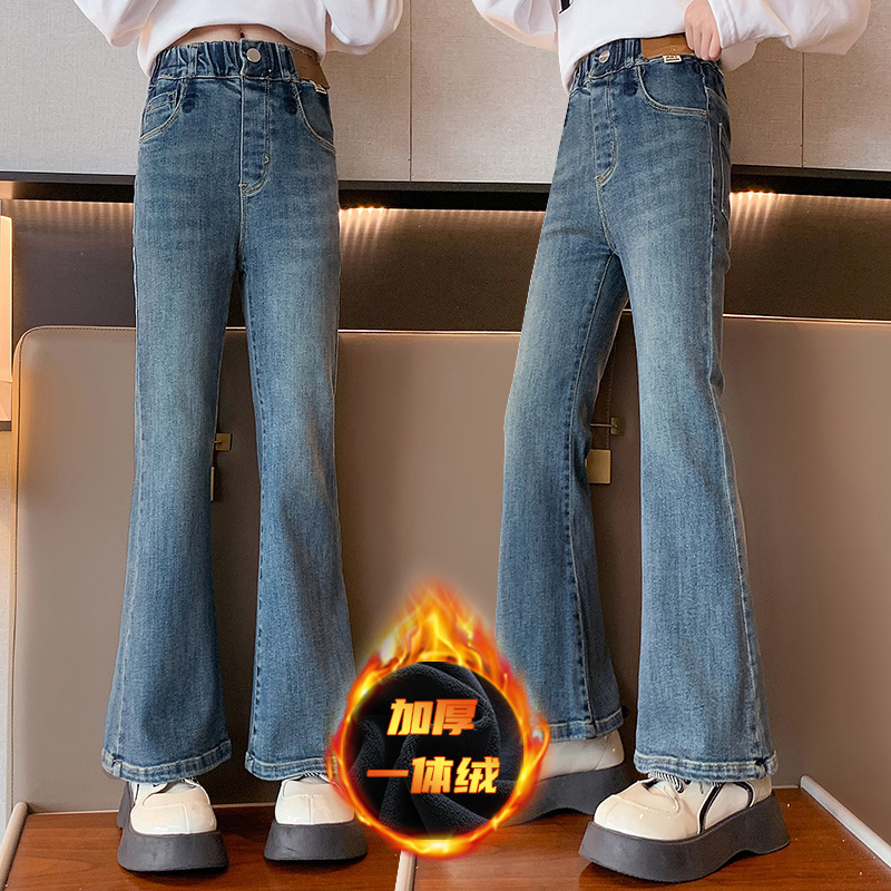여아 가을과 겨울 청바지 바지 서양식 큰 어린이 플레어 팬츠 허리 라벨 어린이 바지 기모 아동복