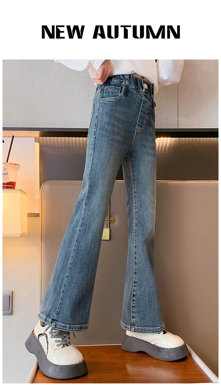 여아 가을과 겨울 청바지 바지 서양식 큰 어린이 플레어 팬츠 허리 라벨 어린이 바지 기모 아동복스토어 가기