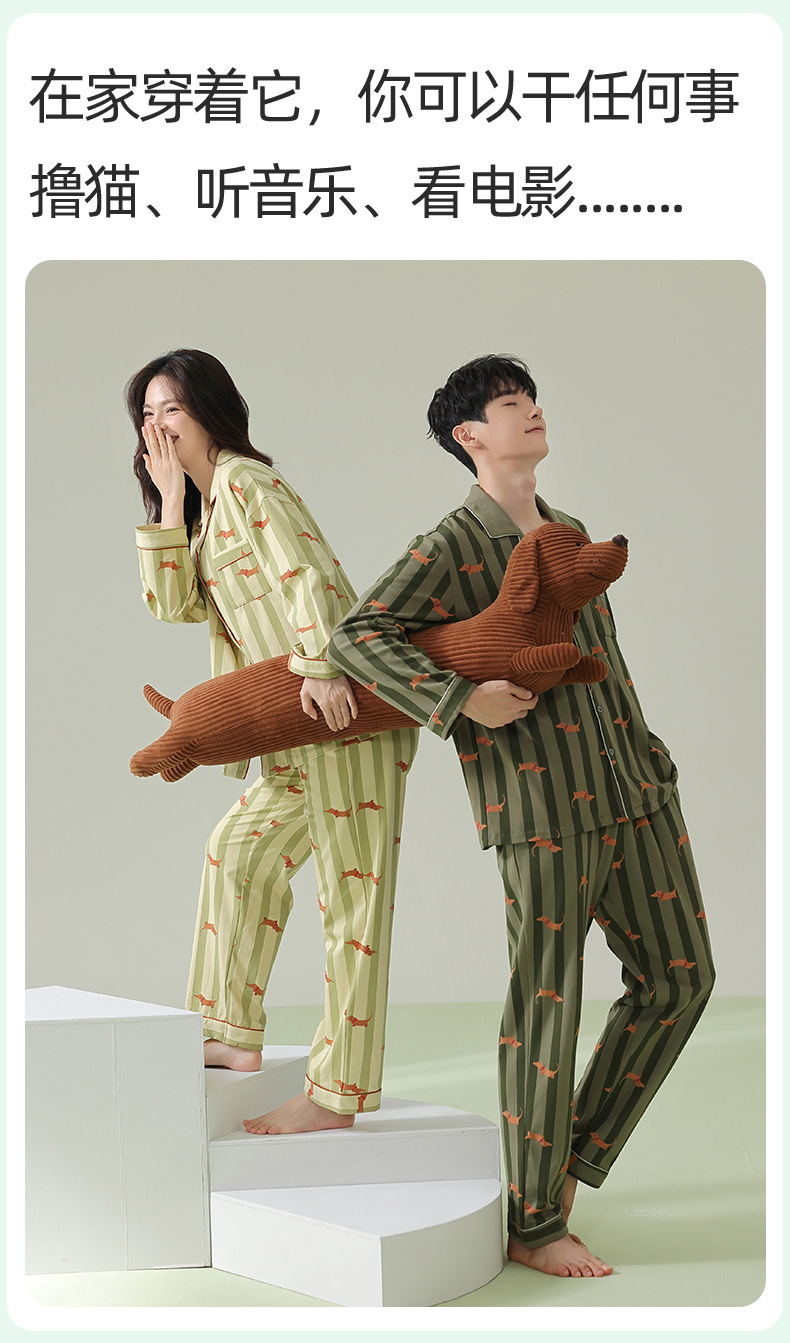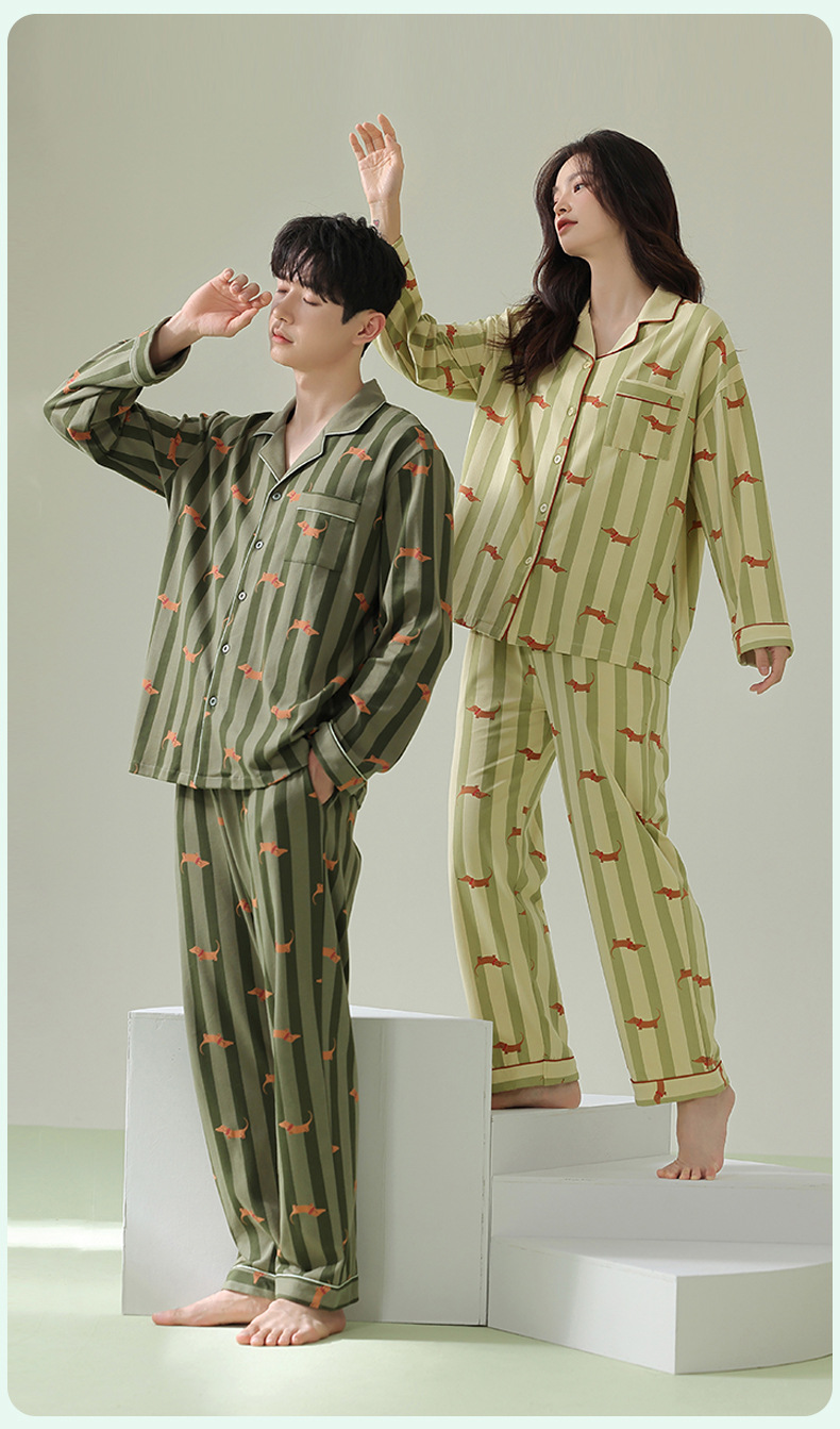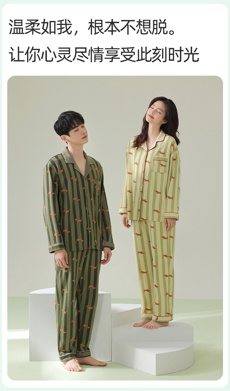 【항균 신장면】봄 여름 신상 커플 잠옷 순면 긴팔 가디건 남녀 홈웨어 세트스토어 가기