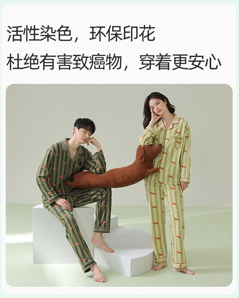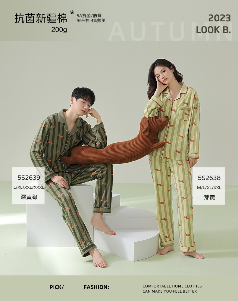 【항균 신장면】봄 여름 신상 커플 잠옷 순면 긴팔 가디건 남녀 홈웨어 세트