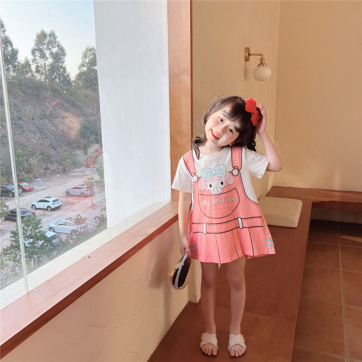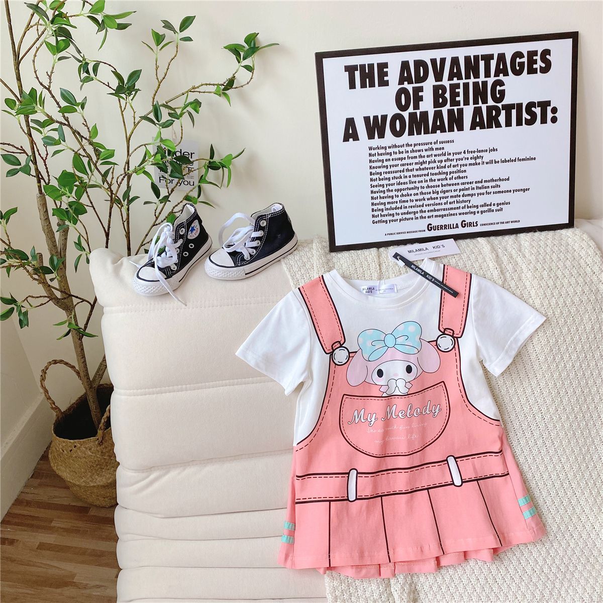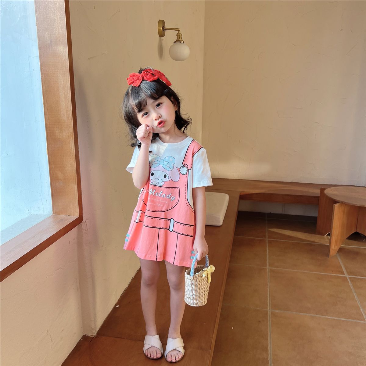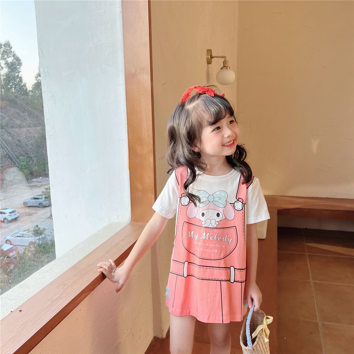 2024 봄과 가을 새로운 스타일 어린이 아기 소녀 만화 인쇄 가짜 투피스 드레스 세련되고 유행
