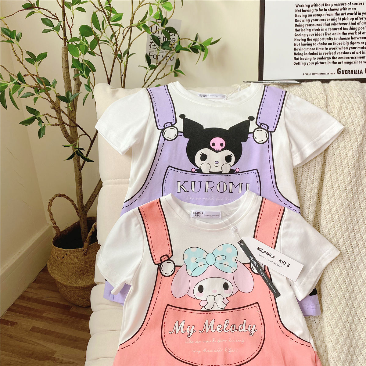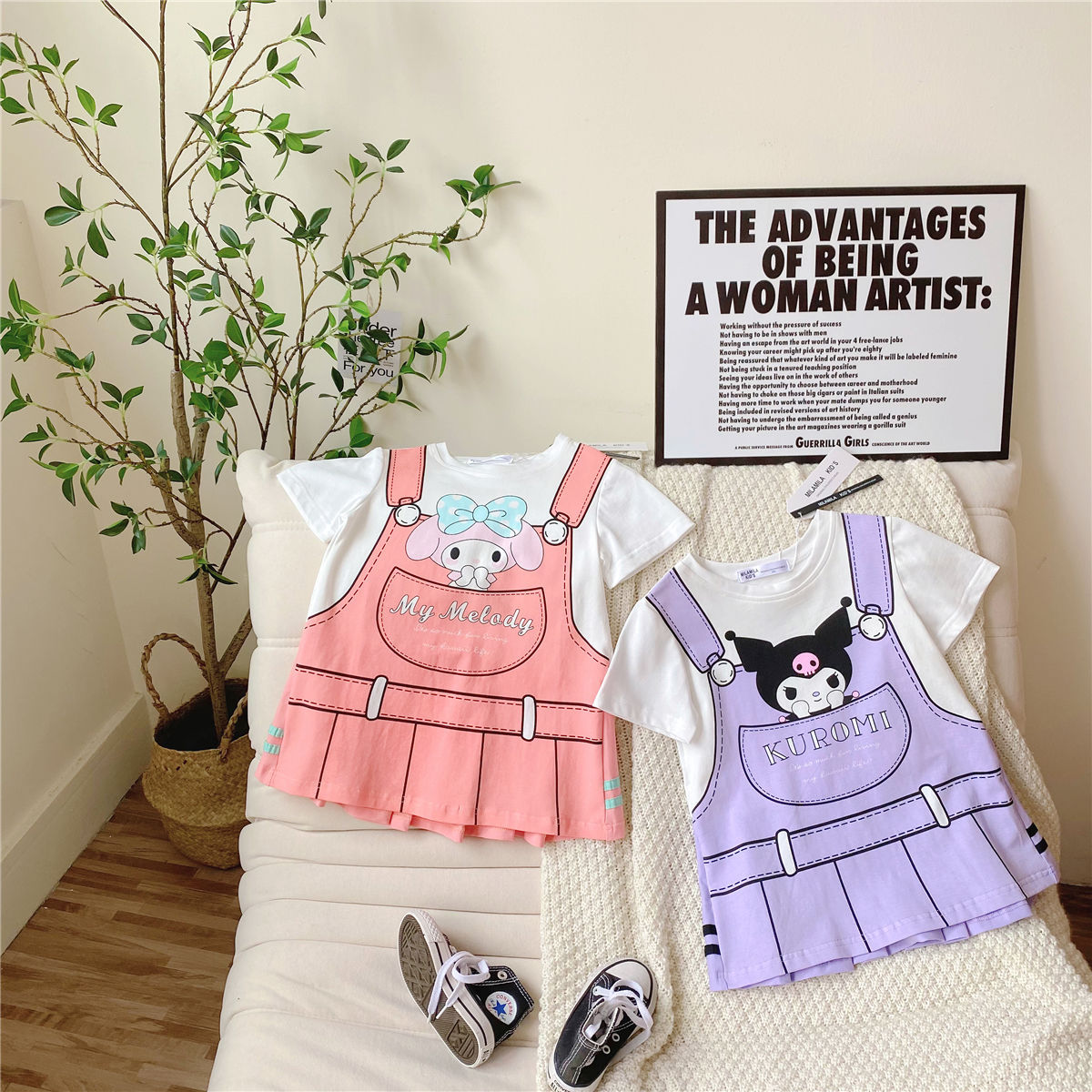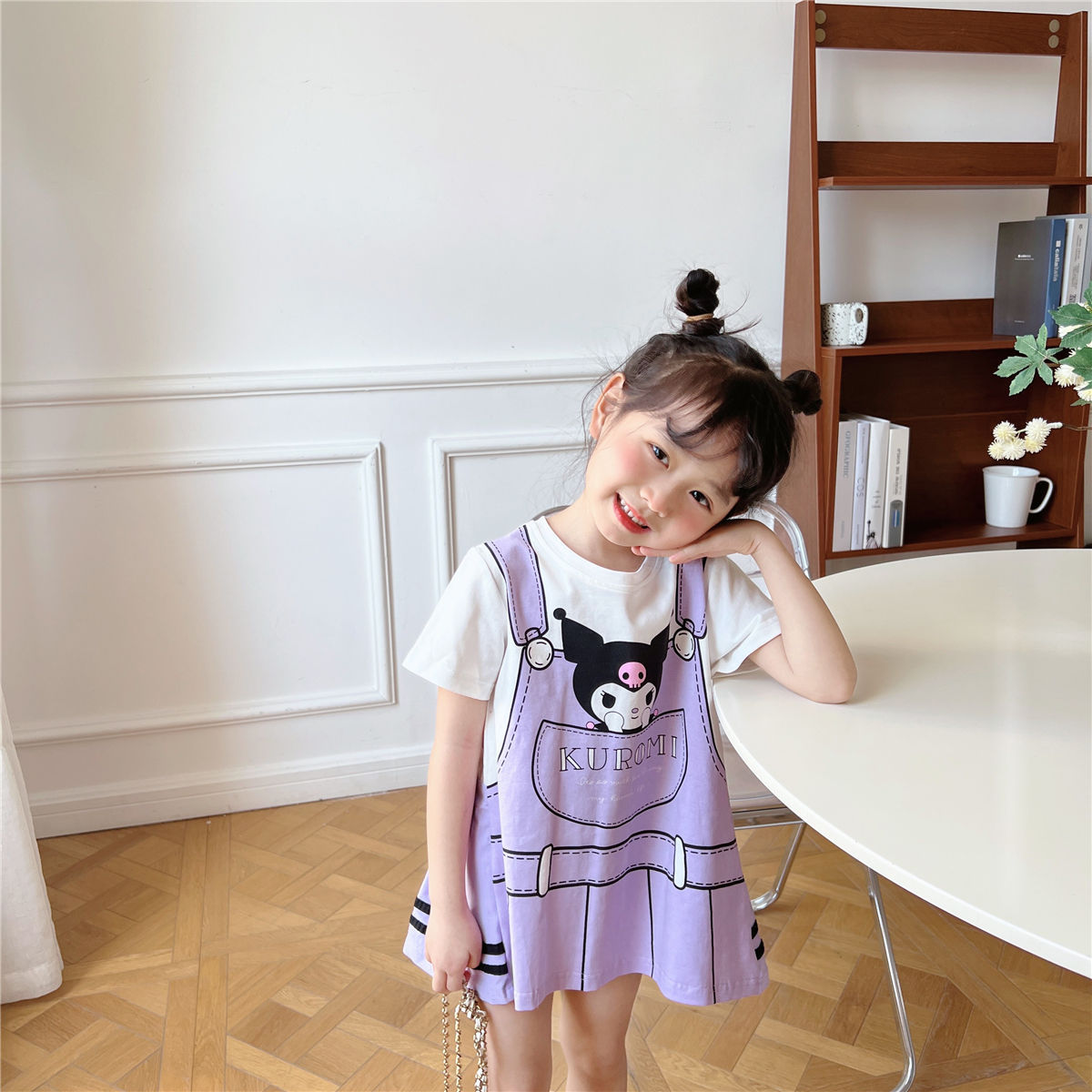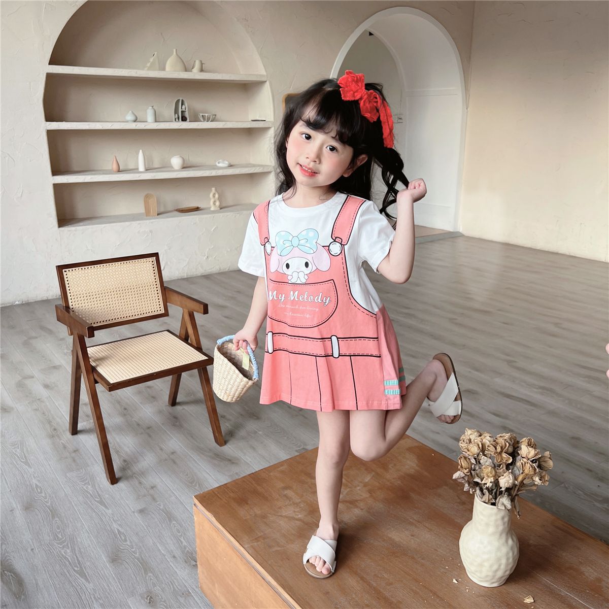 2024 봄과 가을 새로운 스타일 어린이 아기 소녀 만화 인쇄 가짜 투피스 드레스 세련되고 유행