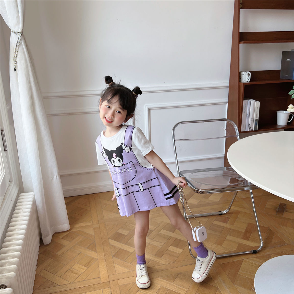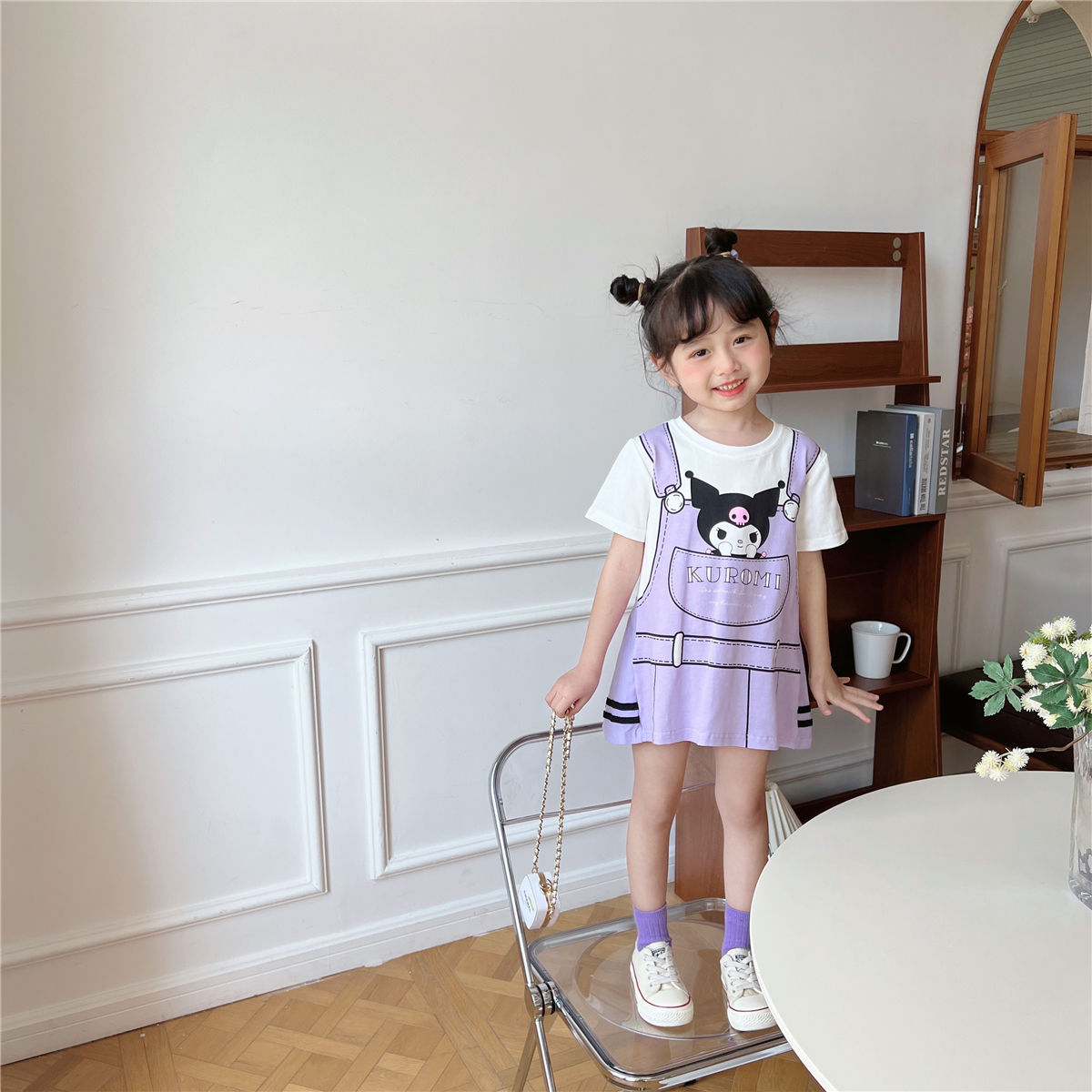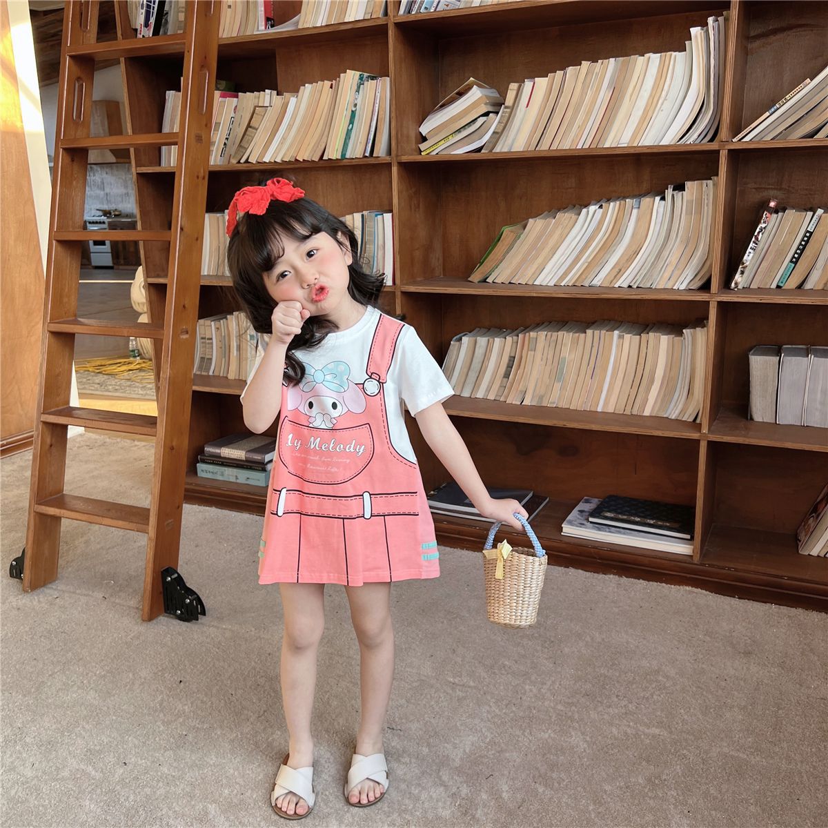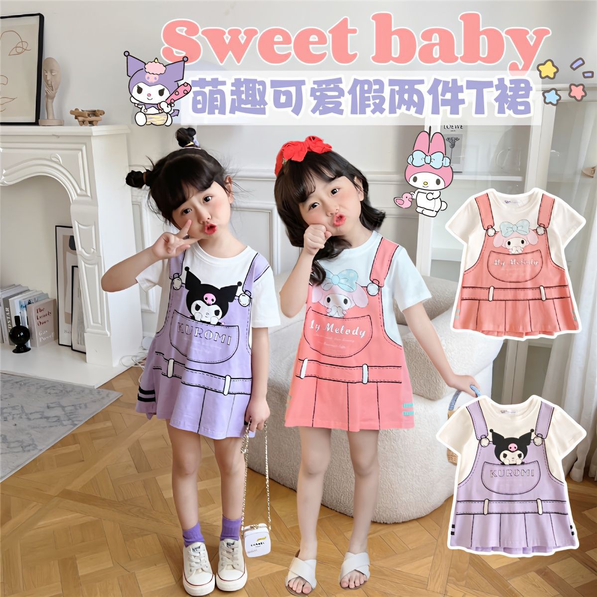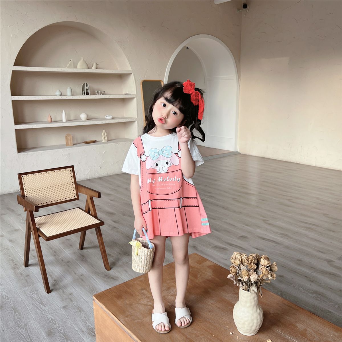 2024 봄과 가을 새로운 스타일 어린이 아기 소녀 만화 인쇄 가짜 투피스 드레스 세련되고 유행스토어 가기