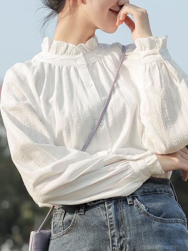 곰팡이 가장자리 셔츠 여성의 디자인 감각 틈새 2023 봄 새로운 흰색 긴 소매 셔츠 베이스 탑스토어 가기