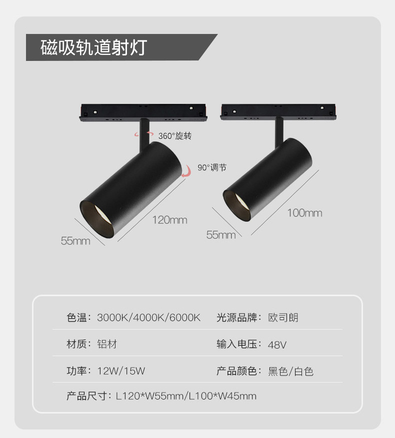 표면 장착형 트랙 조명, 마그네틱 흡착식, 메인 조명 없음, 매립형, 매립형 LED, 지능형 디밍 및 색상 조절 가능, 마그네틱 흡착식 트랙 조명 스포트라이트