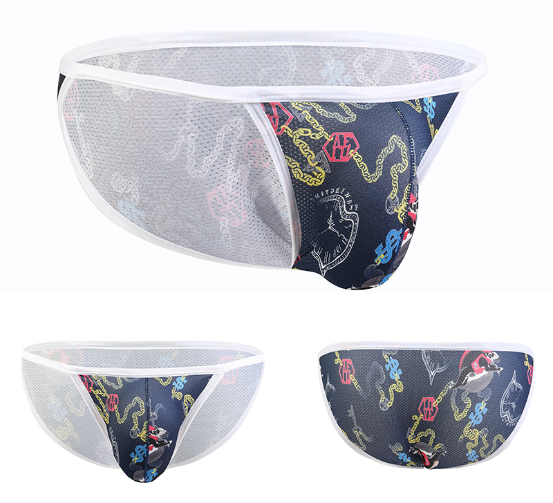 GAY 유럽과 미국 대외 무역 섹시한 낮은 허리 남성 속옷 헤드 만화 인쇄 통기성 U 볼록 트렌드 하이 포크 바지 E082