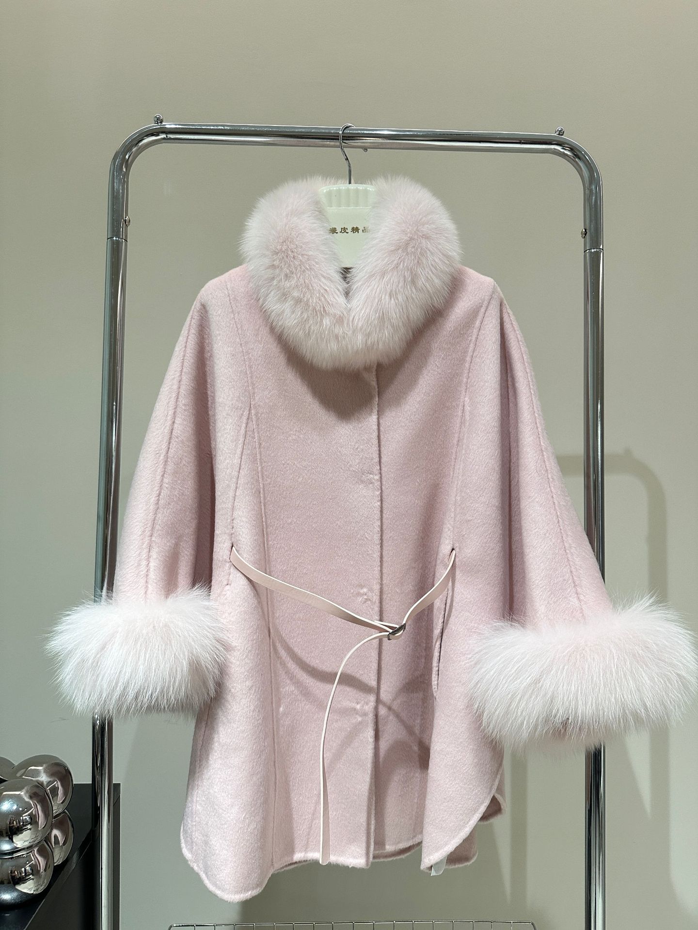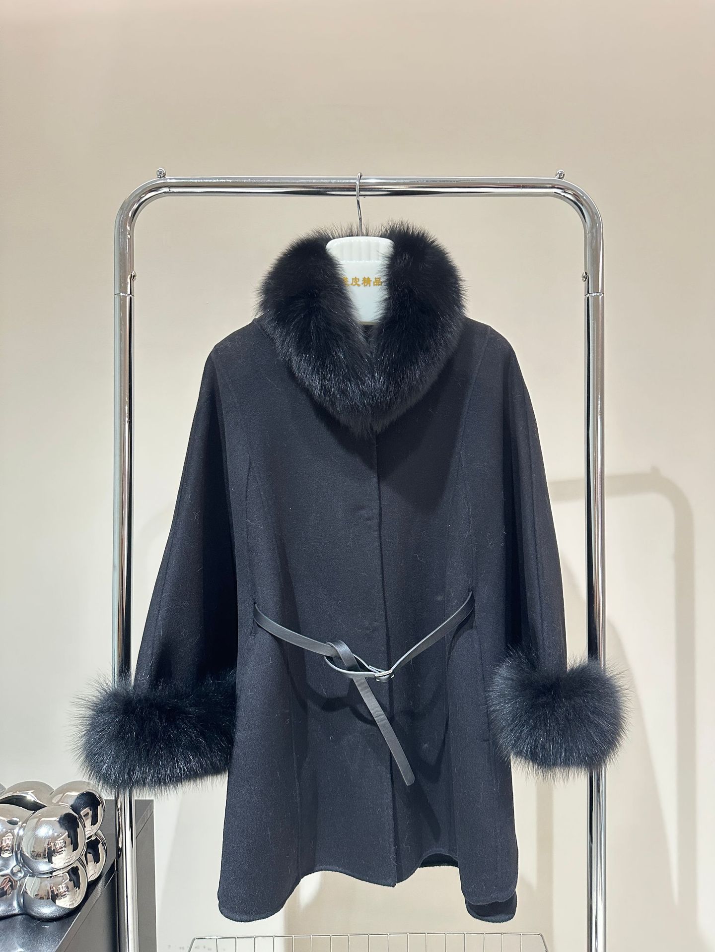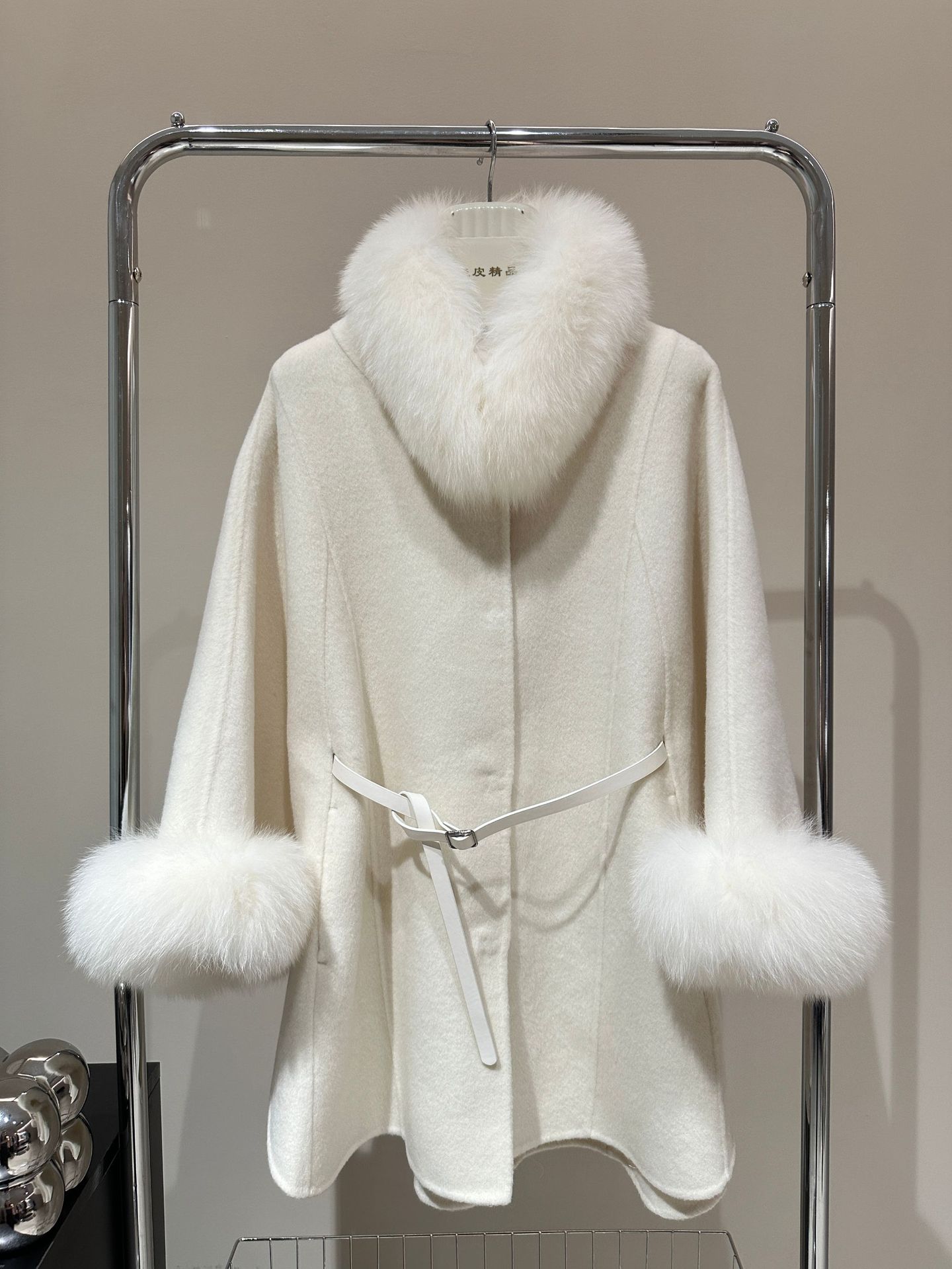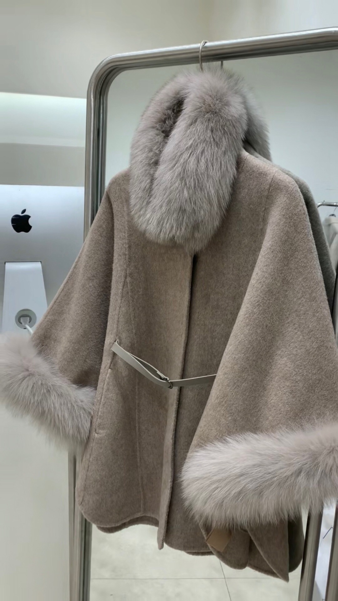 양면 캐시미어 코트 여성용 2023 가을과 겨울 새로운 중간 길이 하이 엔드 케이프 폭스 모피 칼라 울 코트스토어 가기