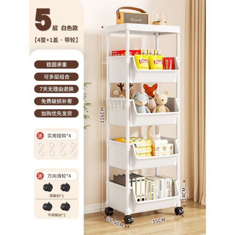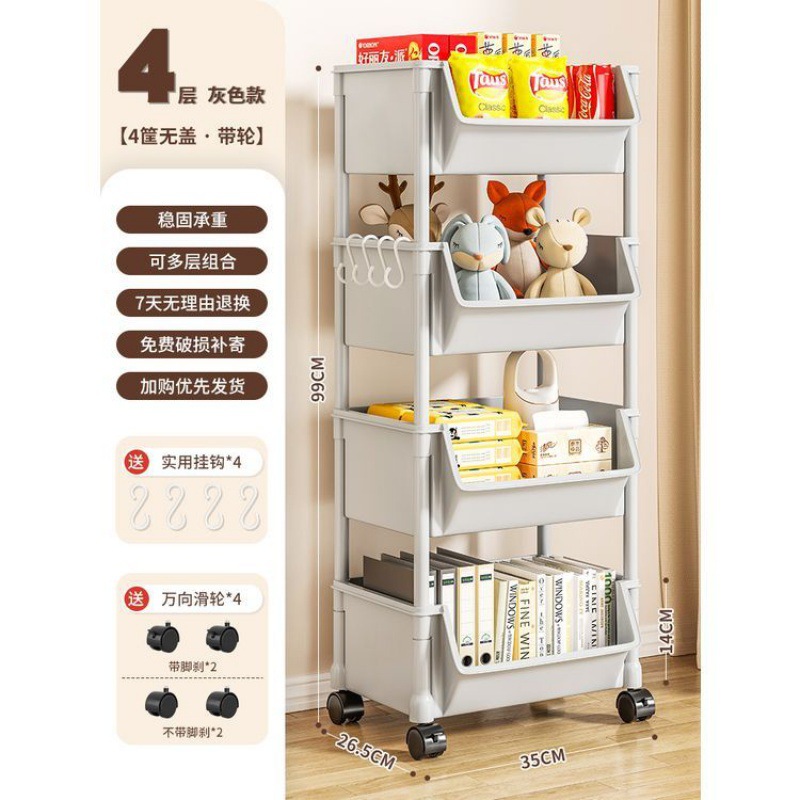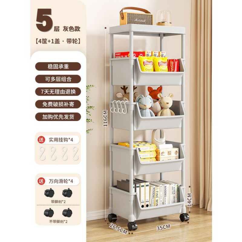 작은 카트 보관 랙 가정용 스낵 바닥 다층 전체 집 수납 책장 모바일 주방 과일 야채 바구니 랙