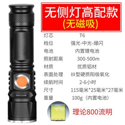 • T6 램프 비드, 측면 조명 없음, 강한 자기 없음