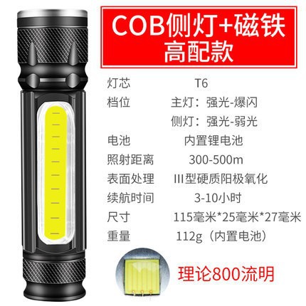 새로운 야외 조명 줌 미니 손전등 USB 충전식 다기능 LED 강광 COB 측면등 휴대용스토어 가기
