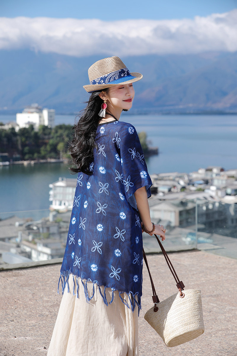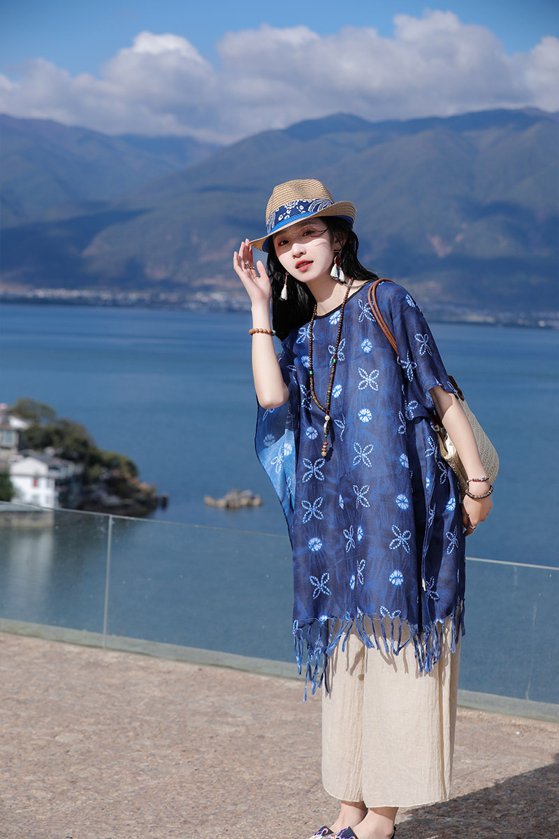 타이 염색 숄 에스닉 스타일 빈티지 술 스카프 여름 운난 여행 코트 숄 코튼 린넨 자외선 차단제 숄스토어 가기