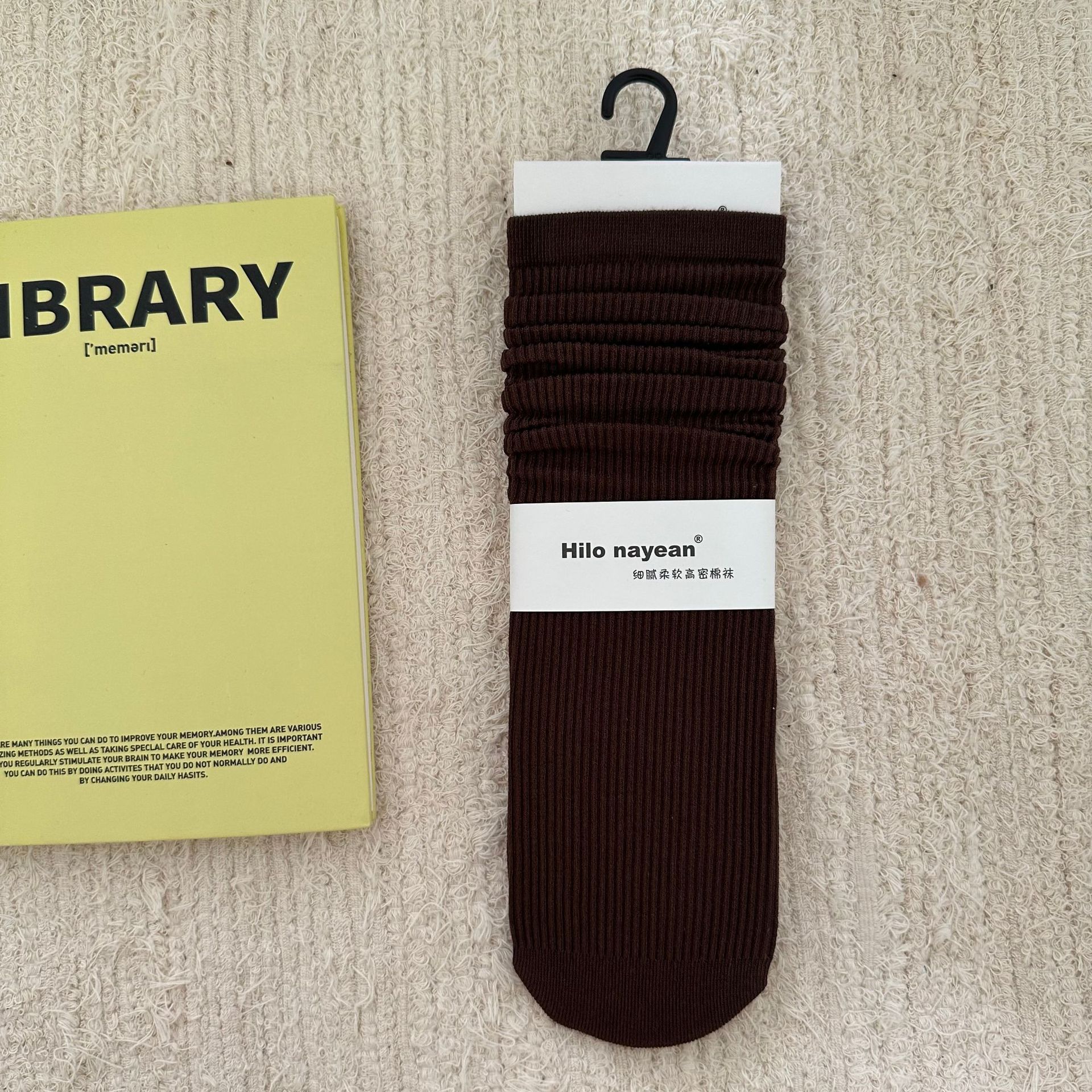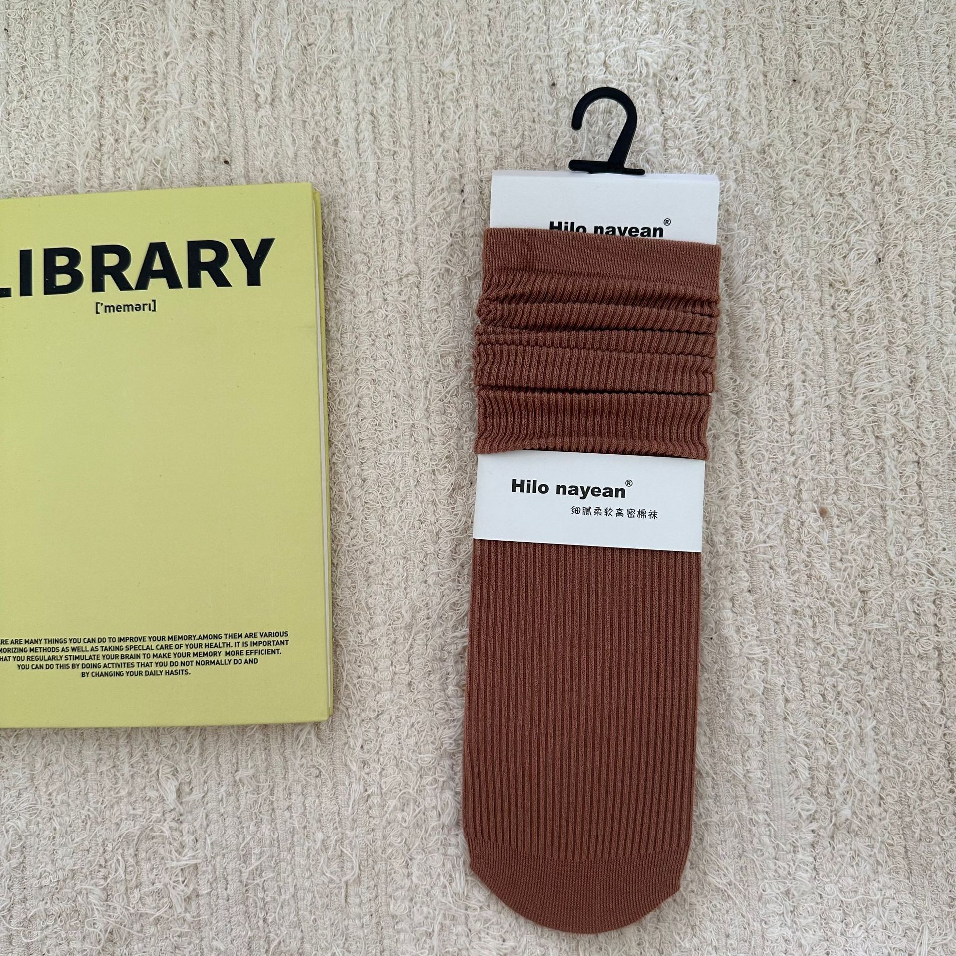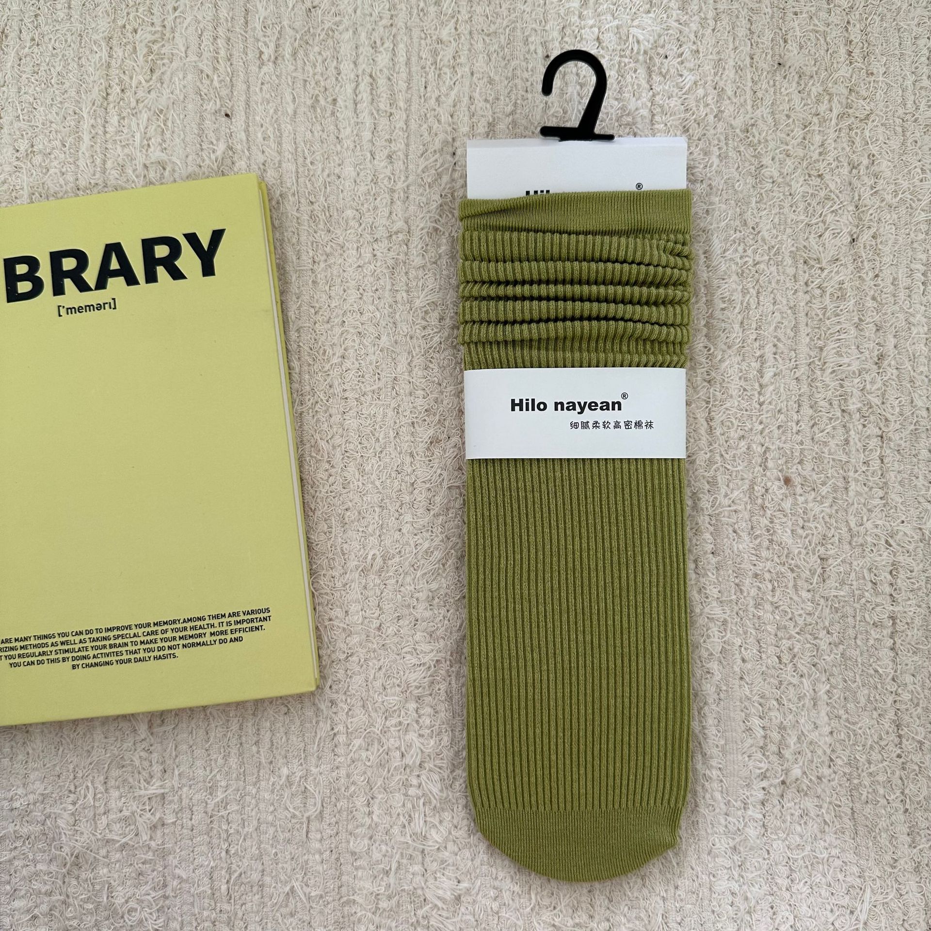 Nanye nayean 양말 여성용 가을과 겨울 새로운 중간 길이 양말 엑스트라 롱 세로 스트라이프 단색 면 고밀도 여성 양말