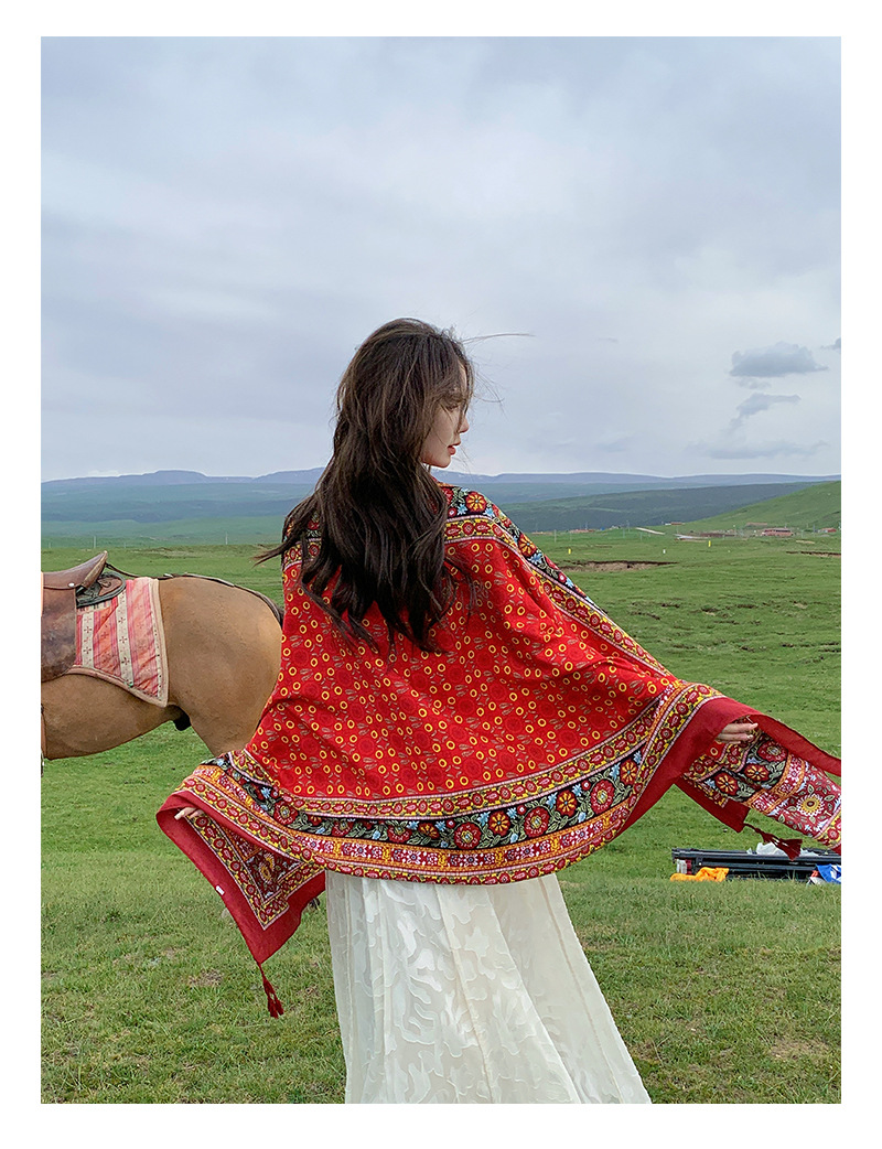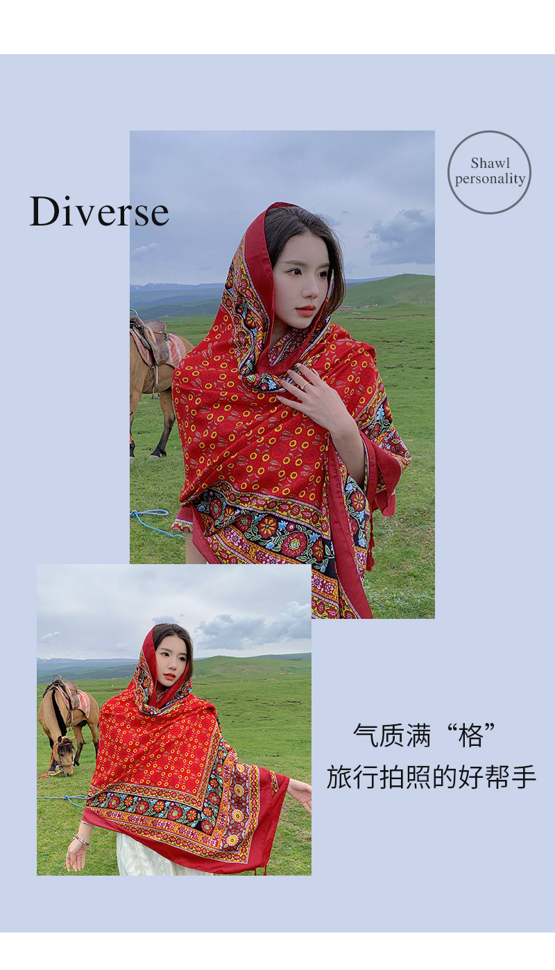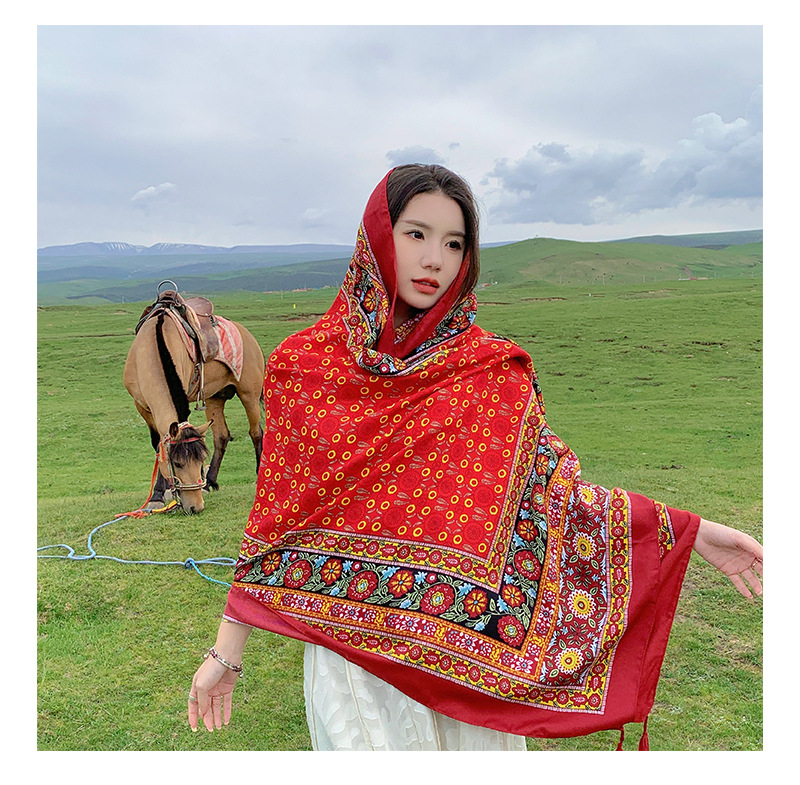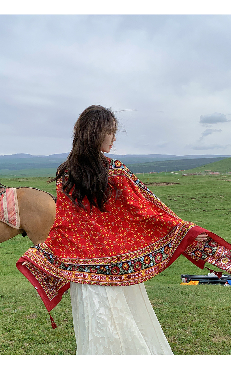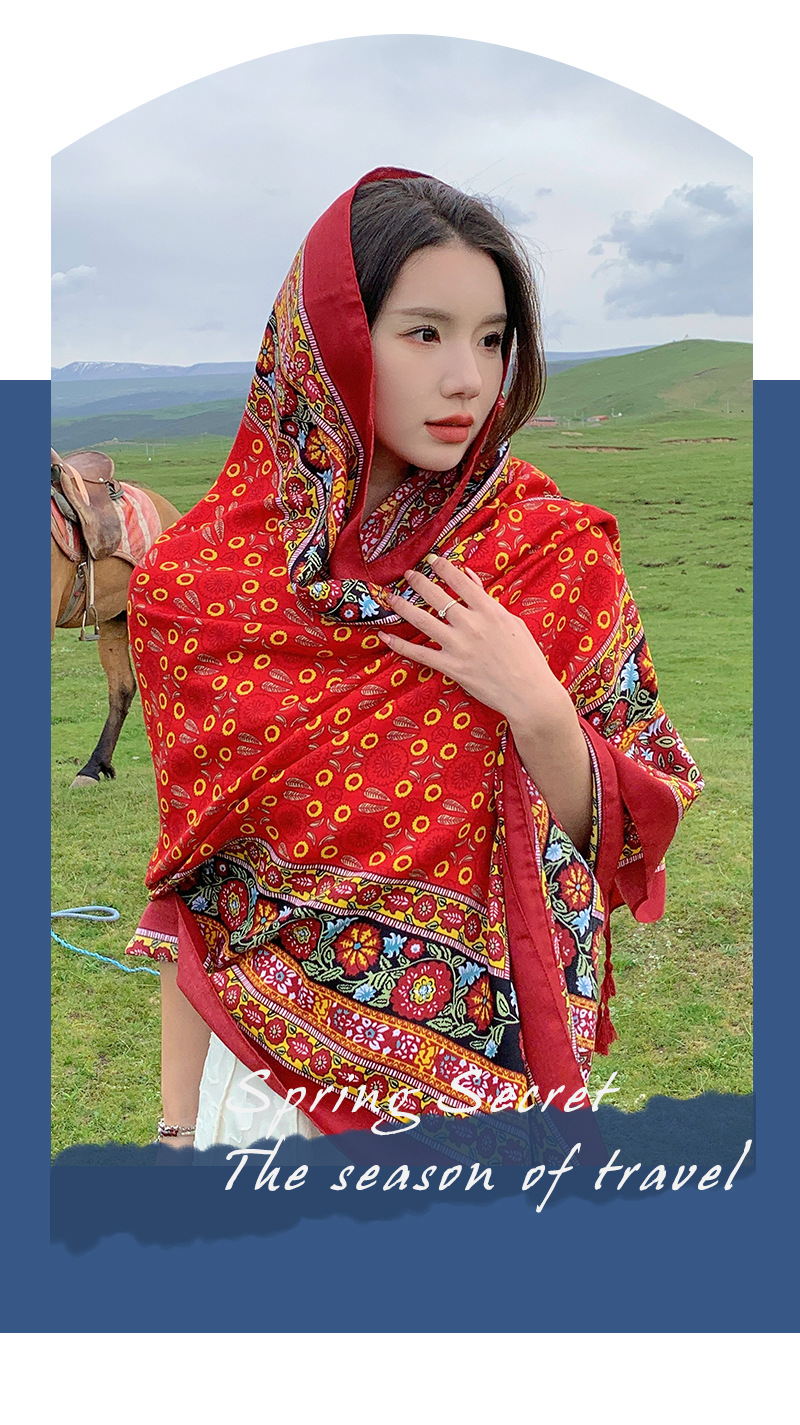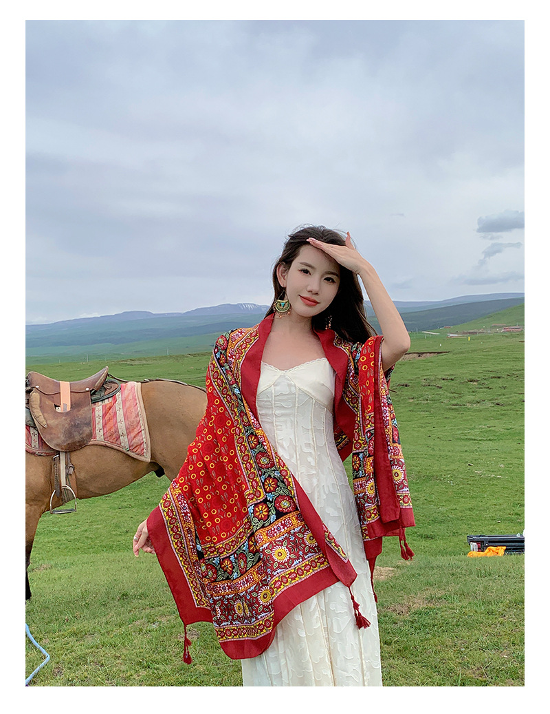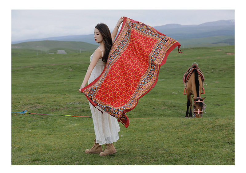 레드 자외선 차단제 숄 여성용 여름 얇은 윈난 리장 관광 스카프 사막 실크 스카프 에스닉 스타일 스카프 비치 스카프