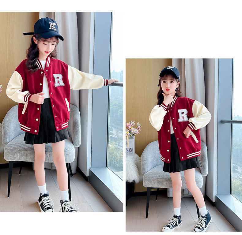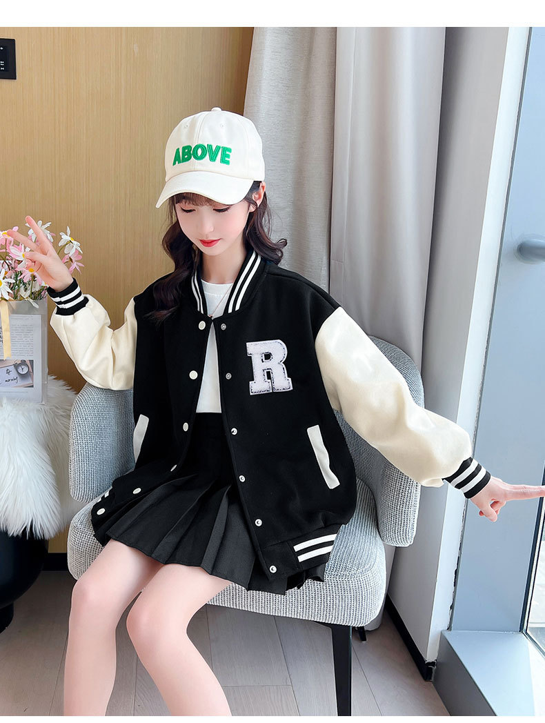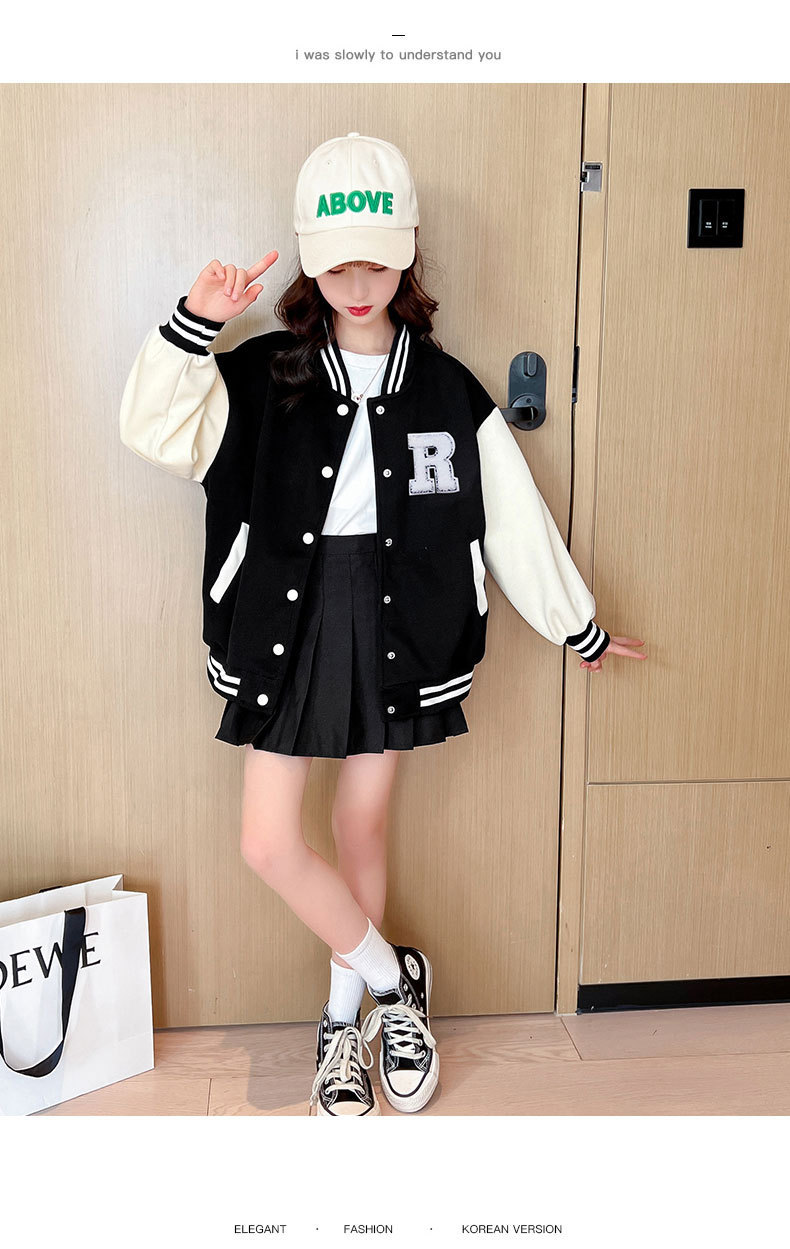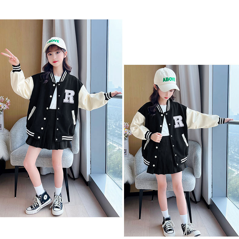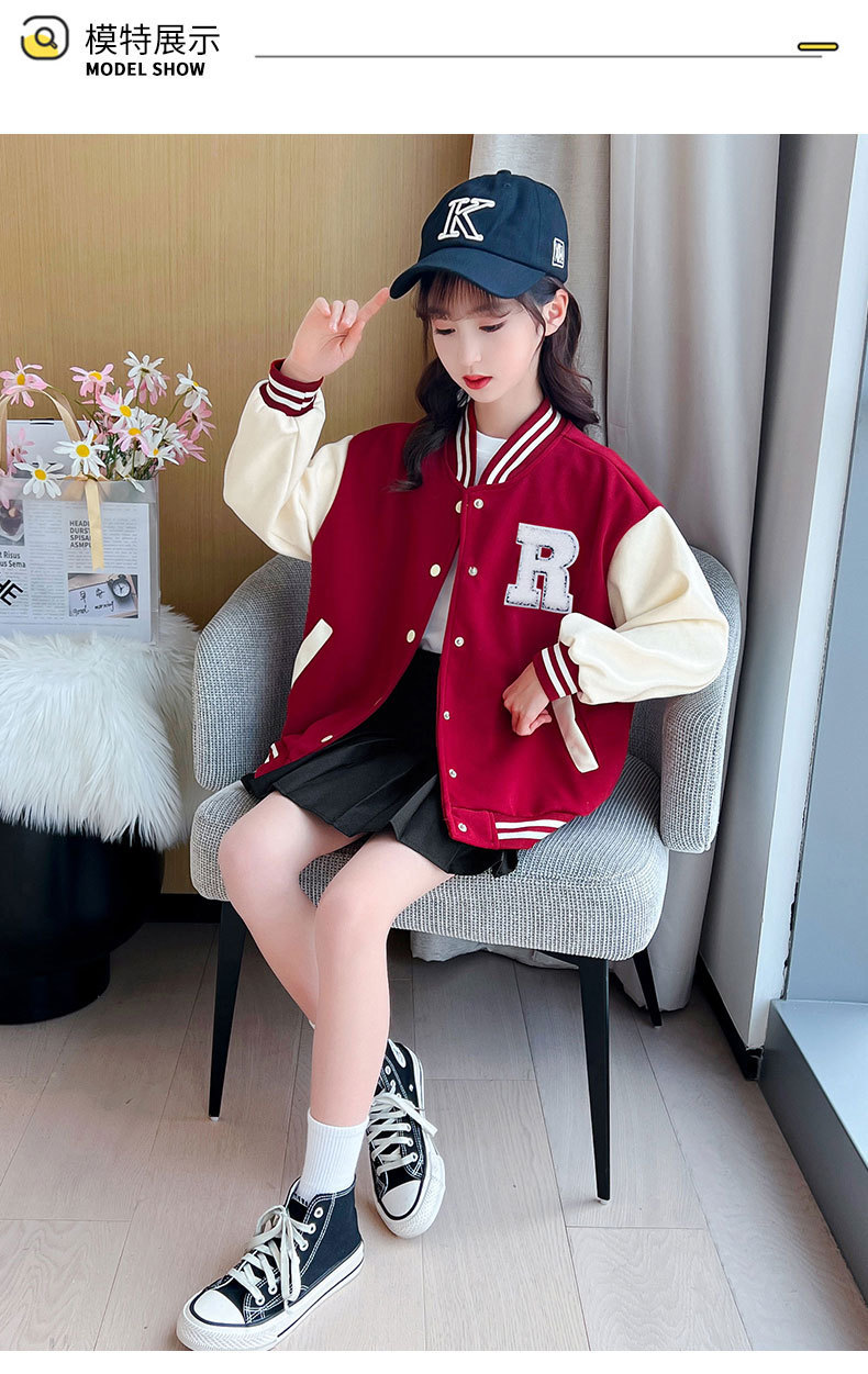 여아 코트 봄과 가을 2023 과 가을 새로운 어린이 컬러 블록 야구 세트 서양식 인터넷-유명한 유행 가디건 어린이 코트스토어 가기