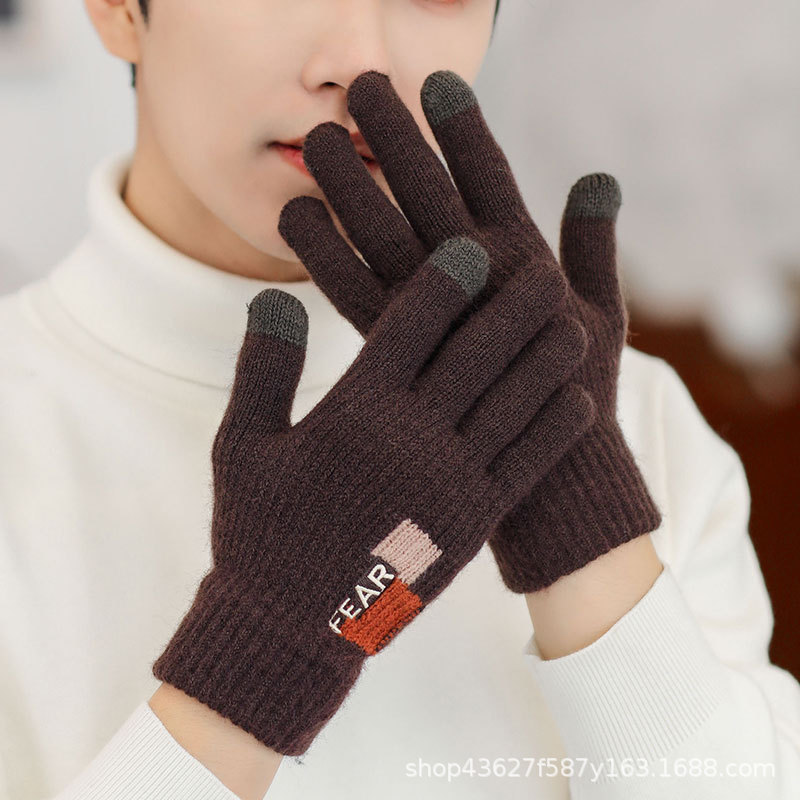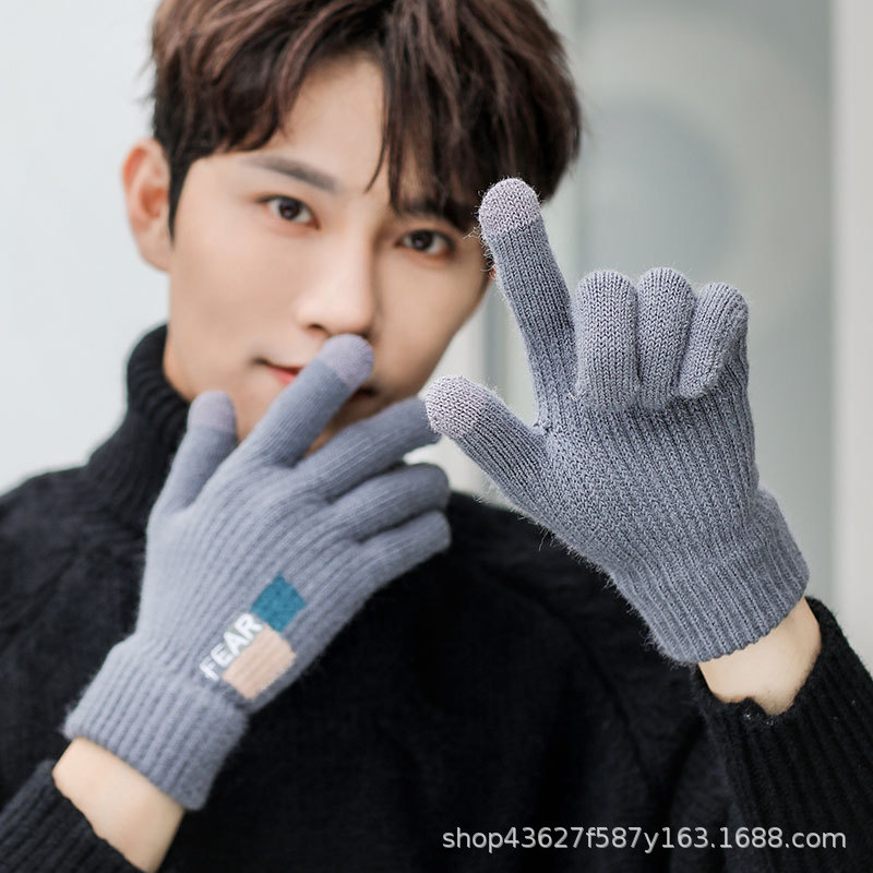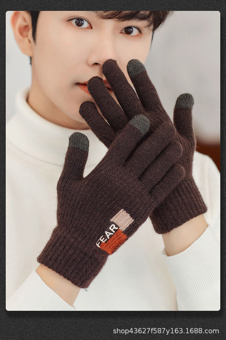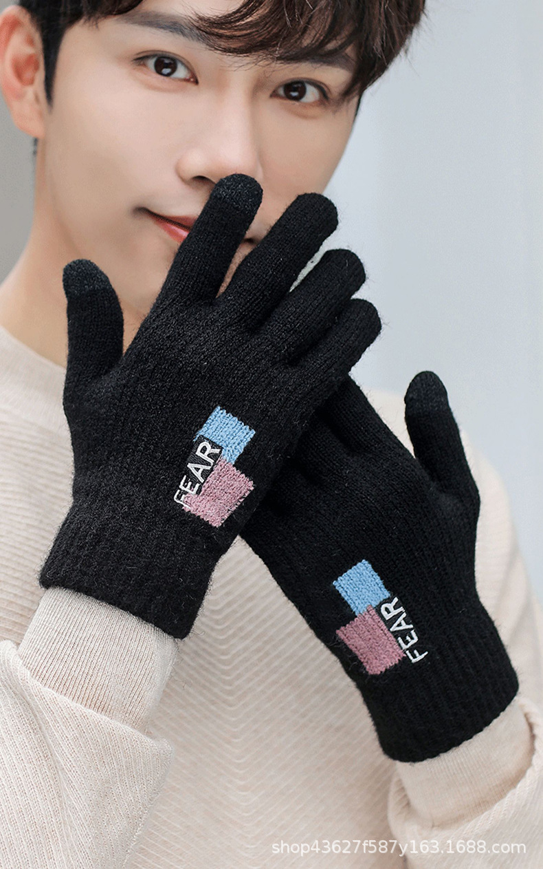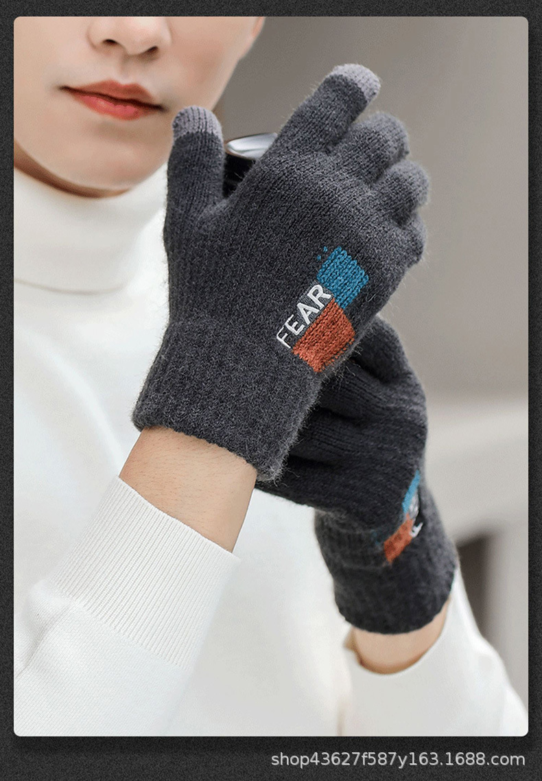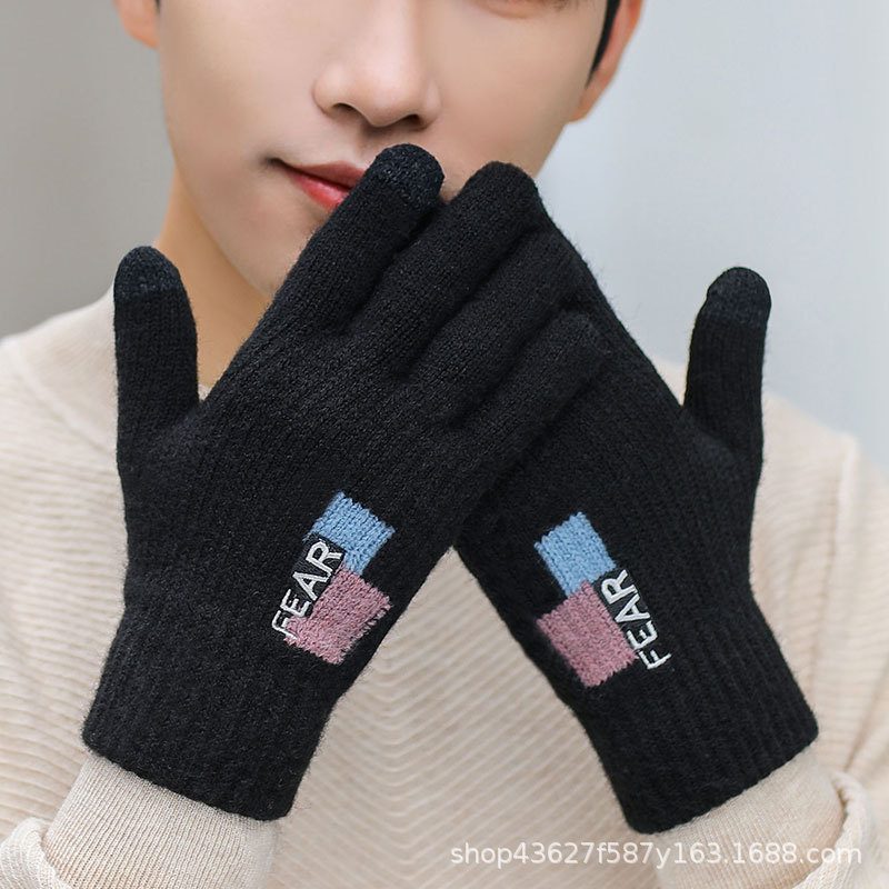 장갑 남자의 겨울 따뜻한 승마 기모 두꺼운 터치 스크린 니트 전체 손가락 학생 남자의 다섯 손가락 감기 방지 검은 장갑스토어 가기