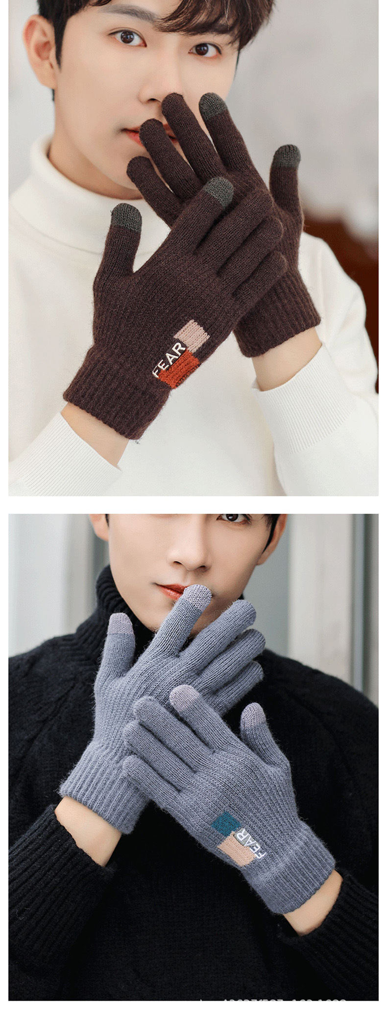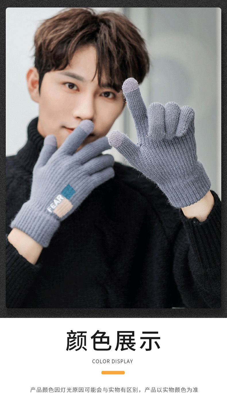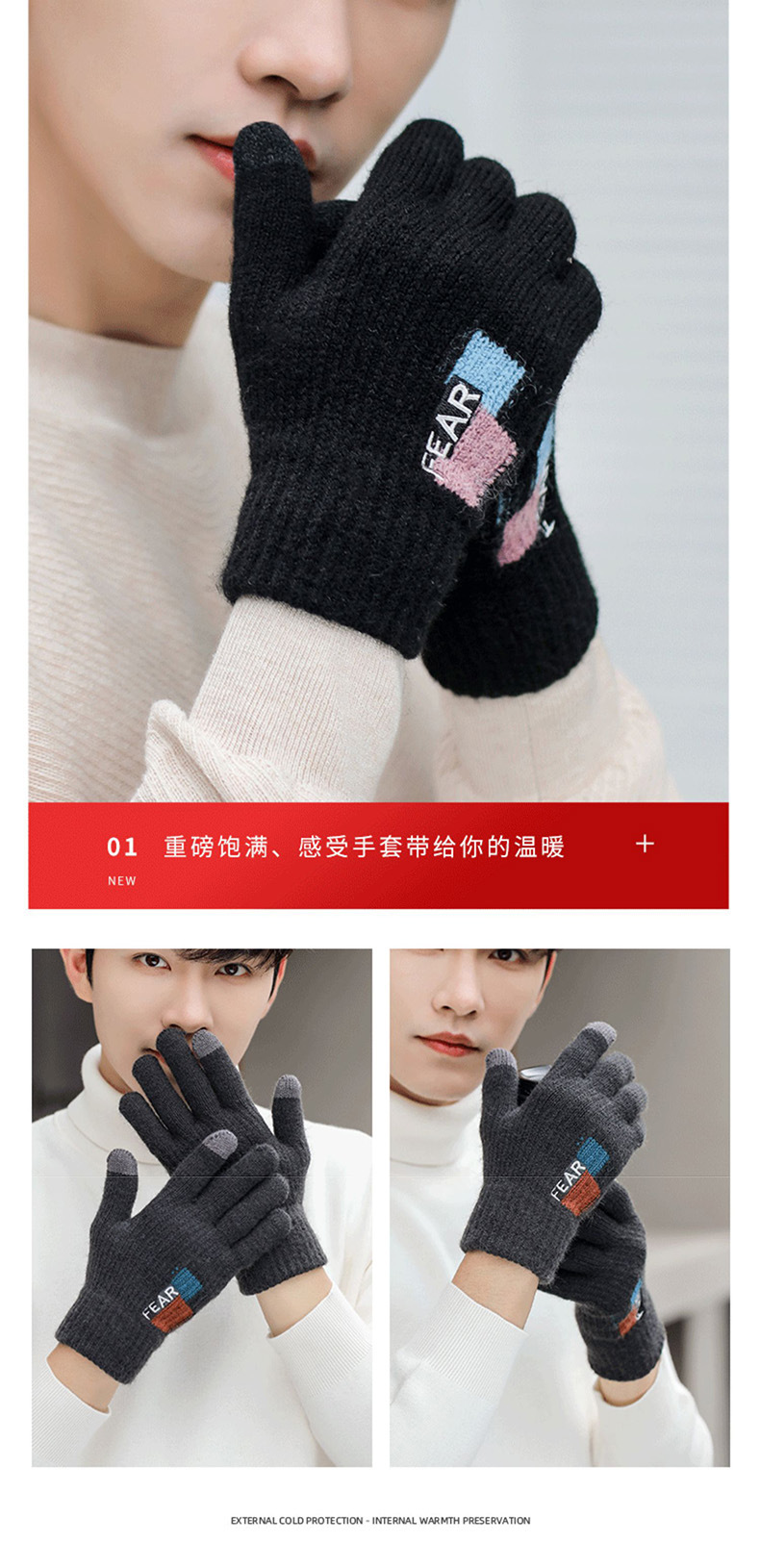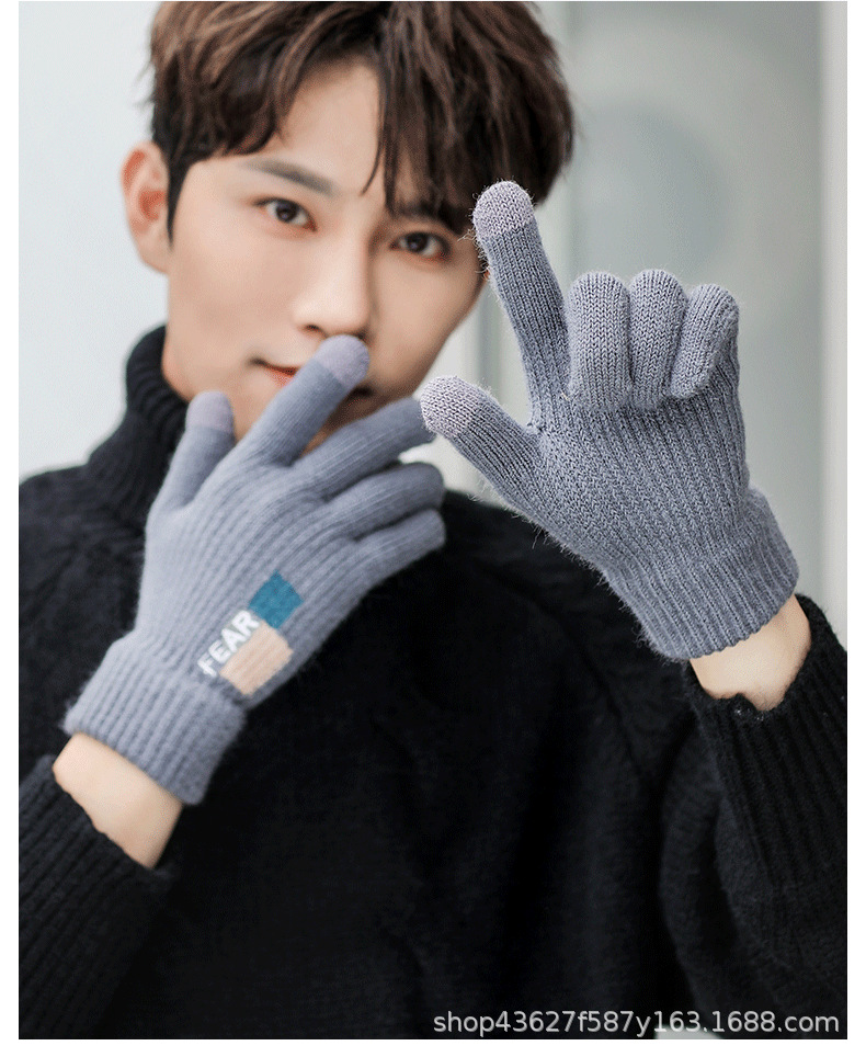 장갑 남자의 겨울 따뜻한 승마 기모 두꺼운 터치 스크린 니트 전체 손가락 학생 남자의 다섯 손가락 감기 방지 검은 장갑스토어 가기