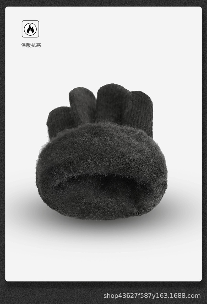 장갑 남자의 겨울 따뜻한 승마 기모 두꺼운 터치 스크린 니트 전체 손가락 학생 남자의 다섯 손가락 감기 방지 검은 장갑