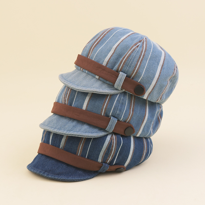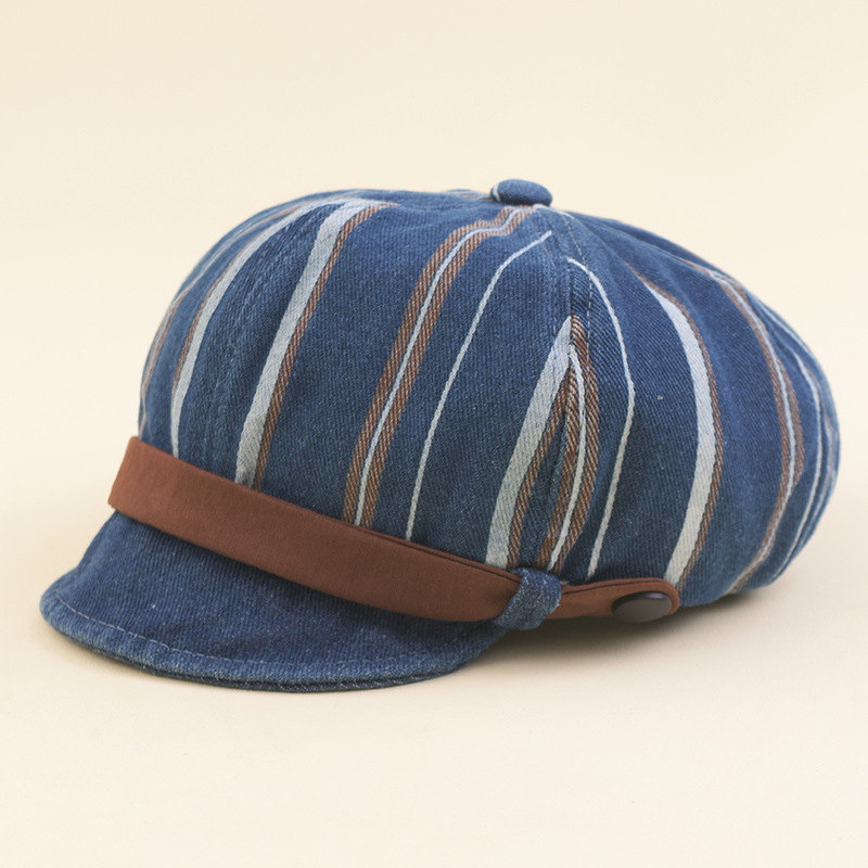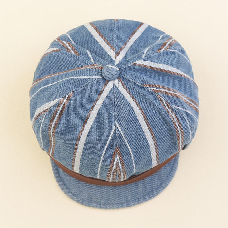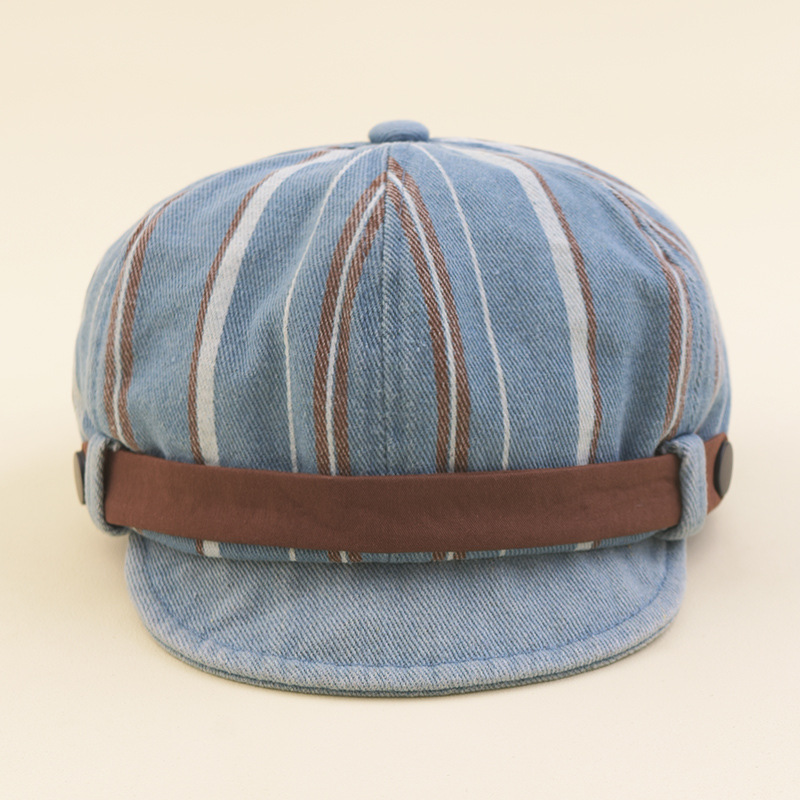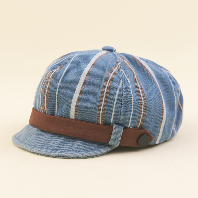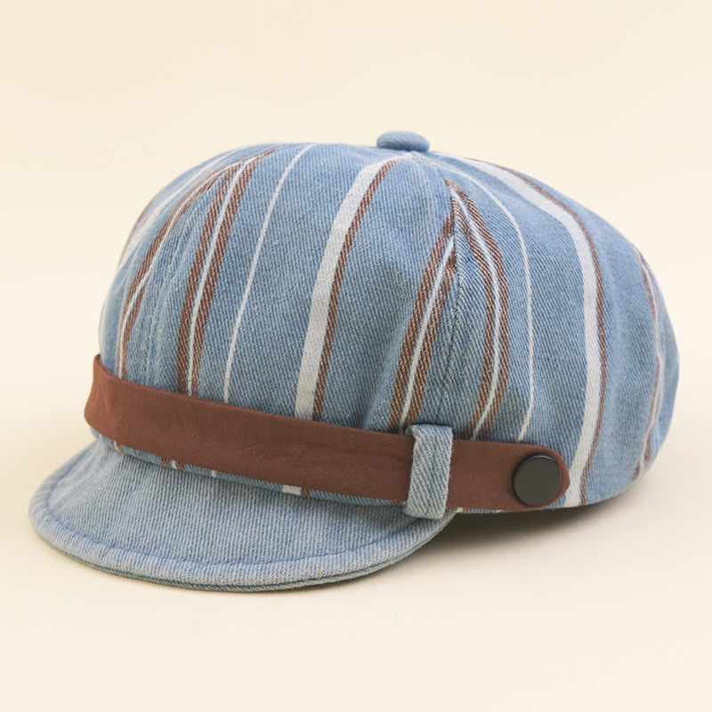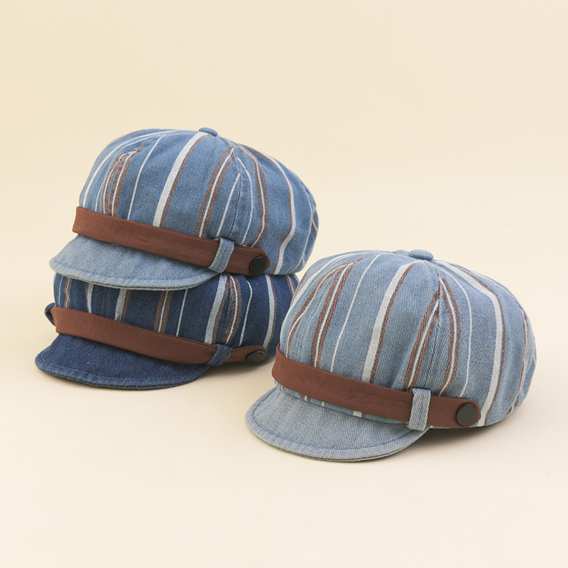 새로운 스트라이프 워시 데님 어린이 해군 모자 가을과 겨울 영국 빈티지 벨트 버클 아기 베일리 모자