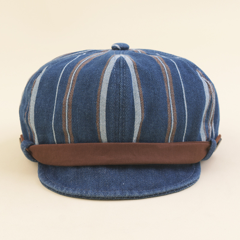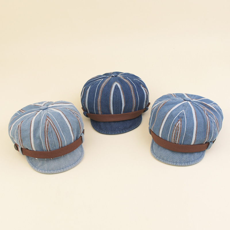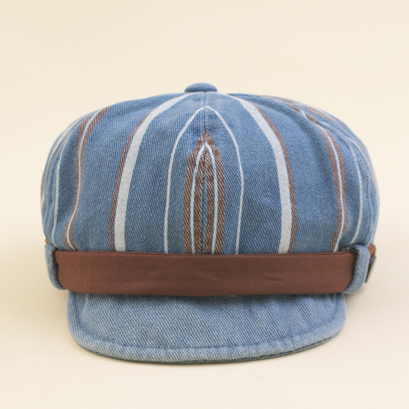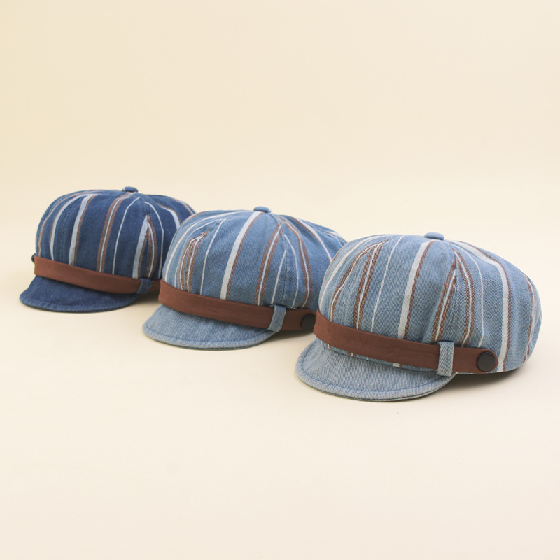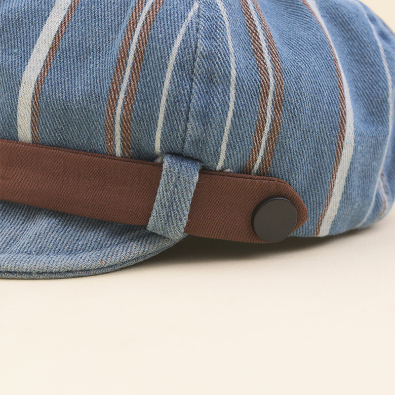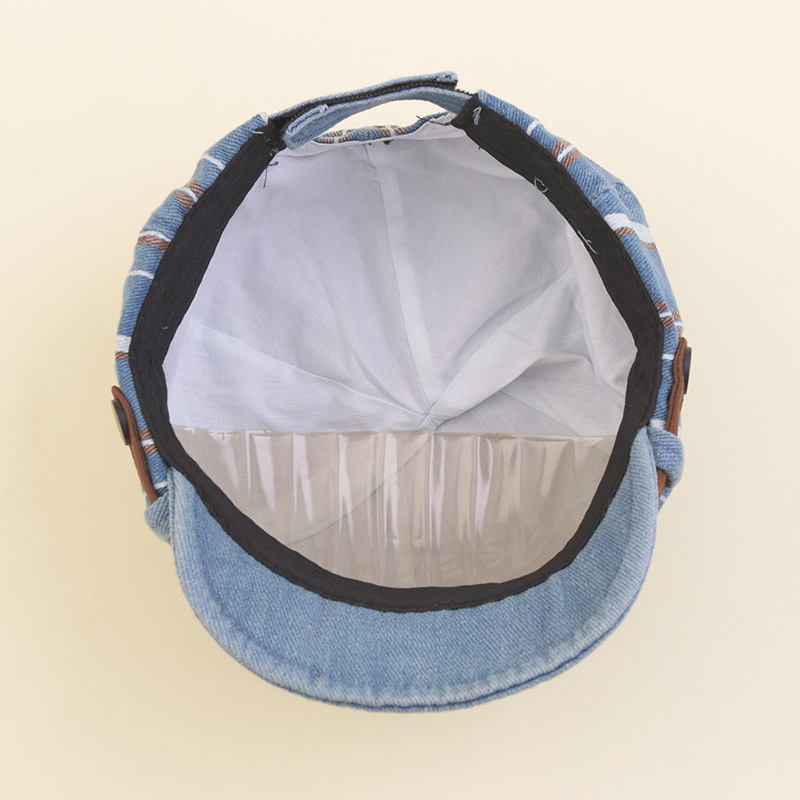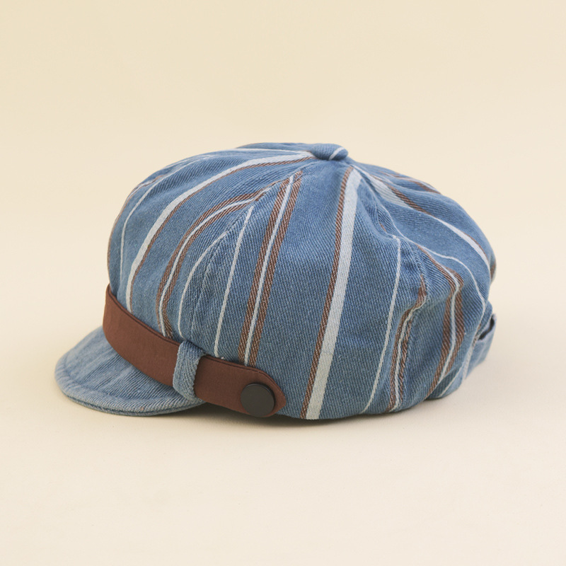새로운 스트라이프 워시 데님 어린이 해군 모자 가을과 겨울 영국 빈티지 벨트 버클 아기 베일리 모자