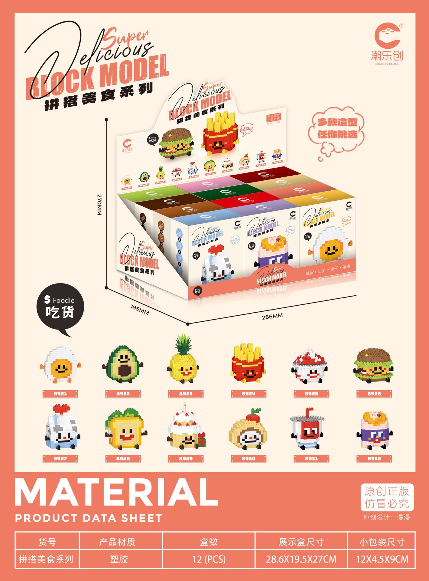 CLC 작은 입자 장난감 조립 플라스틱 빌딩 블록 8921-8932 해피 푸드 놀이 시리즈 도매