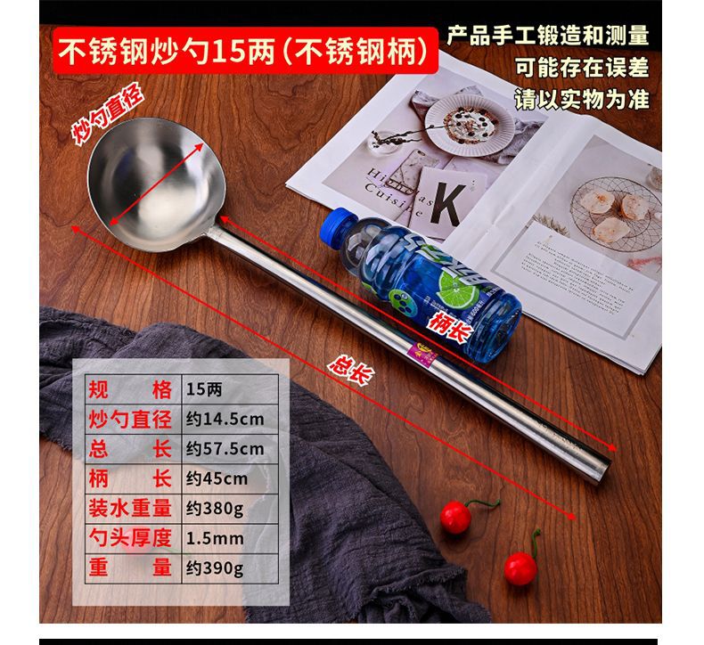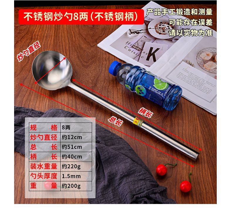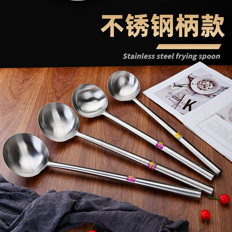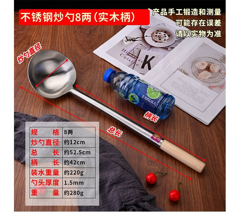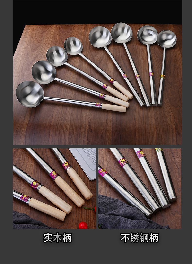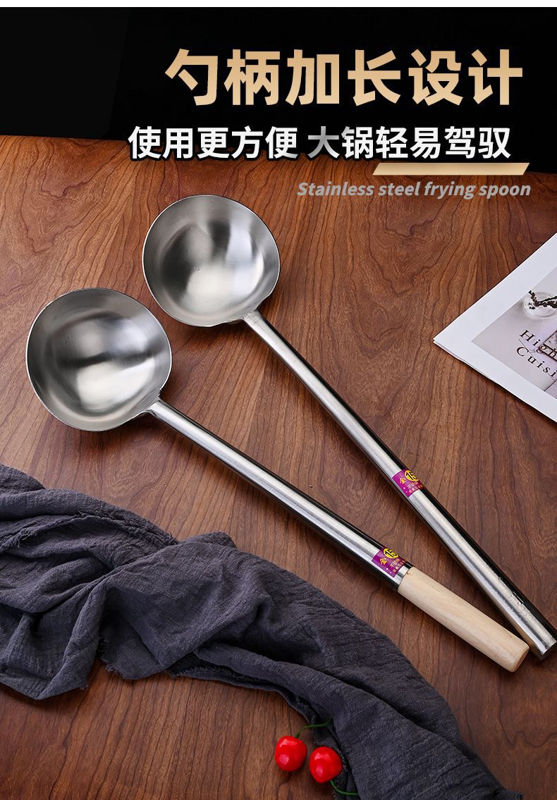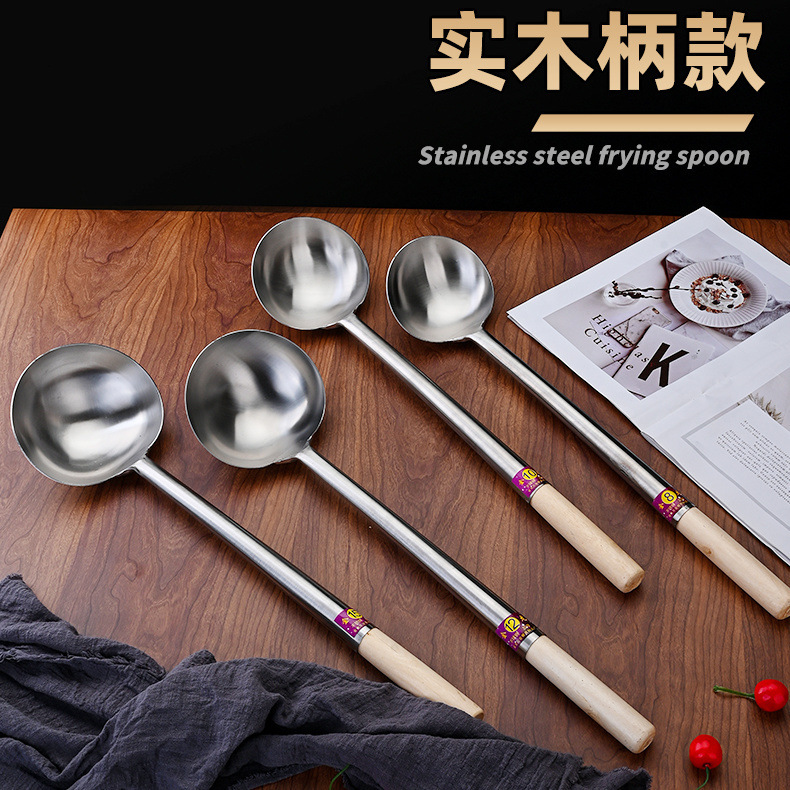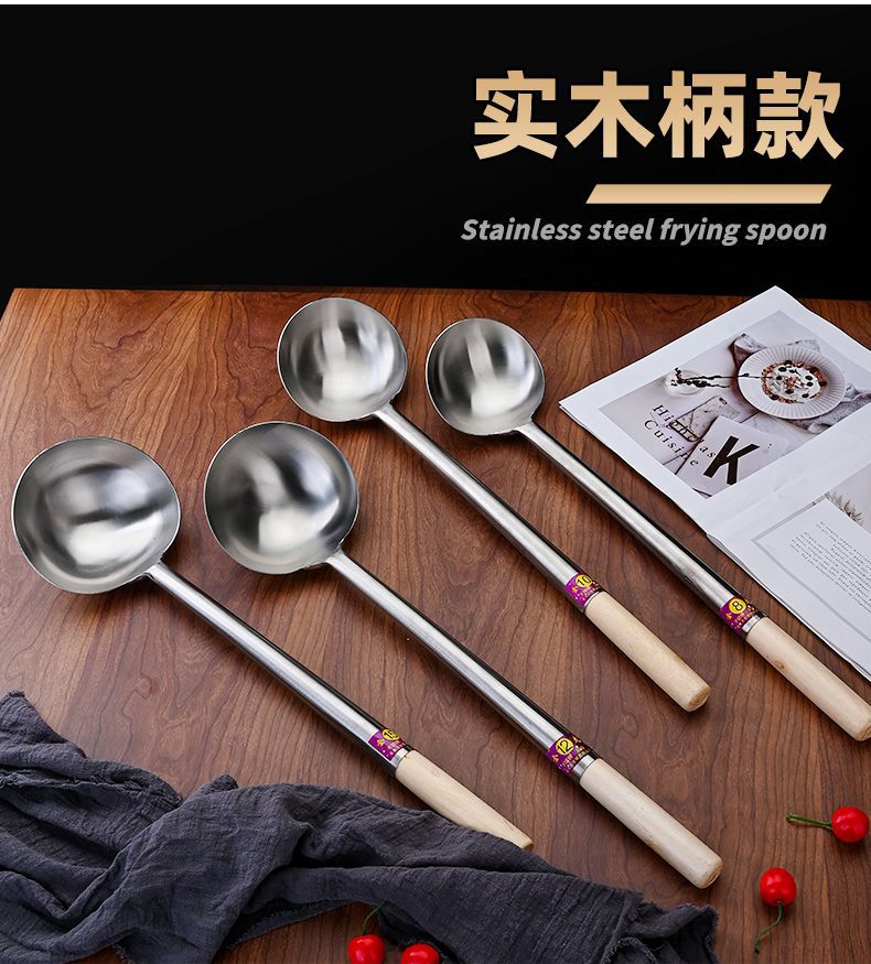 스테인레스 스틸 주걱 가정용 나무 손잡이 볶음 스푼 요리사 특수 긴 손잡이 주걱 요리 스푼 주방 도구 두꺼운 수프 스푼