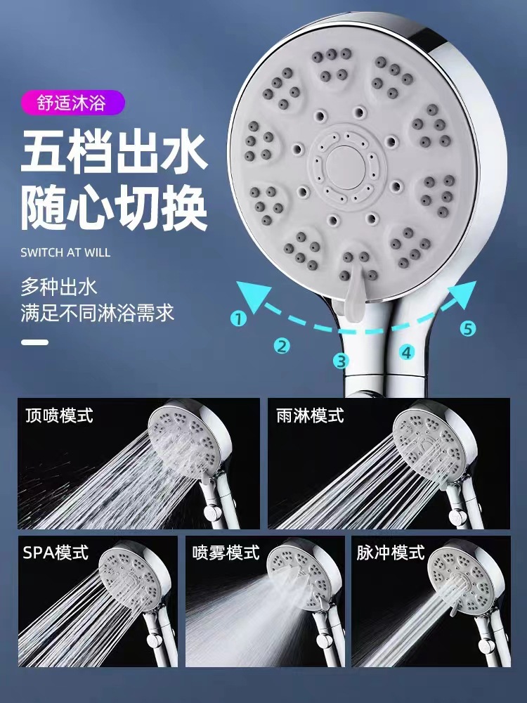 온수기 5 단 과급 샤워 노즐 다기능 욕실 비 휴대용 분무 샤워 헤드 세트