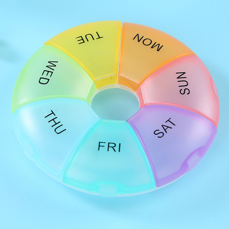 2023 새로운 아마존 휴대용 주 7 일 알약 상자 다채로운 7 그리드 알약 태블릿 서브 박스 알약 상자 분리 가능