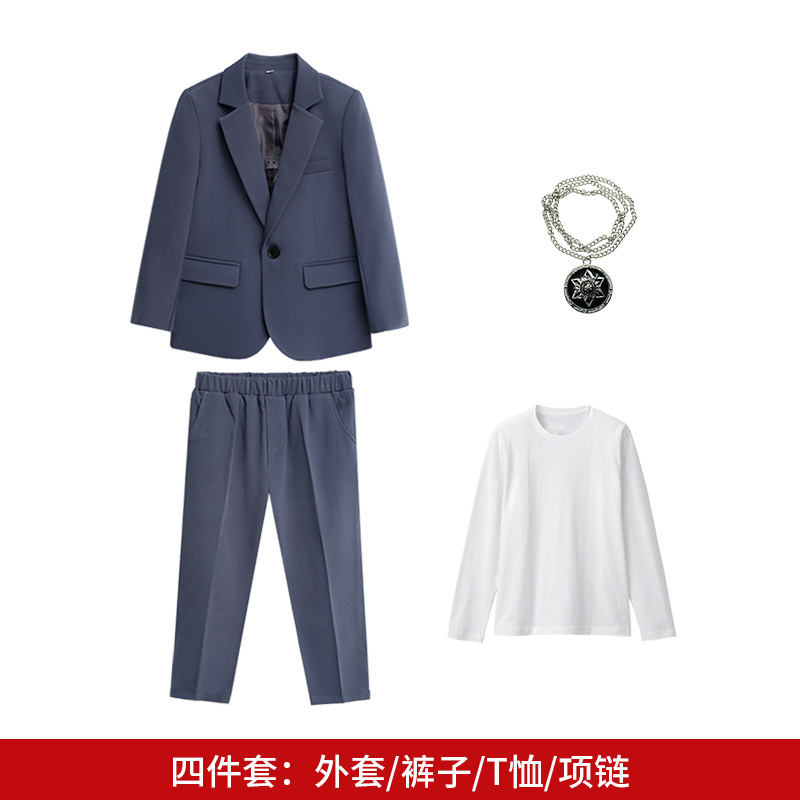• 그레이 4 피스 (코트 + 팬츠 + 화이트 T + 목걸이)