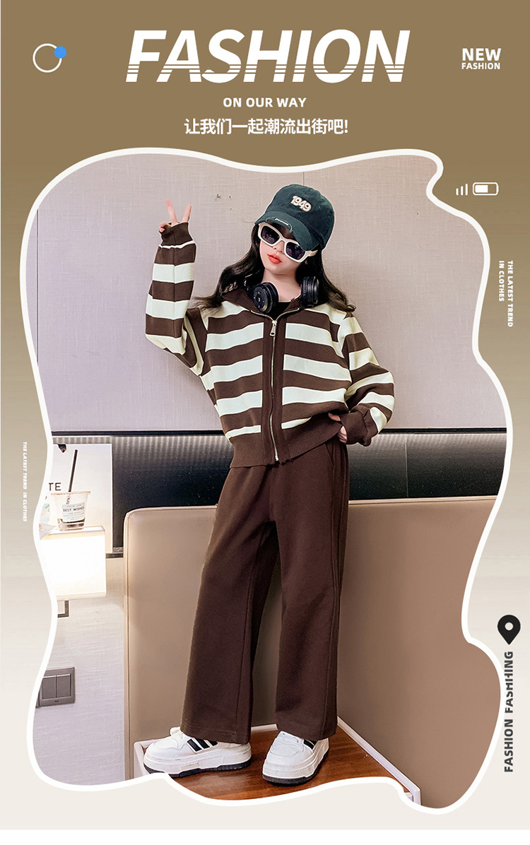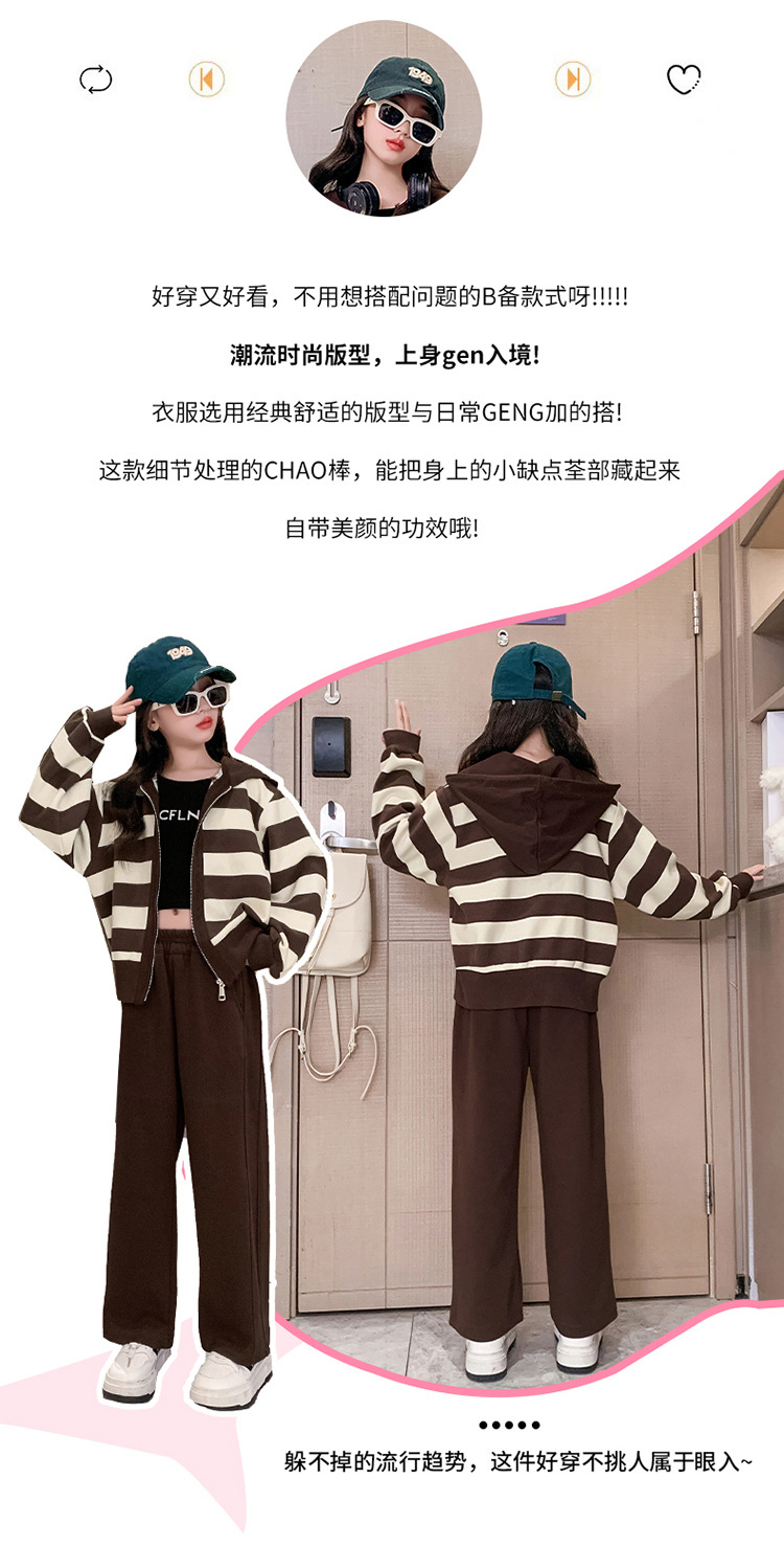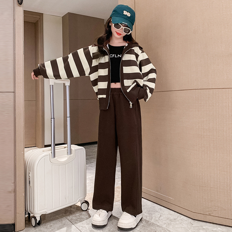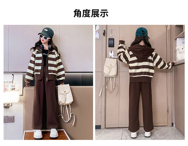 여아 세트 봄 가을 2023 신상 아동 스트라이프 후드 가디건 탑 아동 와이드 레그 팬츠 투피스 세트스토어 가기