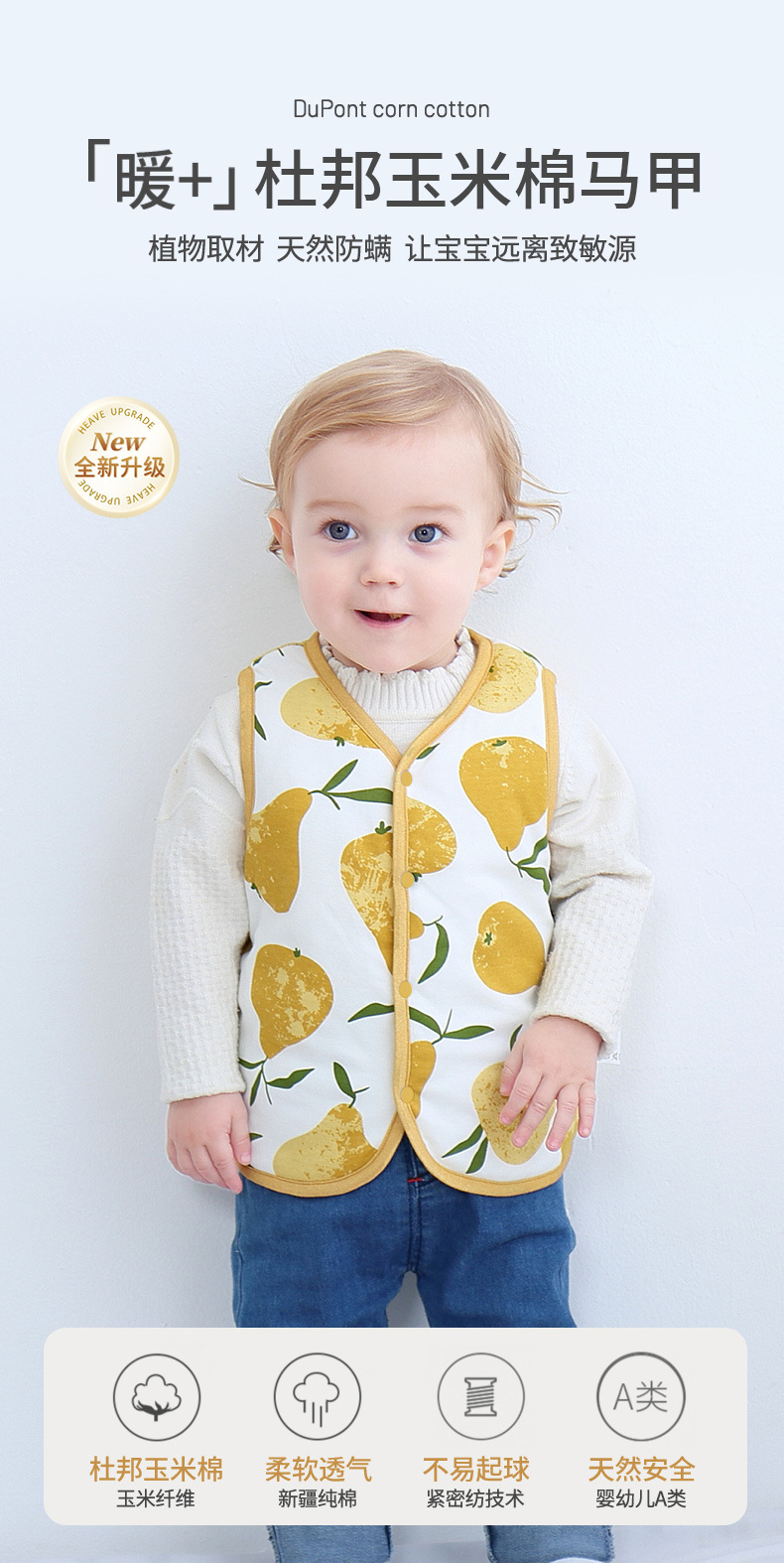 아기 듀퐁 옥수수 면 조끼 봄과 가을 조끼 겉옷 소년의 신생아 조끼 아기 면 닦아