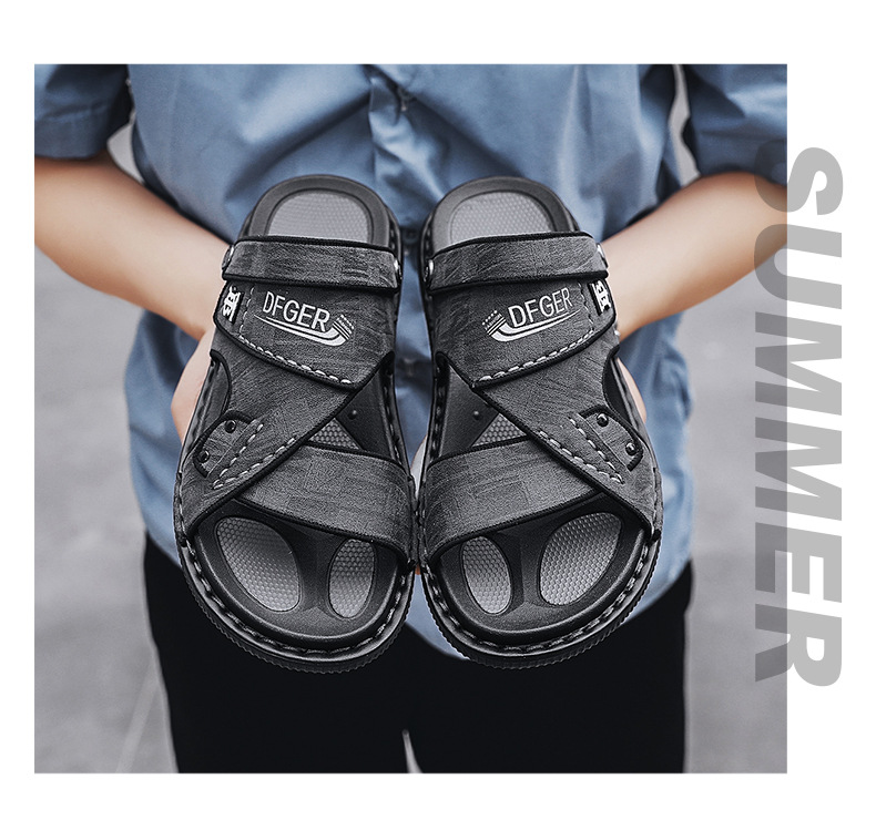 남성 샌들 여름 2023 새로운 캐주얼 신발 패션 야외 샌들과 슬리퍼 트렌디 한 다리 이중 사용 슬리퍼 원피스스토어 가기