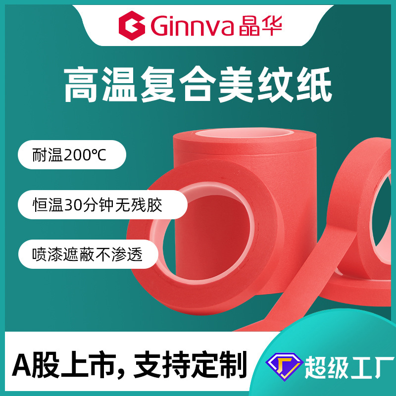 Jinghua PET 고온 내성 마스킹 페이퍼 200 레드 테이프 베이킹 바니시 주석 오븐 고점도 쉬운 눈물 복합 테이프스토어 가기