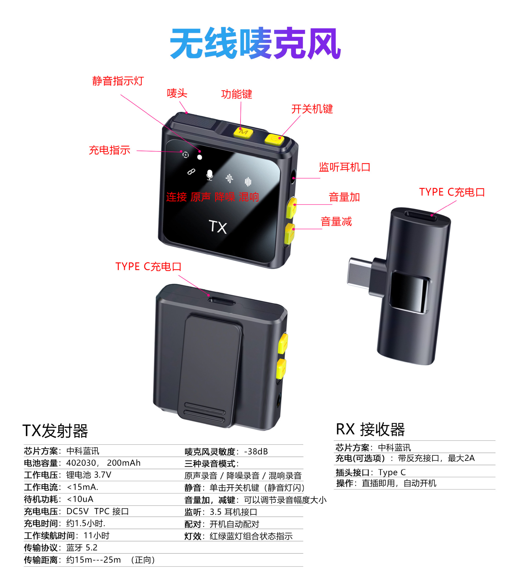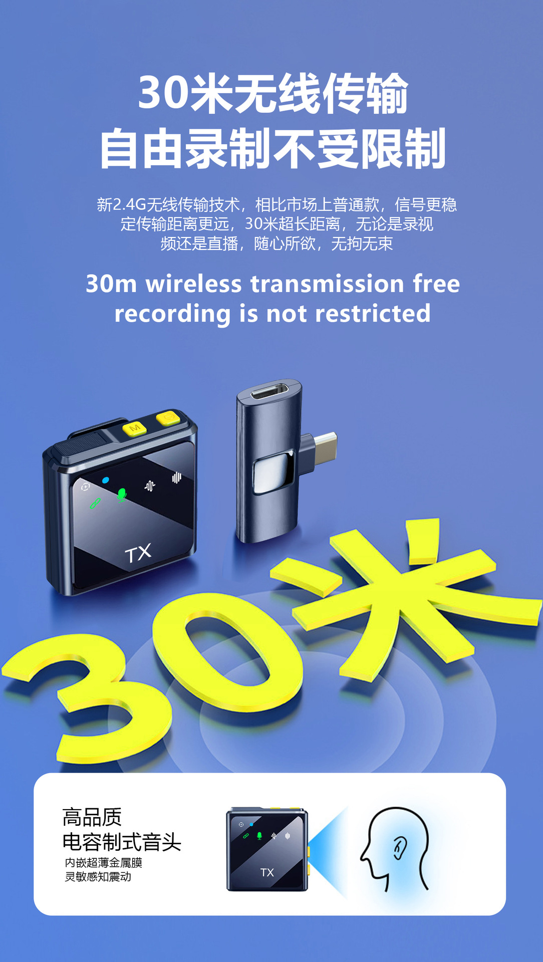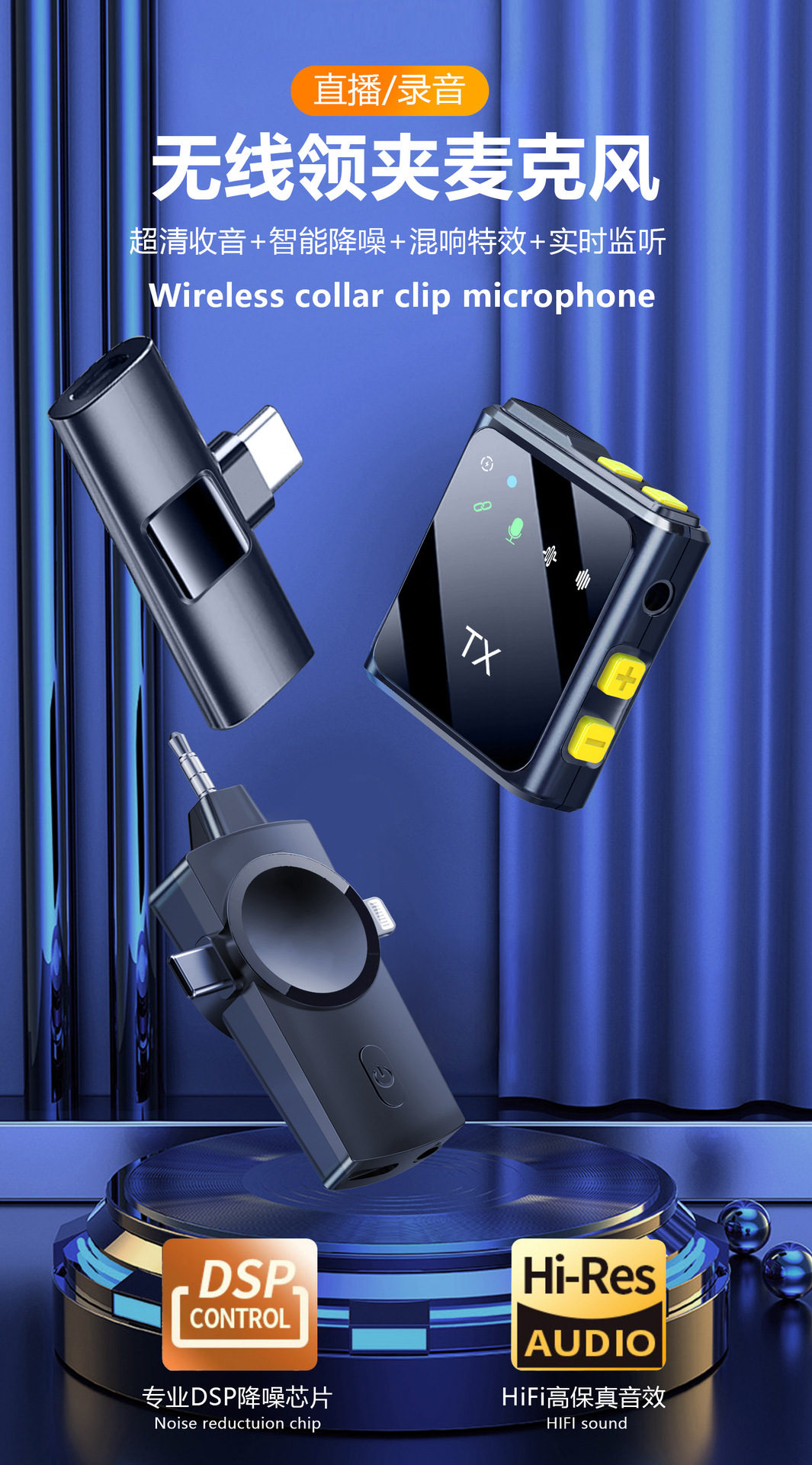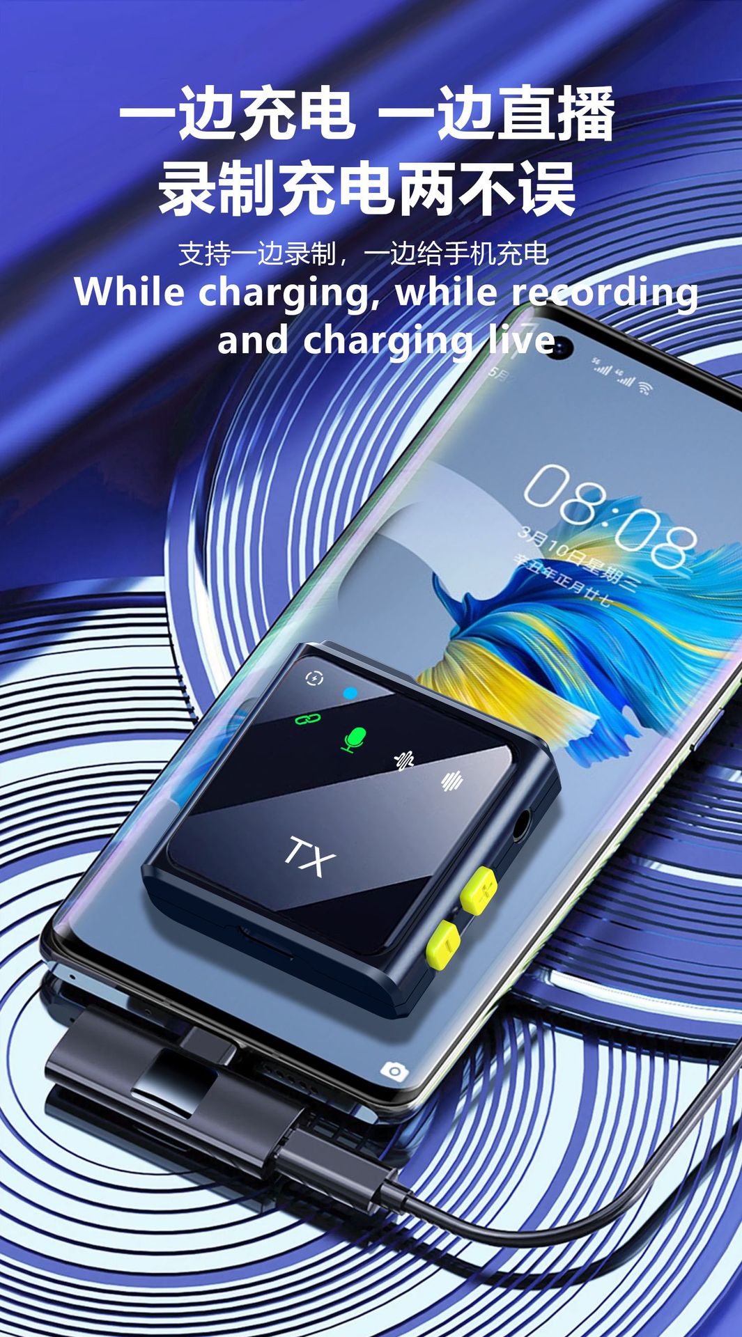 R8 전용 1대2 무선 라발리에 마이크 노이즈 감소 기능 탑재 애플 타입C 휴대폰 라이브 방송용 마이크 F9