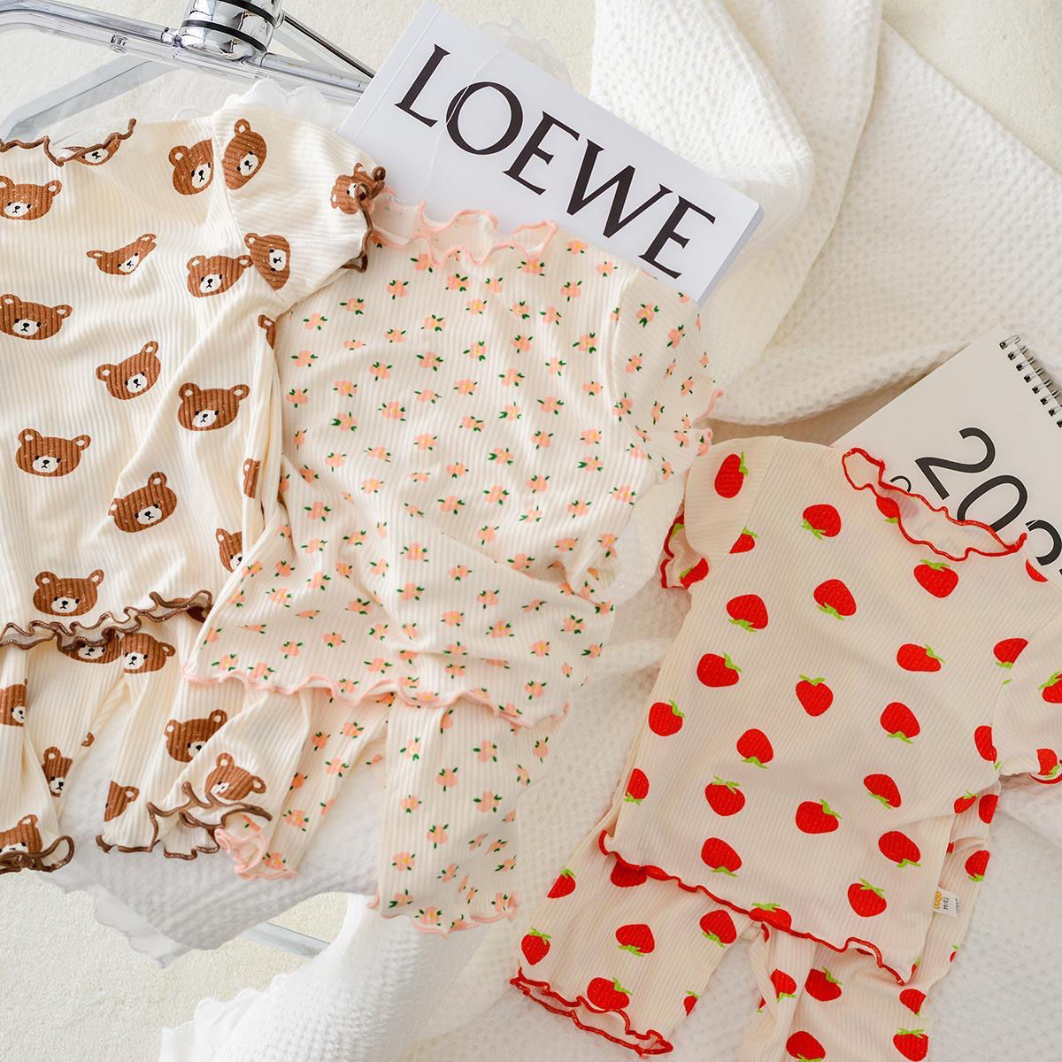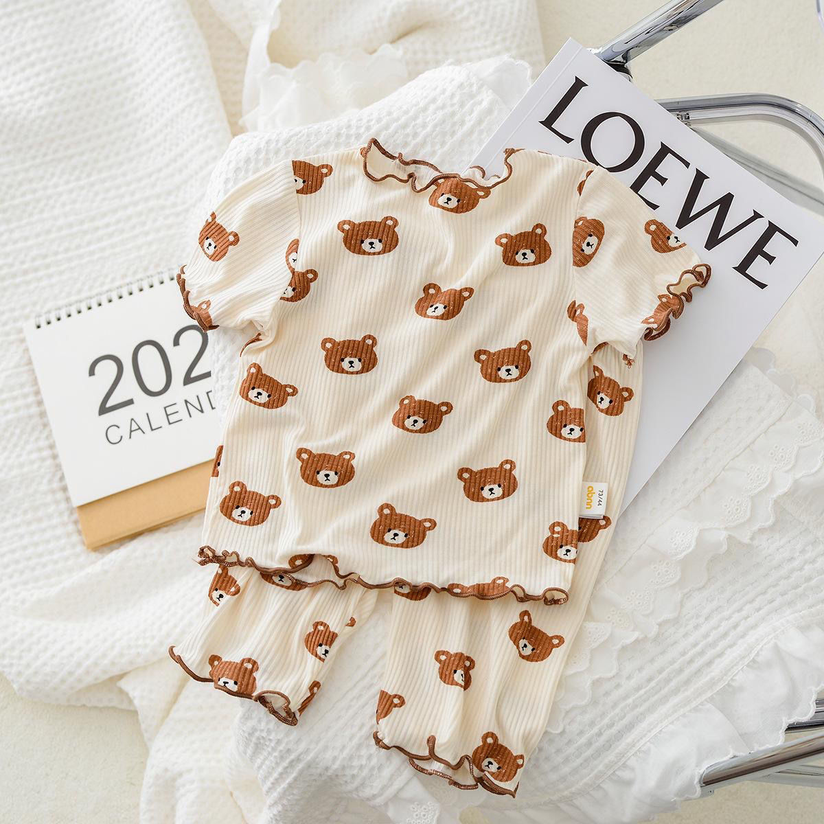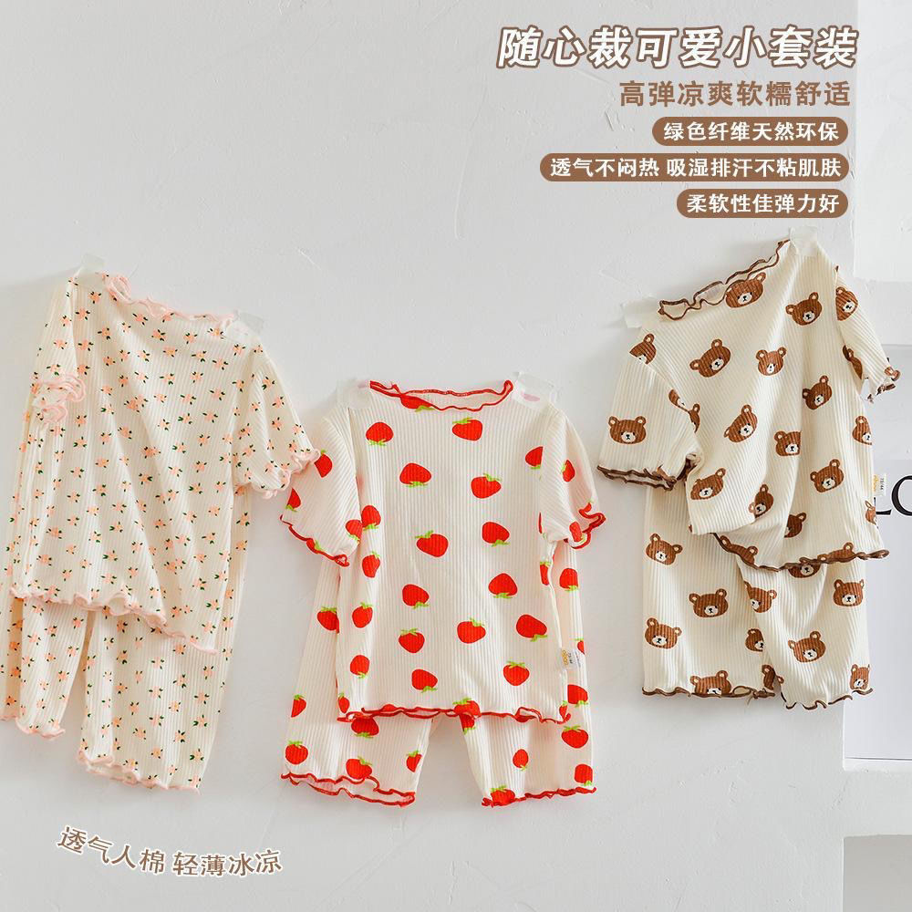 아이스 실크 여름 새로운 아동복 여아 가정복 캐주얼 통기성 남아 에어컨 의류 투피스 세트 아동 세트스토어 가기