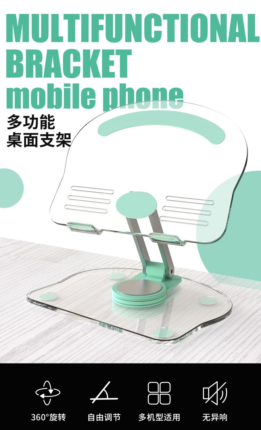 데스크탑용 투명 아크릴 태블릿 거치대, 회전 및 접이식, 게임 및 드라마 감상용 태블릿 컴퓨터 지지대