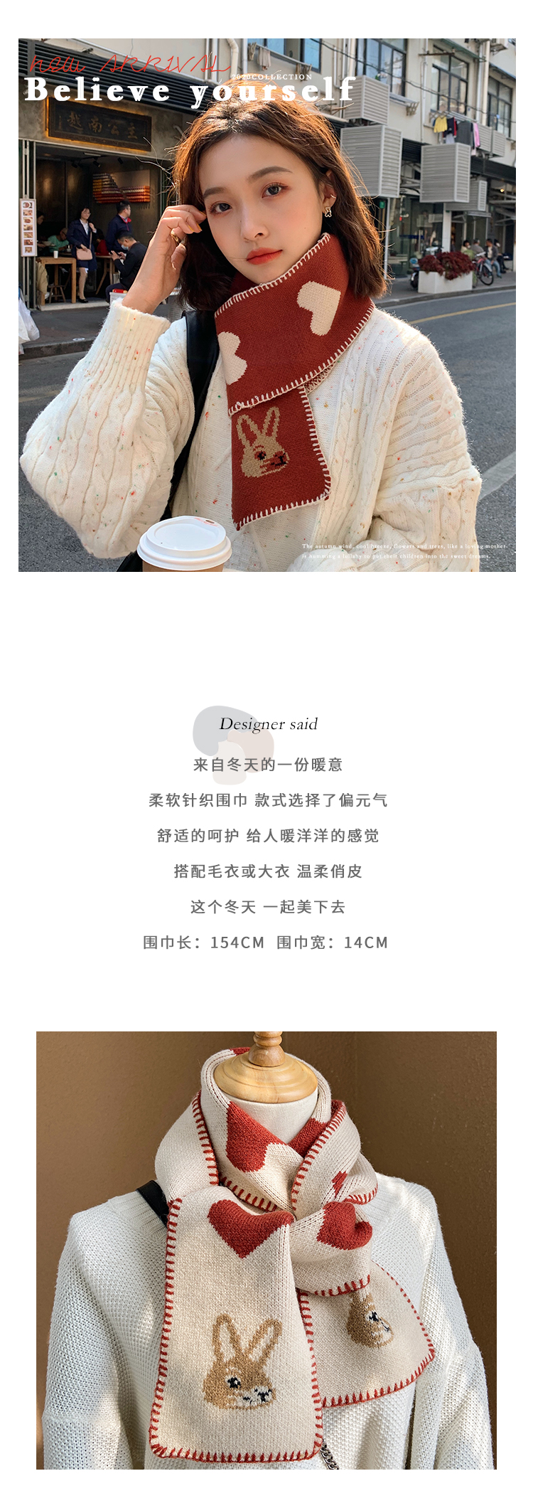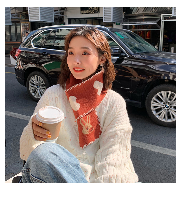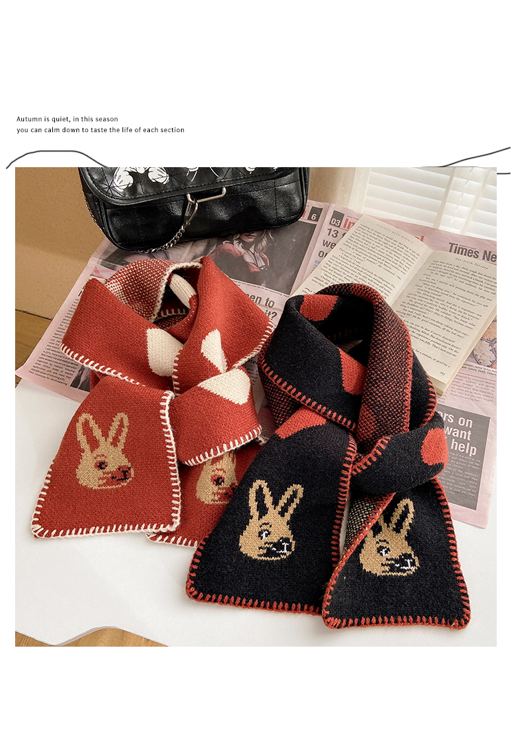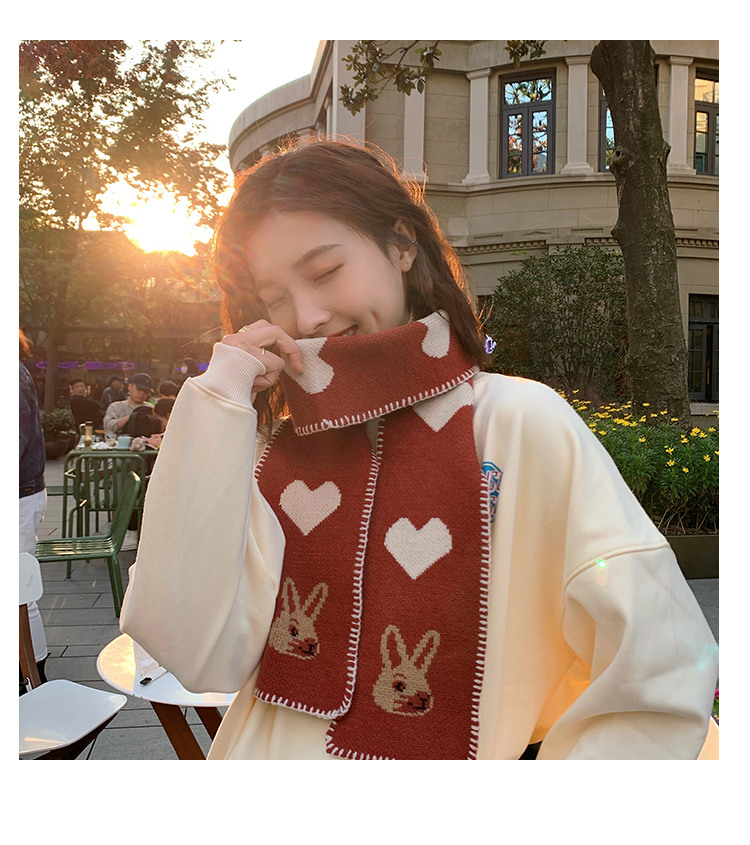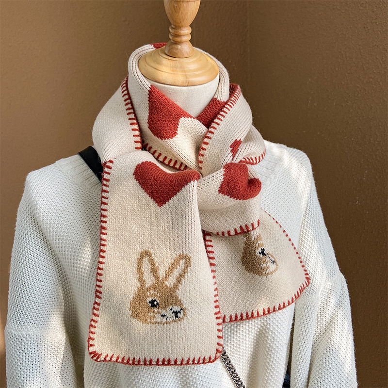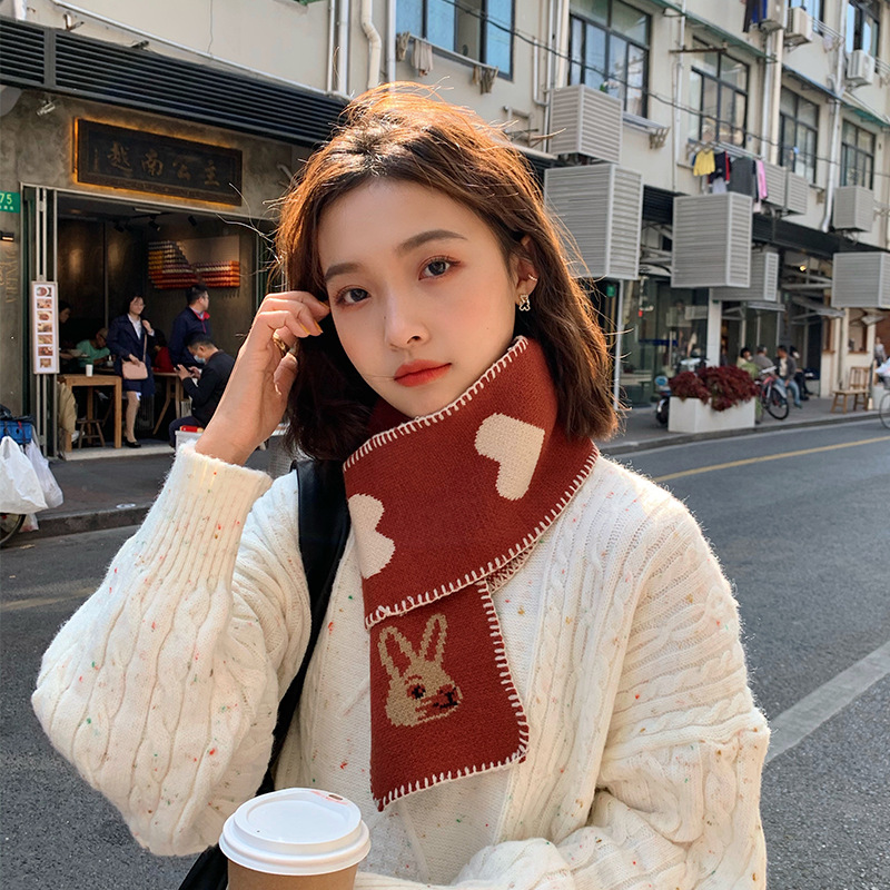니트 울 스카프 여성의 가을과 겨울 한국 스타일 트렌디 모든 일본식 소녀의 마음 귀여운 빨간 토끼 따뜻한 스카프